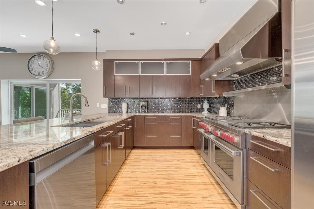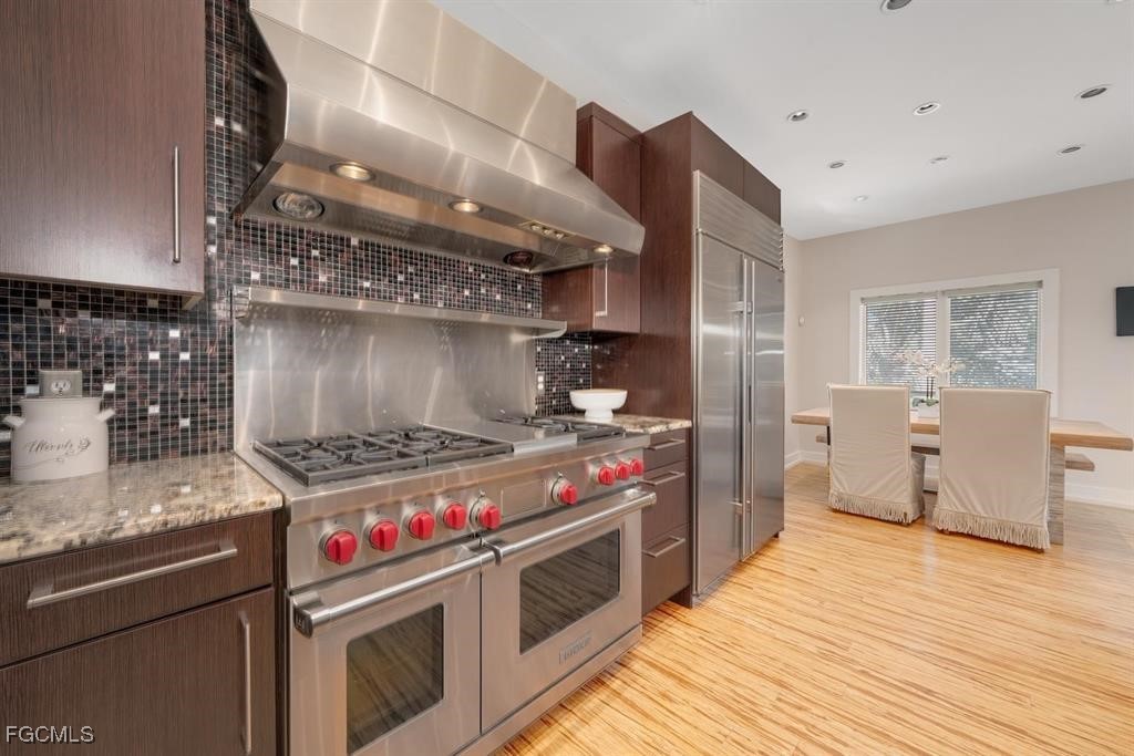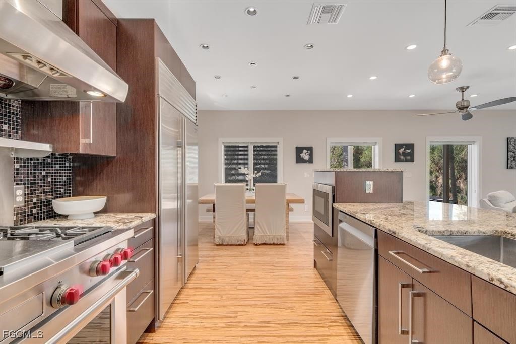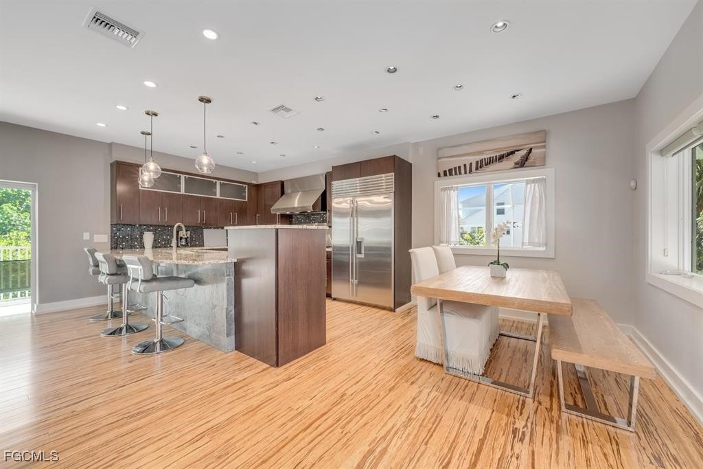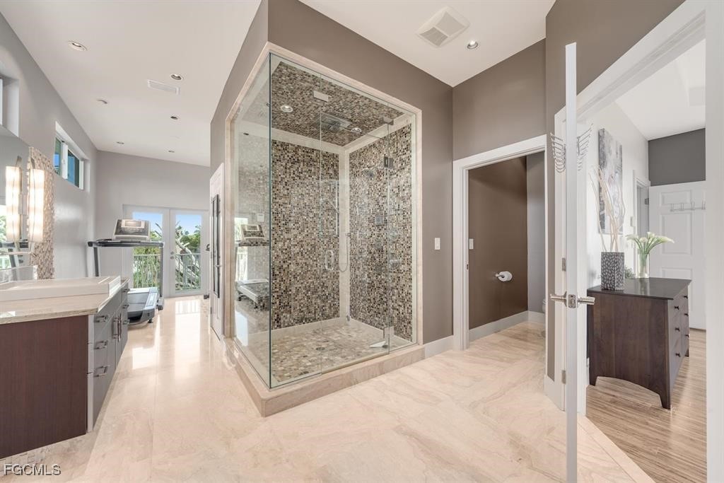 Stunning waterfront property offering the perfect blend of Old Florida charm and luxurious modern living. This home is situated along a navigable canal, providing direct access to the Gulf of Mexico, making it a true haven for boating enthusiasts. The home’s design complements its natural surroundings, with expansive windows and an open floor plan. The crow’s nest offers one of the most awe-inspiring features of the property: breathtaking panoramic water views of the Gulf of Mexico. The primary suite is a true retreat, offering the ultimate in comfort and luxury. The hotel-inspired en suite bathroom features a rain shower, dual vanities, and a separate make up area, all finished with high-end materials. The spacious walk-in closet is custom-designed for maximum organization, while the adjoining private gym area makes it easy to maintain a healthy lifestyle from the comfort of your own home. The gourmet chef’s kitchen is equipped with premier appliances, featuring a Wolf gas range with double ovens and a built-in stainless steel refrigerator. With three spacious bedrooms all with luxurious en suite bathrooms, this home offers plenty of room to accommodate family and guests.