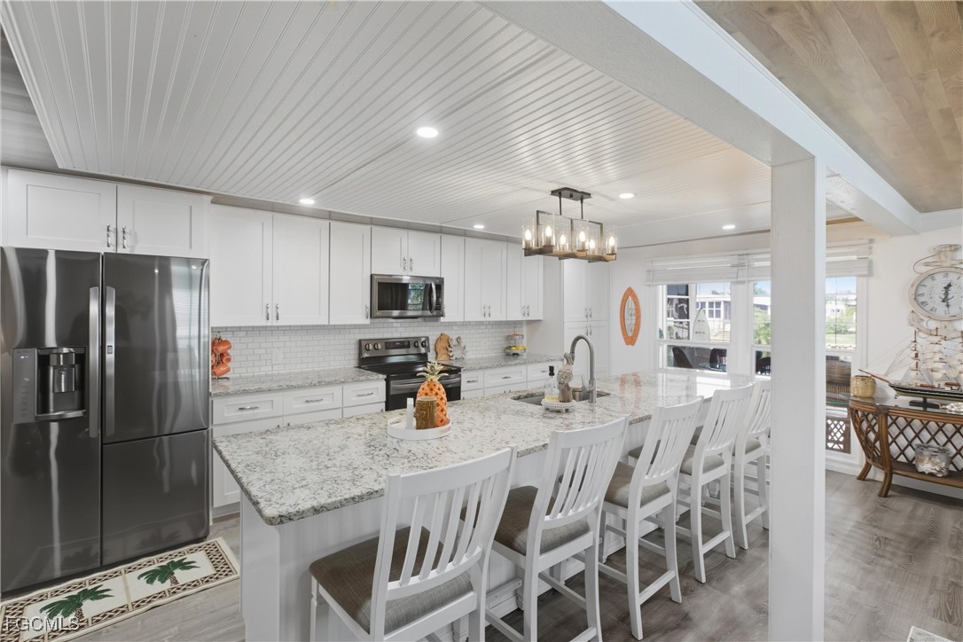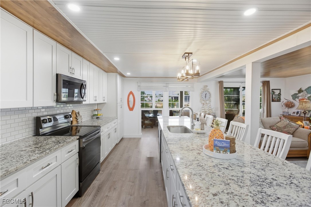 Affordable Coastal Living at it's Finest! Welcome to 5517 Sir Walter Way located in Old Bridge Village. Prepare to be captivated by breathtaking views from your two beautiful lanais. This remarkable home is perfectly situated on a wide canal, providing the ultimate waterfront living experience. The home has had a renovation, featuring new windows, insulated walls, 3/4 plywood, and luxury vinyl floors. The kitchen is the cook's dream for entertaining and conversations as it showcases a huge island with new countertops and appliances. A spacious master bedroom and bath, complete with dual sinks, ensure you have all the space you desire. This fantastic home includes a trek dock for your boat giving you easy access to the Gulf of Mexico. Enjoy resort-style 55 + gated community nestled along Caloosahatchee River. Embrace the vibrant lifestyle of fitness center, tennis, Pickleball, and shuffleboard just to name a few. Brand new pool and hot tub to unwind and relax. The 81-slip marina, complete with boat and kayak launch. Don't miss this chance to experience the beauty of waterfront living in a vibrant community. See yourself and embrace the ultimate waterfront dream! This home would make a great vacation rental for your income-producing property.