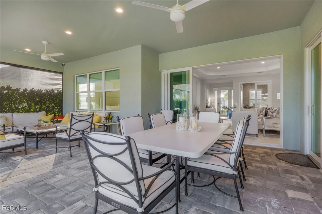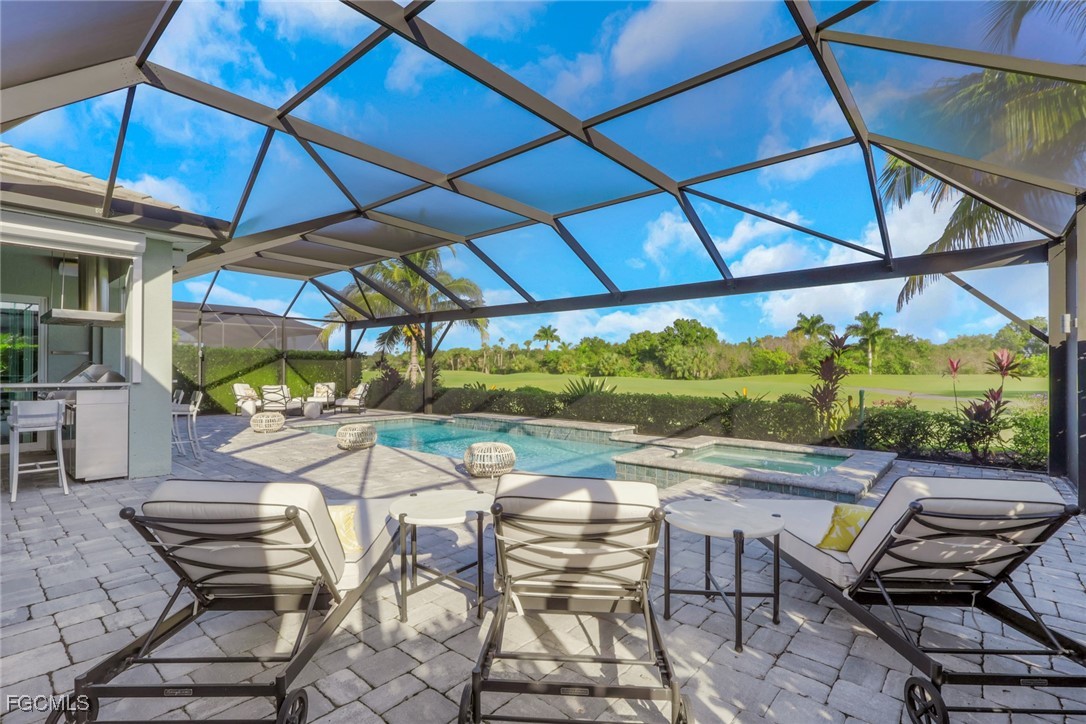 Experience the perfect blend of elegance and relaxation in this beautifully designed home in the sought-after Verandah community. With an open-concept layout, elegant finishes and versatile spaces including a private office and spacious bonus room, this home offers comfort and flexibility for any lifestyle. The kitchen countertops are a stunning Italian Quartzite. All fans, lighting and window treatments are custom. The large bonus room along the lanai (currently being used as a family room) could easily be converted to an additional bedroom. Enjoy the luxury of outdoor living with a fully custom stainless steel outdoor kitchen, featuring a built-in 42" Hestan Grill, refrigerated drawers, and separate champagne and beer refrigerators. All sections of refrigeration have their own thermostat and remote refrigeration. The Quartzite counter and bartops have plenty of seating while congregating with friends and watching the golfers on the 7th hole of Old Orange golf course. Additional upgrades include a whole-house generator (2023), remote hurricane shutters (2024), noseeum lanai screen with picture window, saltwater pool with upgraded lighting, Sonos sound system, air conditioned garage with fully insulated garage doors and upgraded electrical plugs with dedicated circuits in garage, INCLUDING a 220V plug for a hybrid vehicle. PLEASE CHECK OUR MATTERPORT LINK WHERE YOU CAN MEASURE AND ENJOY A DOLLHOUSE TYPE VIEW Verandah has two Championship golf courses, lighted tennis and pickleball courts, and over 9 miles of walking/biking trails. In addition, there are two restaurants with no minimums and many social activities for residents. At Verandah you have the choice of a social or golf membership. If you prefer golf this home has a current membership which would allow you to skip the waitlist and immediately begin enjoying the Verandah Golf Lifestyle. Initiation fees and monthly dues are extra.
