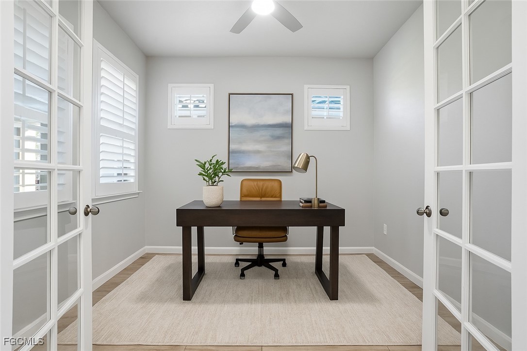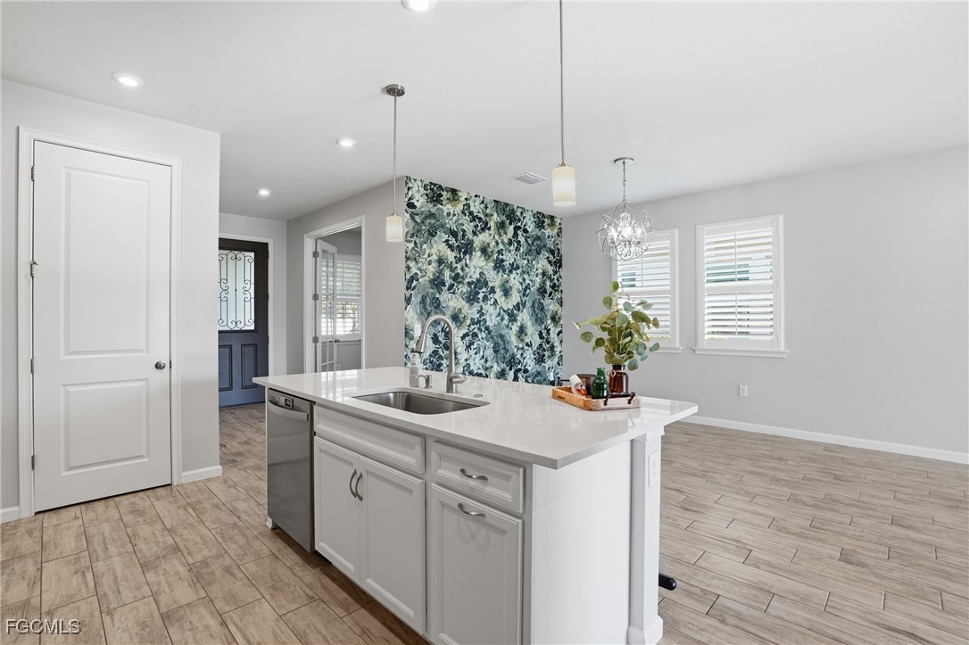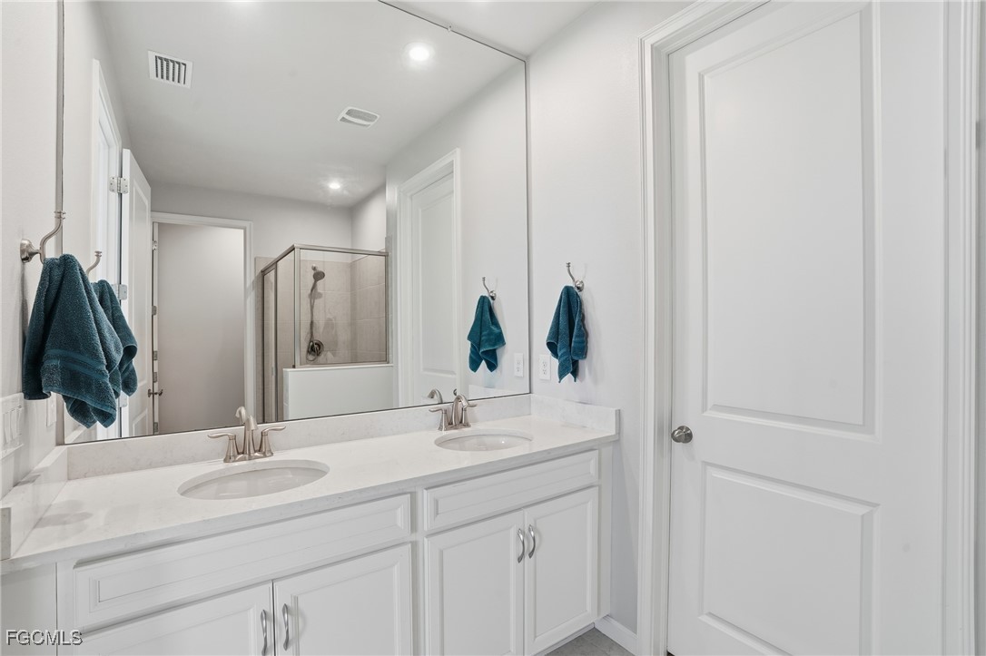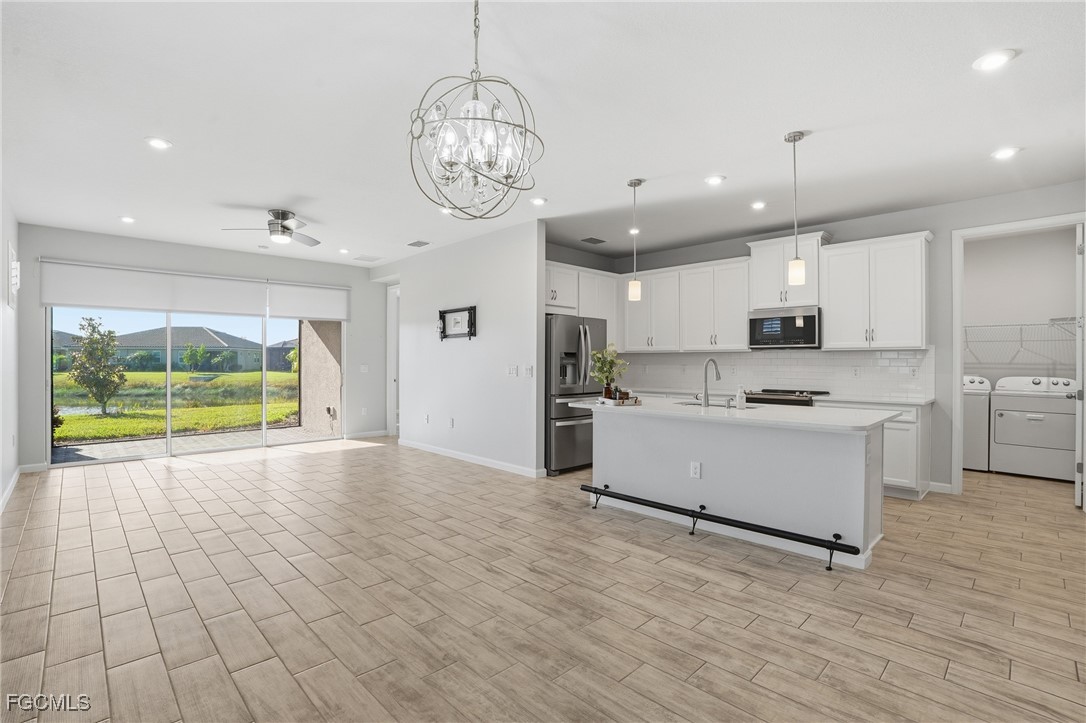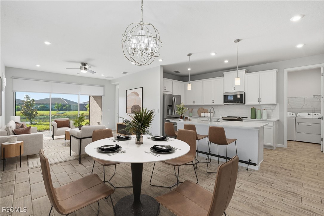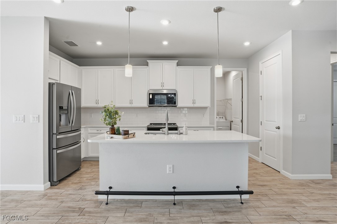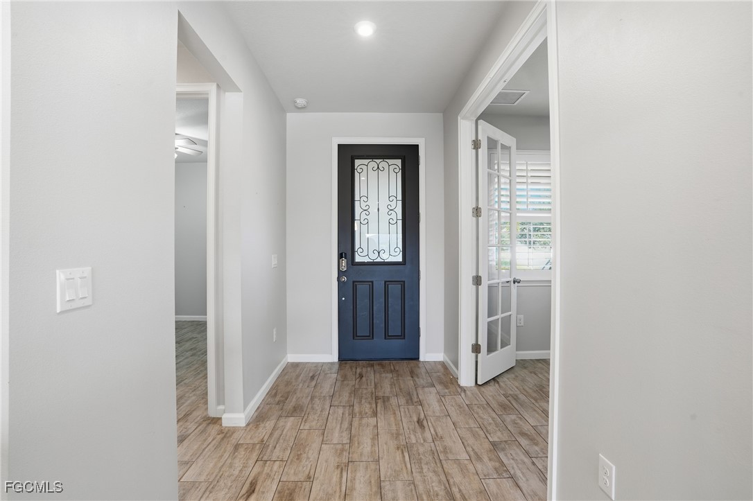 Welcome to this beautifully maintained 2-bedroom plus den, 2-bathroom villa! Located in the sought-after gated community of Bonavie Cove, right in the heart of Fort Myers. Start your mornings on the lanai overlooking peaceful water views, where the gentle sounds of nature and breathtaking sunrises set the tone for your day. Inside, the open-concept design creates a bright, inviting atmosphere, with plantation shutters and elegant tile flooring throughout. The spacious living and dining areas flow effortlessly into a STUNNING kitchen, complete with a large island and breakfast bar, sleek stainless steel appliances, and abundant cabinetry. A CUSTOM-BUILT pantry with a built-in spice rack adds to the functionality of the space. The primary suite is a true retreat with an expansive walk in closet. While the spa-like ensuite features dual vanities and a gorgeous walk-in shower. The guest bedroom and second bath ensure visitors have plenty of space, while the den provides the perfect spot for a home office, creative studio, or third bedroom. Thoughtful extras include a dedicated laundry room, three mounted TV brackets, a Ring doorbell, and much more! The oversized 2-car garage is equipped with polished epoxy flooring, a ceiling-mounted storage system accommodating up to 24 totes, and a workbench area complete with lockable cabinets and pegboard, ideal for any project or hobby enthusiast! Bonavie Cove delivers resort-style living with low HOA fees and *no flood insurance or CDD required*. Amenities include lawn maintenance, gated entry, a heated Jr. Olympic pool, fitness center, gas fire-pit, Paw Park, and a covered cabana. Everything you need to enjoy a high-end lifestyle right at home! Perfectly situated near top-rated schools, tons of shopping centers, exceptional dining, pristine beaches, and only 2 miles away from Lee Memorial Hospital! This villa checks all of the boxes! The only thing missing is YOU!