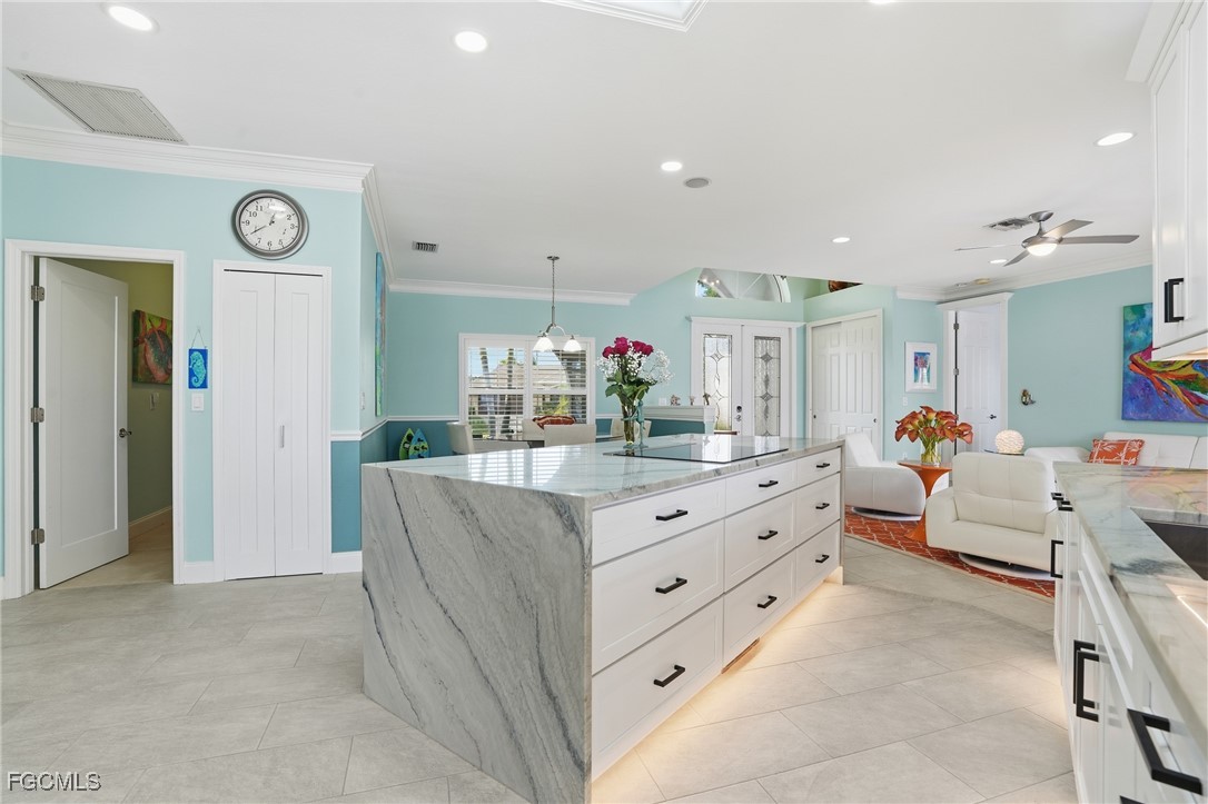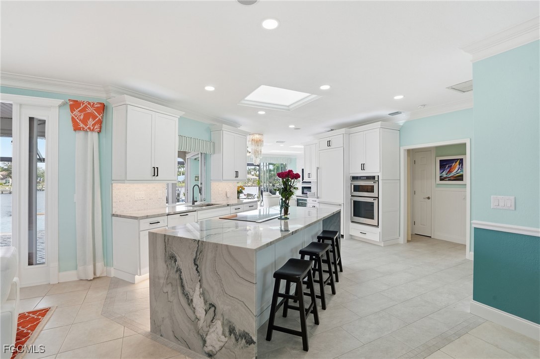 Welcome to "The Salty Sunrise" where every day begins in color and ends in serenity. One View, will make you fall in love! This stunning 3BR, 3BA waterfront retreat blends tropical design, energy efficiency & modern elegance. Inside features custom cabinetry, waterfall-edge granite, crown-lit skylights, plantation shutters, and Bosch/Cove appliances. Enjoy panoramic water views from nearly every room!