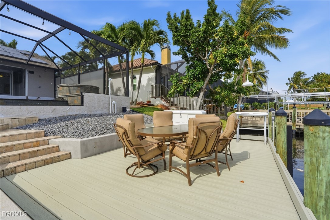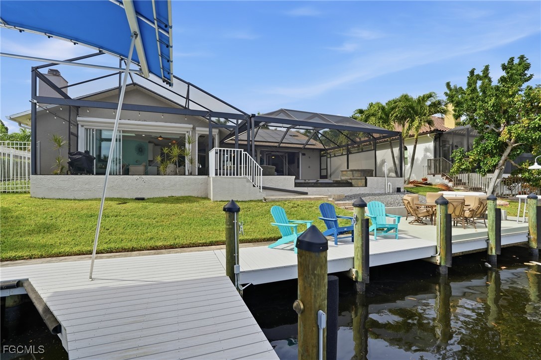 Step outside to your private paradise with sparkling infinity-edge salt pool & spa, newer panoramic-screened lanai & smart iAqualink controls. Boaters will love the custom dock & boathouse (2023) with 14K-lb lift, power, water & LED lighting.