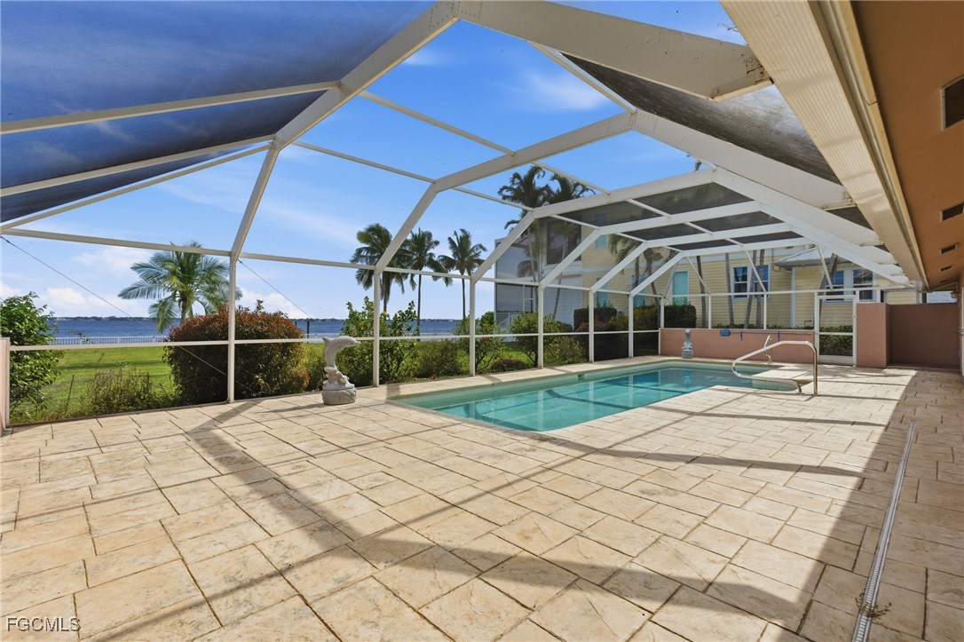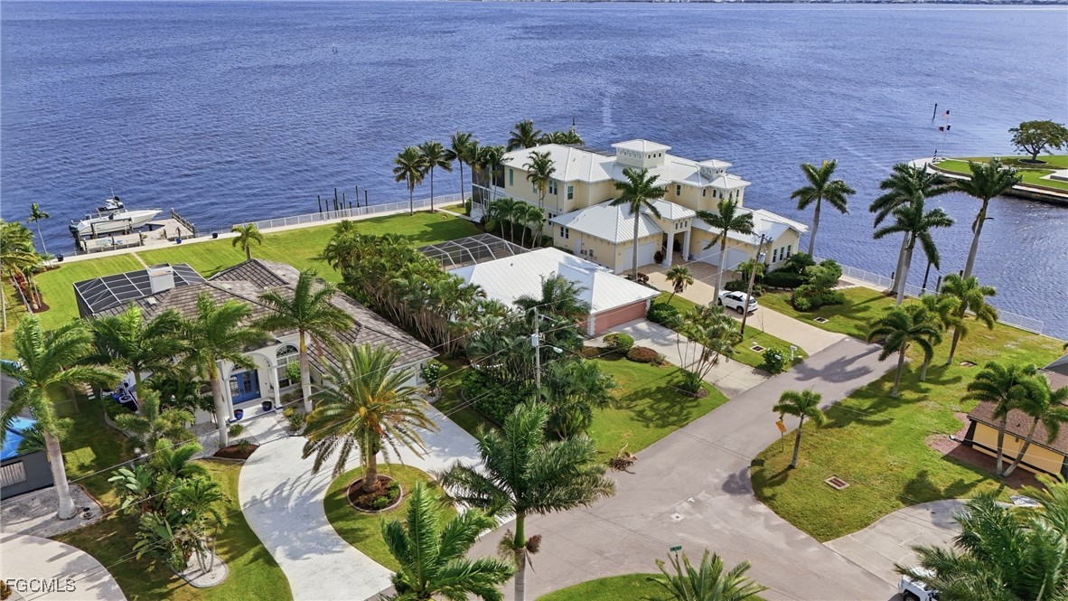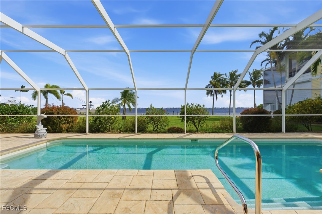 Situated on an impressive 15,000+ sq. ft. riverfront lot in Cape Coral’s quiet, palm-lined Palaco Grande neighborhood—one of the city’s most desirable waterfront communities—this inviting 2-bedroom + den, 2.5-bath pool home offers panoramic views of the Caloosahatchee River and the ultimate Southwest Florida lifestyle. Designed for seamless indoor-outdoor living, the home features pocket sliding glass doors that open completely to a spacious screened lanai with ample room for dining, lounging, and entertaining by the heated pool—all overlooking sweeping, unobstructed river views. Enjoy the best of both worlds: a short boat ride to the Gulf and Islands, and centrally located to shopping, dining, and entertainment, both in Cape Coral and Fort Myers. Wake up to breathtaking sunrises and unwind to the evening lights of downtown across the water. This is more than a home—it’s a boater’s paradise and a lifestyle destination.