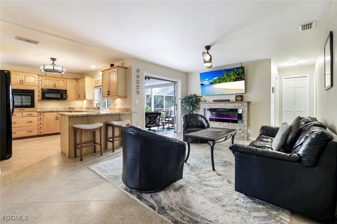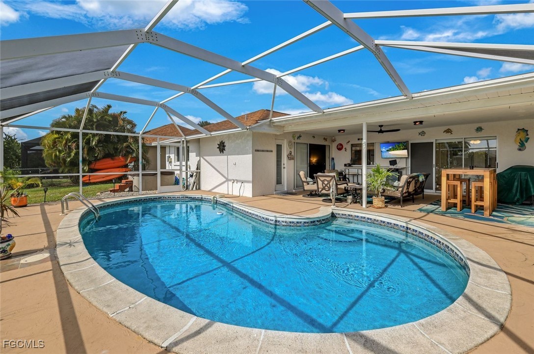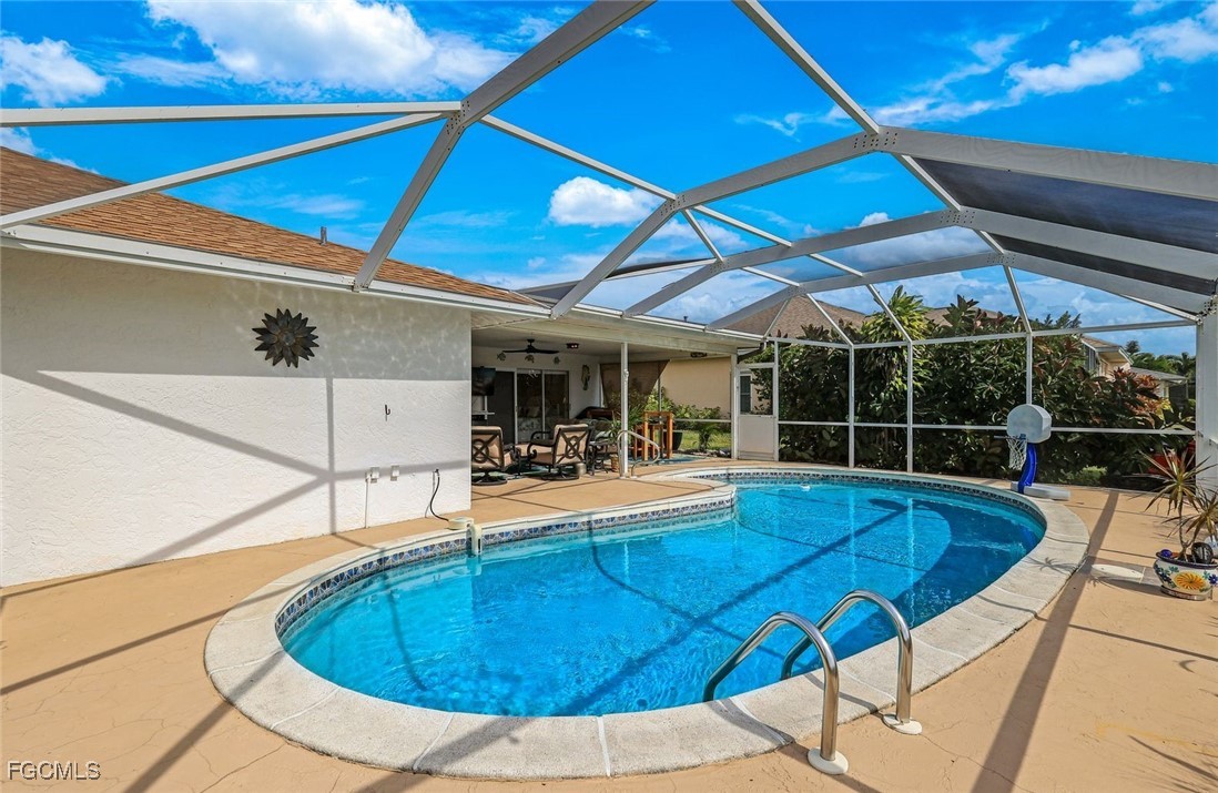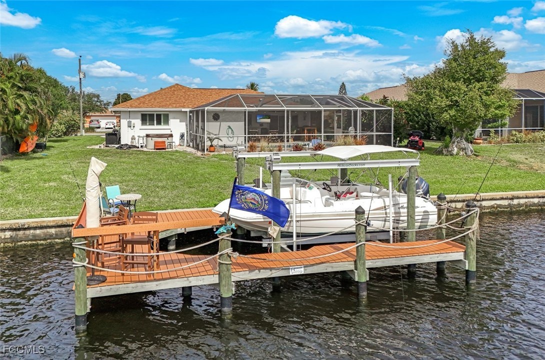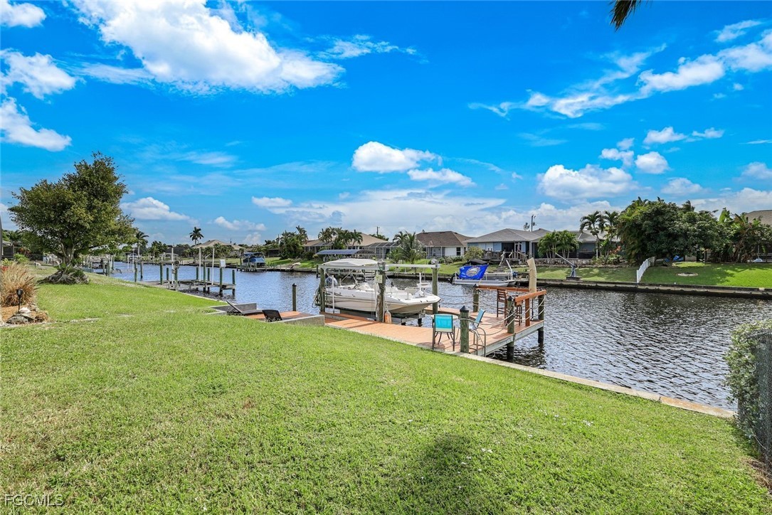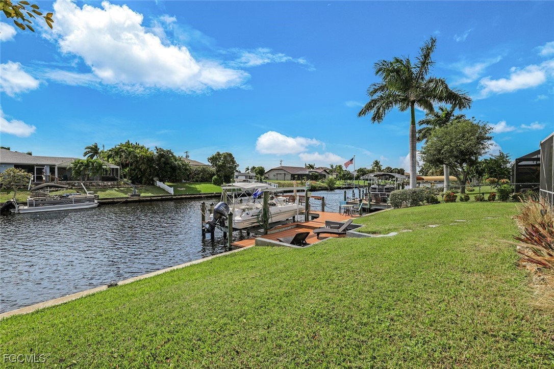 YOUR PARADISE AWAITS – This Beautiful Gulf Access Pool Home in Cape Coral is Priced to Sell! Offering Southern Exposure and situated on the 100-ft wide Mast Canal, this 3 Bedroom, 2 Bath, Pool Home has been Updated and Remodeled with over $90,000 in Upgrades and Improvements. The Gorgeous Kitchen features Granite Counters, Soft-close Wood Cabinets, and All New Kitchen Appliances, including an Electric Cooktop and Wall Oven. You will Love the Primary Suite with a Spacious Bedroom, Beautifully Updated Bathroom, Stunning Walk-in Shower, Good-sized Custom Closet, and Direct Lanai Access. 2 sets of Pocketing sliding glass doors expand your indoor living to the Large Lanai and Pool area outdoors, Perfect for Entertaining and Relaxing, whether you are swimming in your Heated Pool, enjoying time with friends and family, or just soaking up the Florida sunshine. The New Composite Dock was done in 2022 and the New 8,000 lb Boat Lift, that can accommodate a 24-foot Boat, was added in 2023. Additional Updates and Improvements include: New Electric Fireplace, New Kitchen and Both Bathrooms Remodeled, New Luxury Vinyl Floors in Guest Bedrooms and Primary Bath, New Lighting and Plumbing Fixtures throughout home, New Interior Doors, New Garage Pedestrian Door and Pool Bath Door, New Epoxy Garage Floor, New Sprinkler System, New Pool Lights and Timer, Lanai and Pool Deck Resurfaced, New Electric Panel 2022, Repiped 2022, New Water Heater 2020, New Roof 2018, and Third Nail Added to Roof (lowers insurance). All Bedrooms, Kitchen, and Family Room are equipped with ceiling Fans. The Home has never flooded and other than a few pool screens needing to be replaced, the home has had no hurricane damage. Convenient location with easy access to Fort Myers, Southwest Florida International Airport, Punta Gorda Airport, and all of Cape Coral. Close to dining, shopping, entertainment, and schools. Utility Assessments are paid in full.