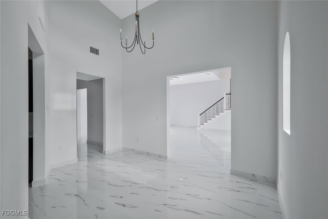 Gulf Access Lakefront Luxury Estate — New Construction 5 Bedroom Pool Home. Experience modern Florida living in this custom-built luxury estate offering nearly 6,500 sq. ft. of indoor/outdoor space on scenic Meadow Lake with direct no-bridges Gulf access. Ample lake frontage allows for a future 30’ boat slip extending into the water. Enter through dramatic 23’ wrought-iron double doors into a stunning great room with floor-to-ceiling windows showcasing the pool and lake views. The open layout blends elegant living spaces with private retreats, perfect for both entertaining and everyday comfort. This home features five spacious bedrooms and four baths, including two primary suites. The main-level suite opens to the pool, while the 800 sq. ft. upstairs suite offers a private balcony, sitting area, and spa-style bath with rainfall shower and body jets. The chef’s kitchen includes a six-burner gas cooktop, custom cabinetry, stainless steel appliances, wine refrigerator, and wet bar. Three additional main-floor guest rooms add flexibility; one includes a private exterior entrance ideal for visitors or a home office. A family room with half bath also functions as a convenient pool bath. Built for unmatched strength and efficiency, the home features a heavy steel-reinforced concrete superstructure, poured upper bond beam, and impact-resistant doors and windows—no shutters needed. A three-zone high-efficiency Rheem HVAC system with transferable 10-year warranty ensures year-round comfort. The 14’x22’ Pebble Tec pool offers an autofill system, Hayward equipment, and a lifetime transferable warranty. Additional features include a 3-car garage, fenced yard, and 9’ elevated base height for reduced insurance. Located in a fast-growing area of Cape Coral, this property offers Gulf access to Charlotte Harbor and is walking distance to the new Crystal Lake Beach with picnic areas, beach access, fitness center, playground, kayaking, boating, and scuba opportunities. Minutes to Coral Oaks and Royal Tee golf courses, Publix, and the future 7 Islands waterfront dining and shopping district.