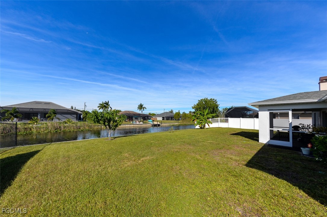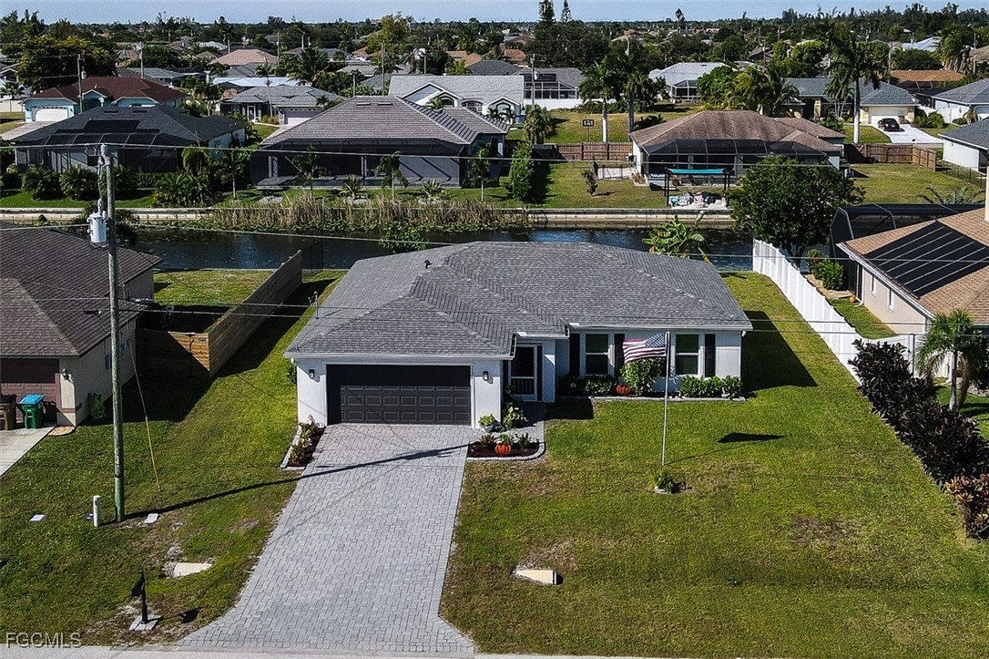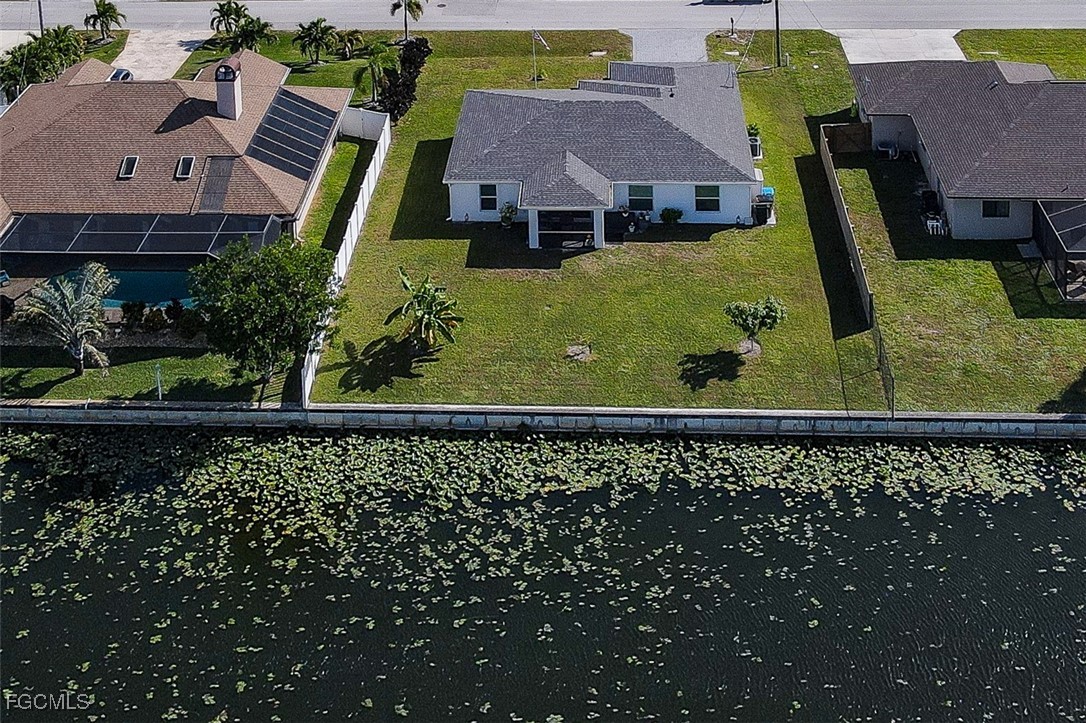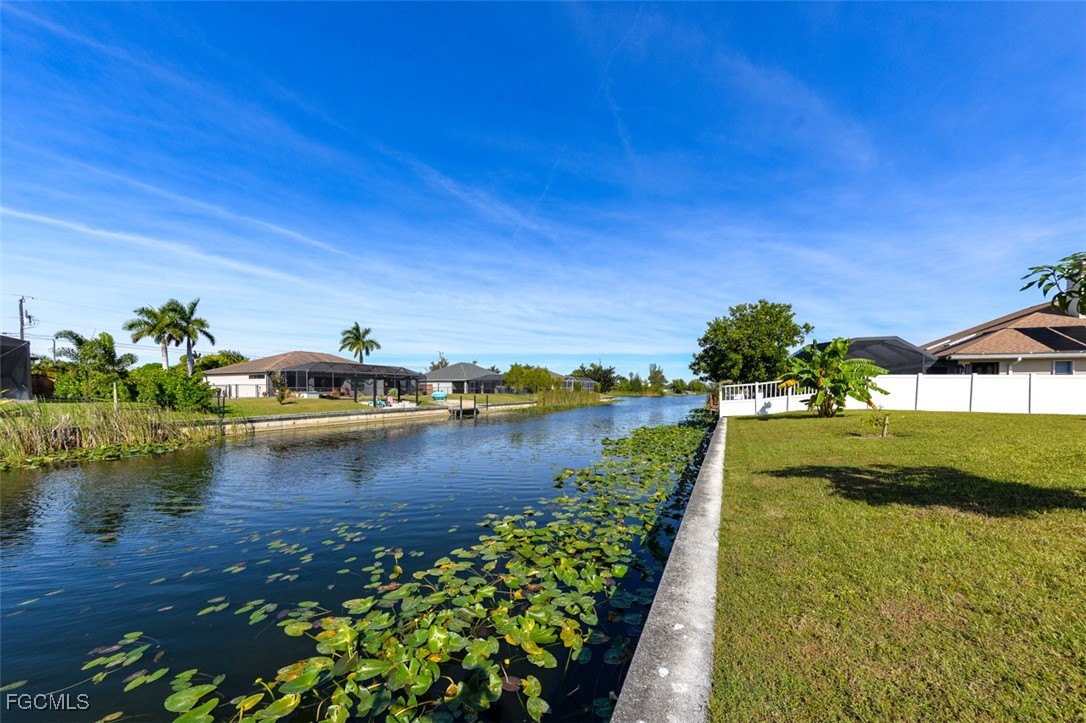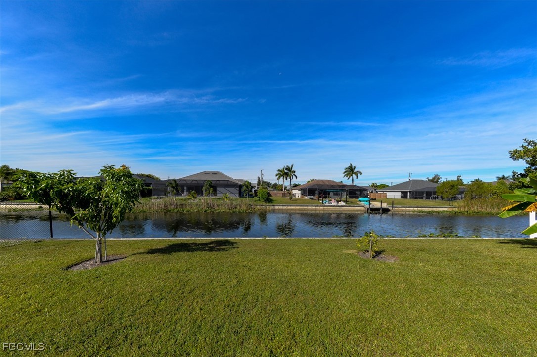 Welcome to your slice of paradise in beautiful Cape Coral! This spacious 4-bedroom, 2-bath home sits on a freshwater canal, offering peaceful water views and a relaxing Florida lifestyle right from your own backyard. Enjoy fishing, kayaking, or simply unwinding by the water’s edge. Inside, you’ll find a bright, open floor plan designed for comfortable family living and entertaining. The kitchen features modern appliances including upgraded 36” contemporary shaker-style cabinets, a large 8’ wide kitchen island that opens to the main living area, upgraded countertops, and ample cabinet space. The primary suite includes a walk-in closet and a private bath, while three additional bedrooms provide plenty of space for family, guests, or a home office. Step outside to your screened lanai and enjoy the serene canal backdrop — the perfect spot for morning coffee or evening sunsets. Located close to top-rated schools, parks, shopping, and dining, this home combines convenience with coastal charm. All city assessments will be paid in full, giving you peace of mind and added value. Whether you’re looking for a family home or a seasonal retreat, this property is move-in ready and waiting for you!
