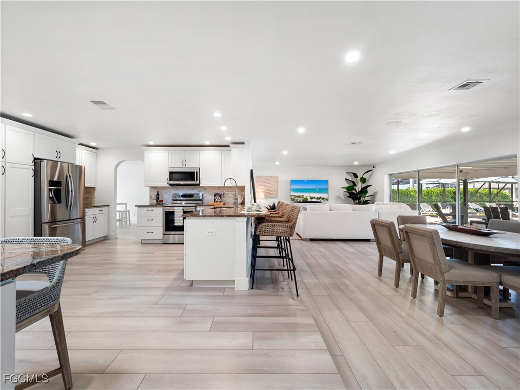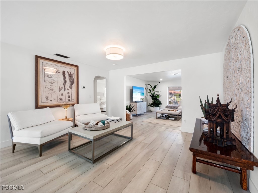 Welcome to Town & River, one of Southwest Florida’s most sought-after waterfront communities. Positioned on the absolute best cul-de-sac in the neighborhood, 775 Cal Cove Drive offers the ultimate boating lifestyle with direct deep-water Gulf access just two lots from the Caloosahatchee River. This beautifully updated home features 3 bedrooms, 2 bathrooms, and over 2,400 square feet of living space, along with an oversized, air-conditioned two-car garage. Interior enhancements include luxury vinyl flooring throughout, solid wood soft-close cabinetry, stainless steel appliances, newer HVAC systems, and an oversized custom primary closet, creating a move-in-ready experience with timeless appeal. Outside, enjoy a large screened in lanai and pool, 96 feet of canal frontage, a new 30,000-pound boat lift, dock, and seawall, perfectly designed for avid boaters. For those envisioning something extraordinary on this one of a kind lot, fully approved & engineered, PERMIT IN HAND plans for a brand-new 4,000+ square foot residence are included with the property, offering an immediately ready-to-build opportunity on one of the area’s best waterfront streets. Cal Cove offers county water and sewer as well as underground utilities, unlike other similar streets. With its unbeatable location, thoughtful updates, and rare potential for future expansion, this Town & River gem truly stands out as one of Southwest Florida’s premier waterfront offerings.