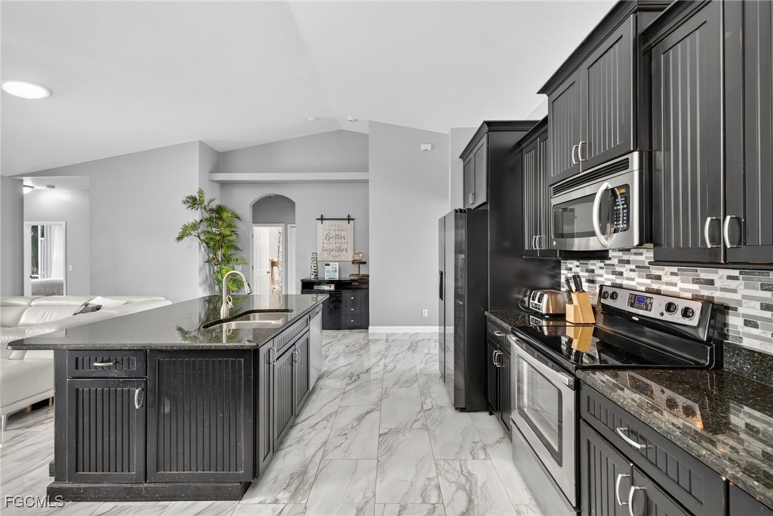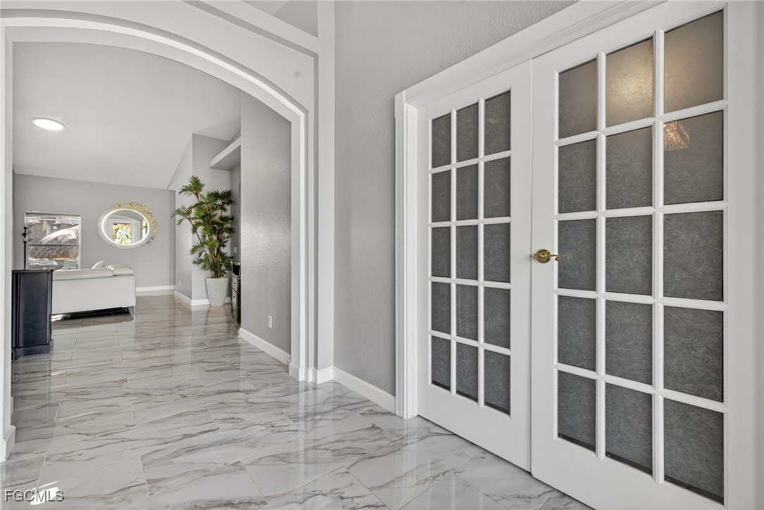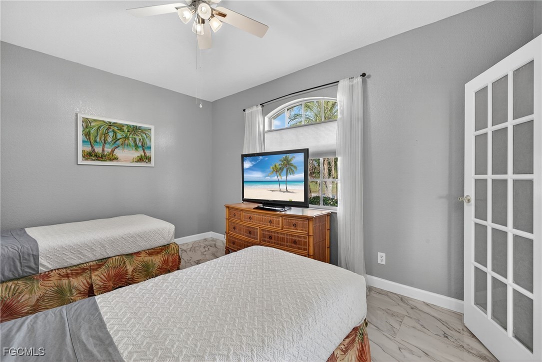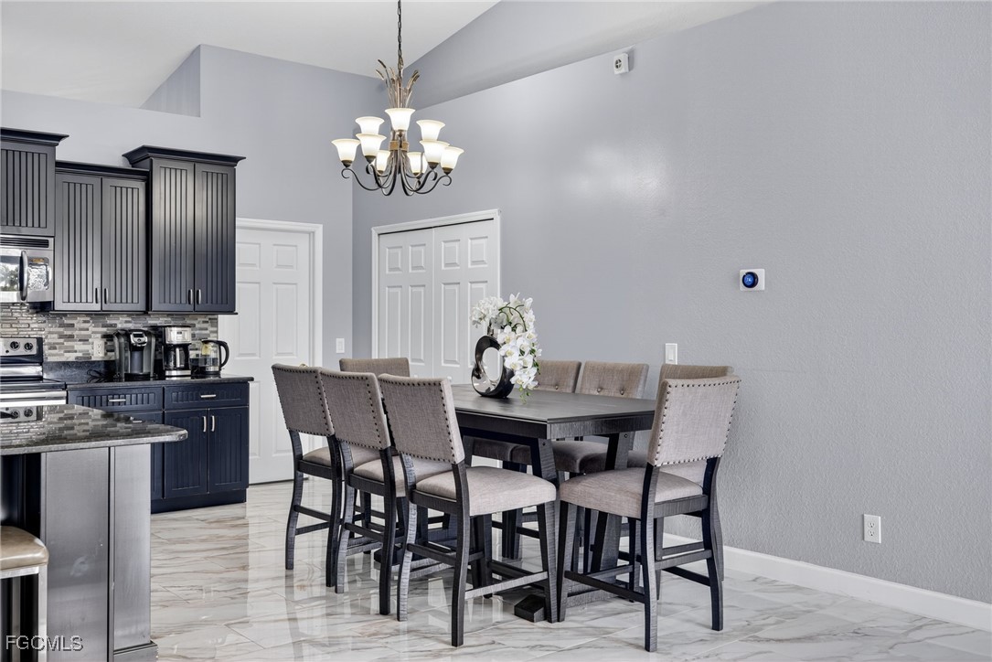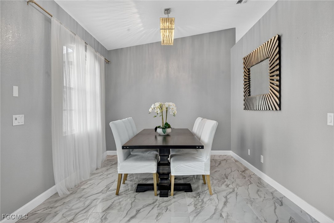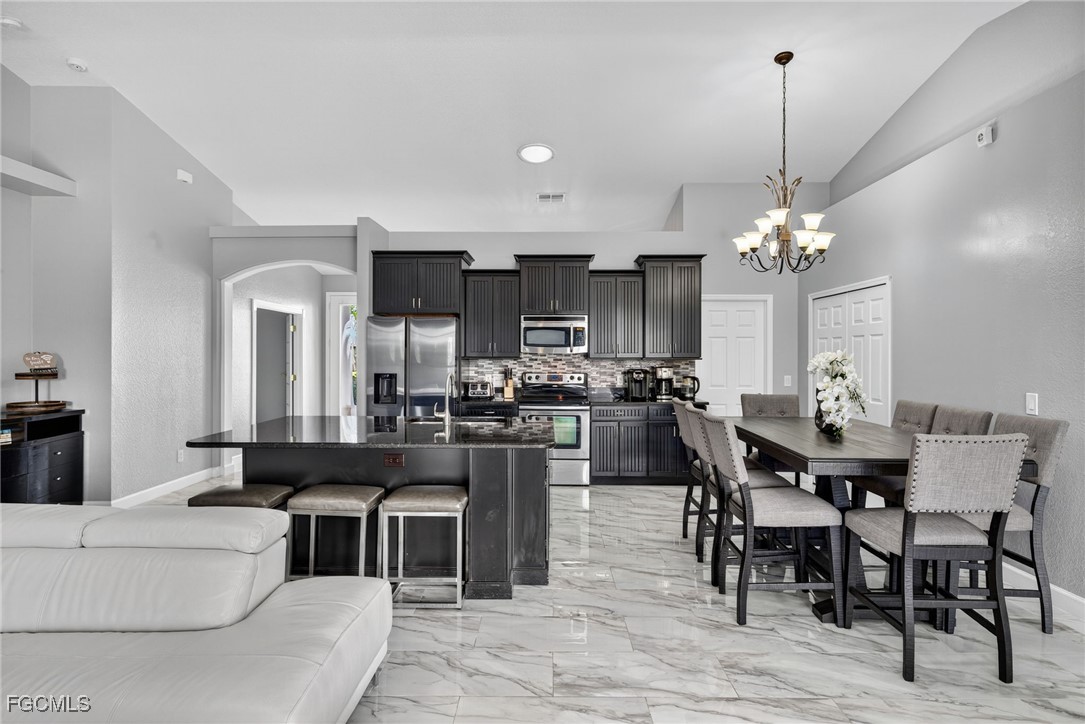 Upon entry, you have a large dining area and a den along with beautiful porcelain flooring that can’t be missed throughout the entire house. The kitchen has a large island with plenty of storage place and is perfectly positioned to give you a clear view of the living room and the pool and oversized canal. There are skylights that brighten up the living room during the day and a wood-look burning fireplace, along with vaulted ceilings. The primary bedroom has plenty of space for additional storage needs along with a large walk-in closet and separate sliding doors leading out to the lanai. The primary bathroom has dual sinks along with a large tub and stand-up shower. All of the bedrooms are large enough to accommodate a king-size bed and additional furniture storage if needed. There is also a pool bath that leads out to the lanai area for extra convenience.