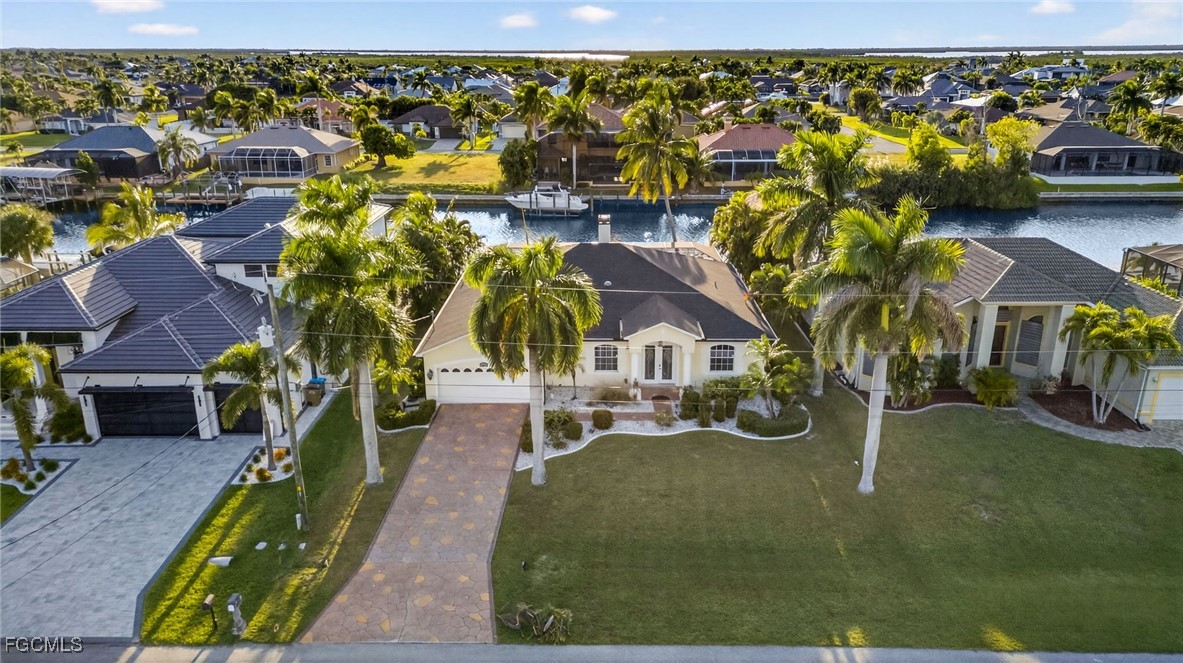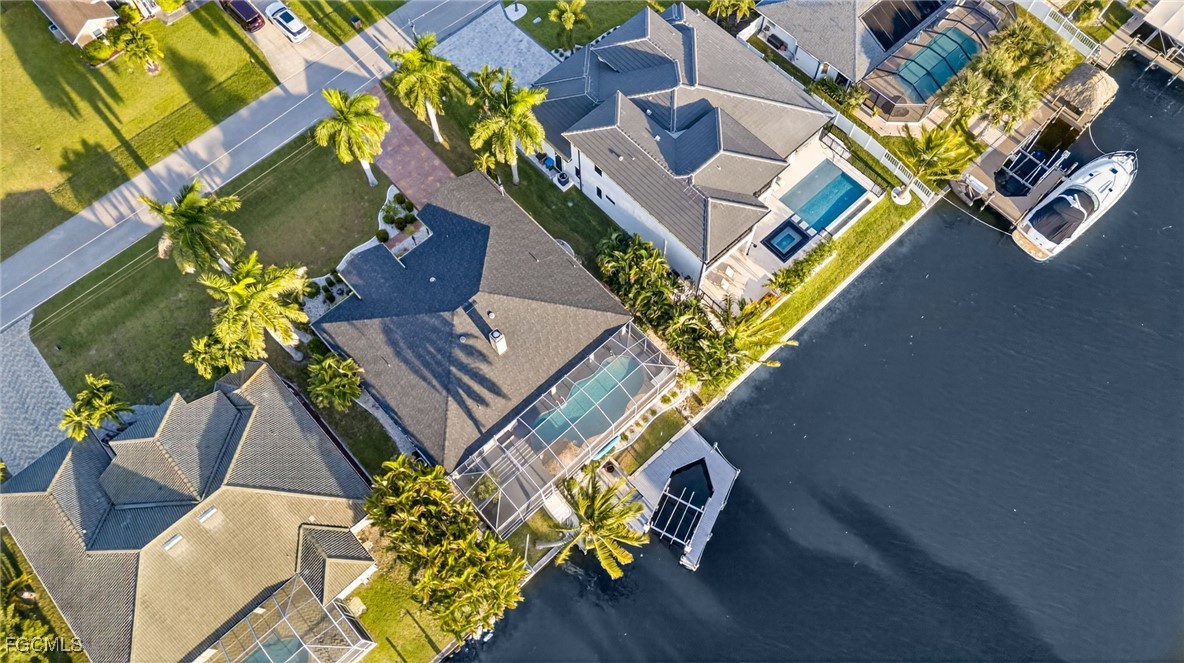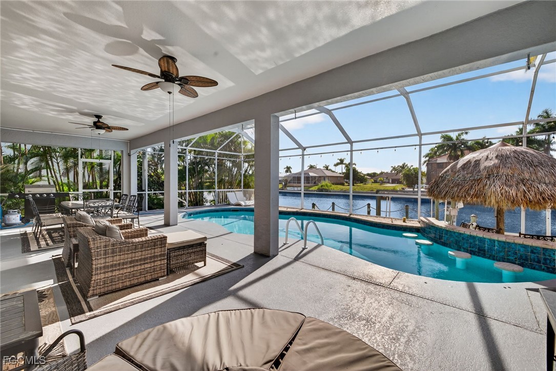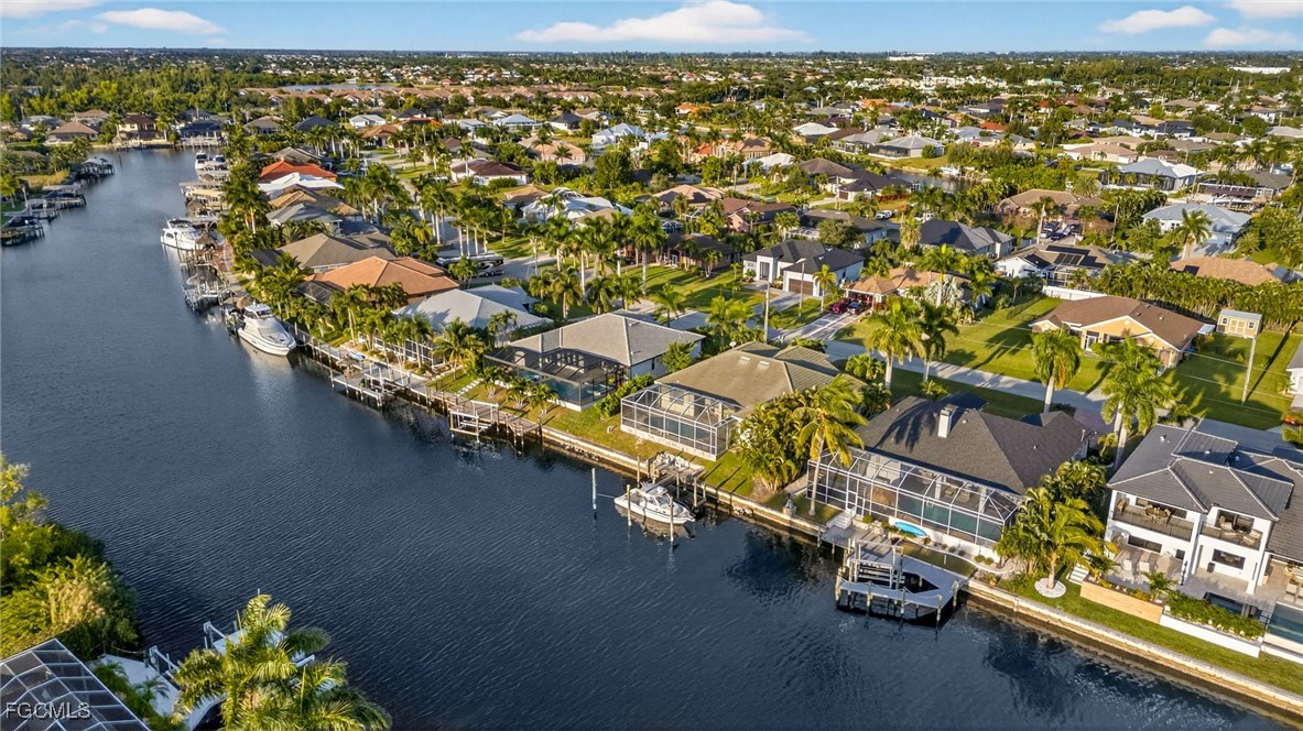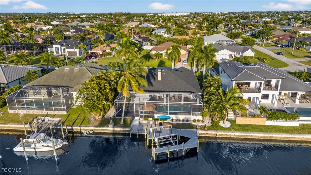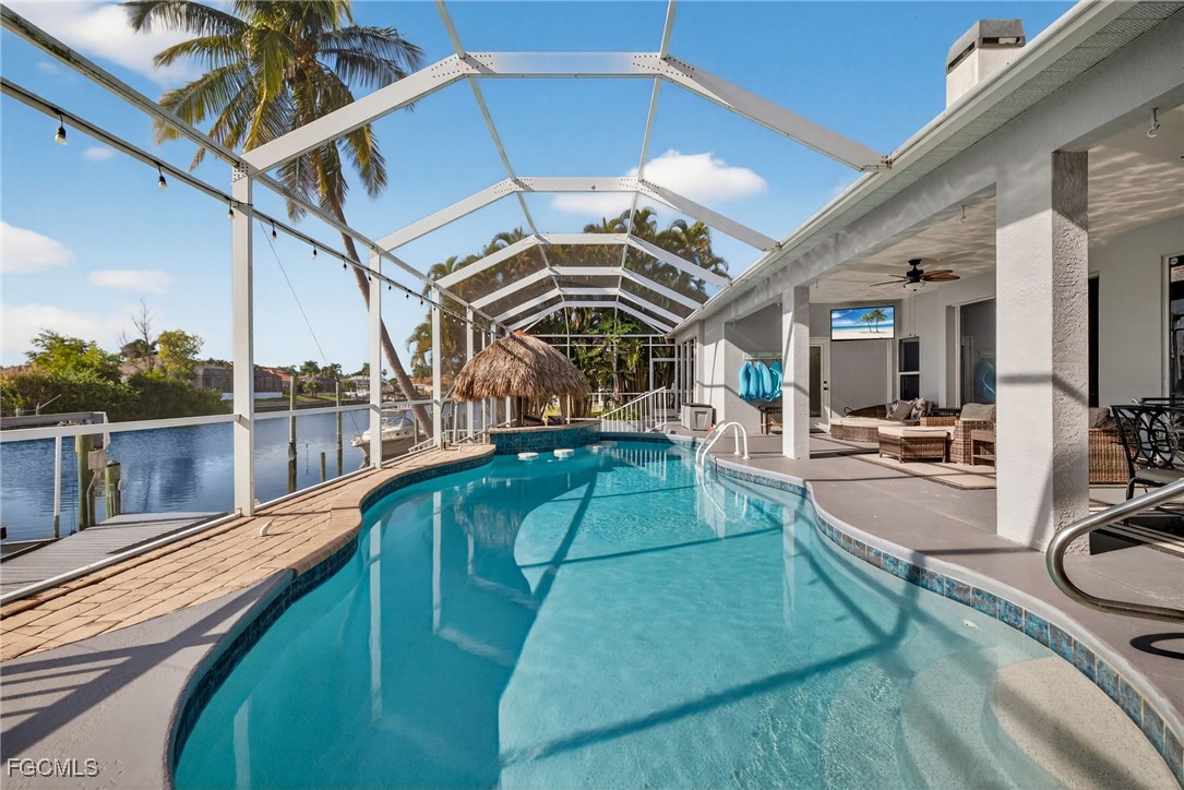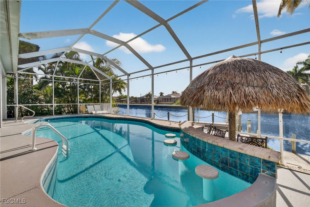 Incredible Direct Gulf Access Waterfront in SW Cape Coral, FL! Located on the 160ft wife Maxine Canal and a very established neighborhood, take your boat from your backyard out to the Gulf for some incredible sightseeing and fishing with no bridge restrictions. This home features 4 Bedrooms +Den (den is currently being used as a bedroom) 3 Full Bathrooms, 2 Car Garage and 2266 Sq. Ft. of Living Space. Enjoy incredible sunsets with Southwest Rear Exposure on your fully screened in lanai along with a large unique pool and a tiki area, overlooking a concrete patio with a boat lift and dock (7000 lb lift capacity).
