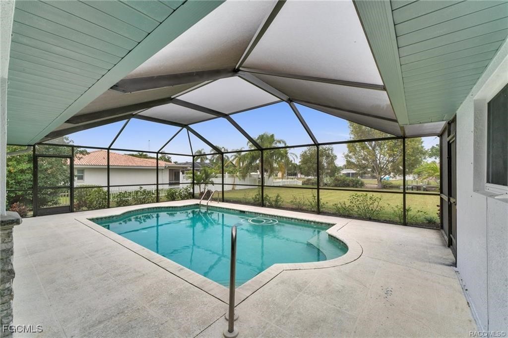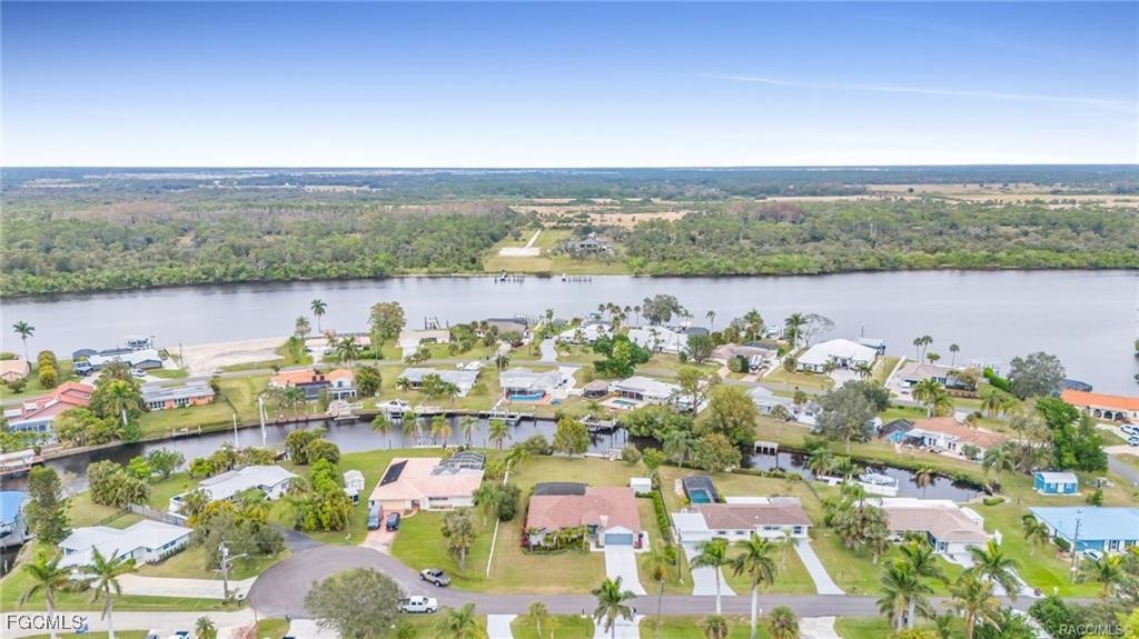 This beautifully remodeled 3-bedroom, 2-bathroom pool home with updated roof, located on just under half an acre along a secluded deep water canal right of the the scenic Caloosahatchee River in Fort Myers, offers the perfect blend of modern luxury and tranquil waterfront living. With a newly updated roof and a sprawling 1,300+ sq. ft. pool and lanai area, the home provides ample space for outdoor entertaining or relaxing while enjoying the stunning river views. The private dock, complete with water, electric, and a 3,500 lb. boat lift, makes this property an absolute haven for boating enthusiasts. Surrounded by pristine landscaping, the nearly half-acre lot ensures both privacy and a serene atmosphere, perfect for enjoying Florida’s natural beauty. Inside, the home has been thoughtfully remodeled with high-end finishes throughout. The open-concept living and dining areas flow seamlessly into the gourmet kitchen, which features granite countertops, stainless steel appliances, and a large center island—ideal for both cooking and entertaining. The spacious master suite offers water views and direct access to the pool, while the ensuite bath serves as a luxurious retreat with dual vanities and a walk-in shower. Two additional guest bedrooms provide ample space and comfort, and the updated guest bathroom offer's modern fixtures and finishes that leads out to the pool. With a two-car garage and plenty of storage throughout, this home is as functional as it is beautiful. Located just minutes from downtown Fort Myers, this riverfront property provides easy access to shopping, dining, and entertainment, making it the perfect place to enjoy the best of Florida living. Schedule your private showing today!