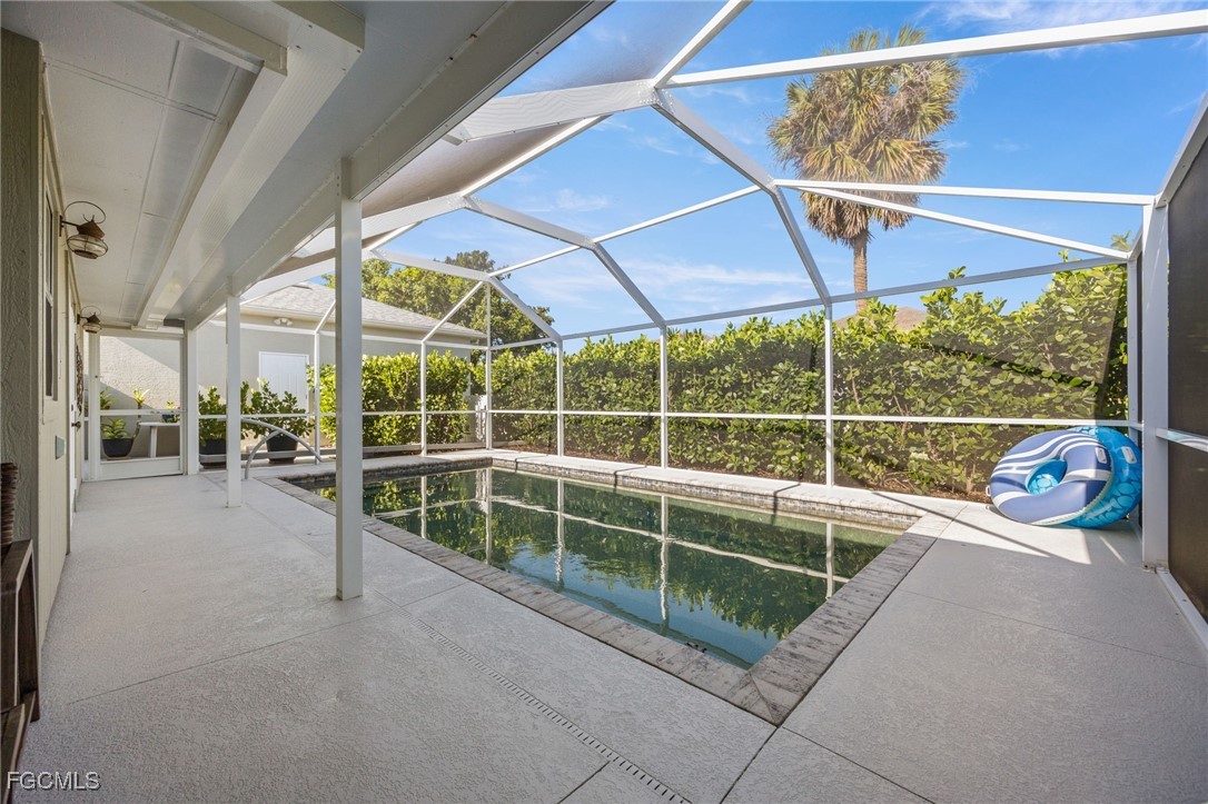 Welcome to your private Gulf-access retreat on an oversized triple lot in one of Cape Coral’s most desirable neighborhoods — just a short walk to the Yacht Club! THREE CAR GARAGE including the additional 28x24 ft. garage with 10 foot ceilings! This beautifully maintained home sits on a lush, fenced-in western exposure lot, offering incredible sunsets, privacy, and room for all your toys — from boats and trailers to RVs — thanks to wide gated access and a huge green yard lovingly landscaped by the current owner, and is 30'from the side of the house to the property line. Inside, you'll find plenty of storage and a smart layout designed for everyday comfort. Outside, enjoy the newer saltwater pool with heat pump, a 2022 screen enclosure, and a 2021 roof for added peace of mind. The standout feature? A massive 896 sq ft detached garage, added in 2008 with 60-amp service. Whether you need a workshop, home studio, or future guest suite, the possibilities are endless — the current owner uses it for his painting business. Additional upgrades include an impact-rated garage door (2024), privacy fencing, and a fully irrigated, beautifully maintained yard. Boaters will love the quick access to the river — just one bridge out, making it easy to be on the water in minutes. This one checks every box: oversized lot, thoughtful updates, walkability to Cape Coral’s waterfront attractions, and room to live, work, or play.