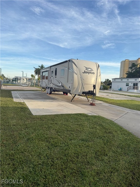 Palmetto Palms RV park is a gated, 55+ community where YOU OWN THE LAND! 2017 Jayco Eagle RV 40 Ft is located in Palmetto Palms. Electric, sewer and water. New electric hook ups. Newly re-decorated. Spacious island kitchen has gas cook top, refrigerator, microwave. Sleeps 6, fireplace. Retractable sun awning, Everything in RV conveys in sale, except sellers personal items. Property is located by pool and all amenities. With low HOA fees. Park offers boat storage and is biking or walking distance to Bunche Beach. Fort Myers Beach and Sanibel are a short car ride away. This area has so much to explore. Close walking distance to the community amenities including pool, tennis/pickle-ball courts, clubhouse. Near shopping and restaurants.