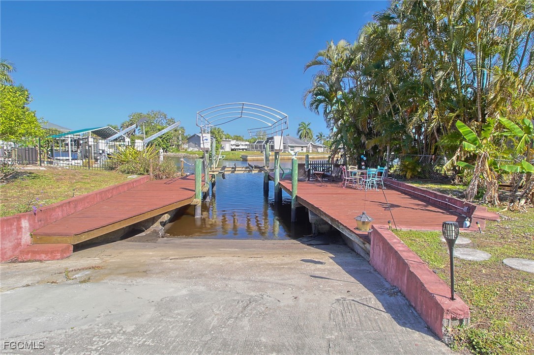 EASY TO SHOW. Attention kayakers, fishers, and lovers of all things Florida: here is your home! Direct gulf access, just 2 minutes from the open expanse of the Caloosahatchee River, this property creates the lifestyle you've been looking for! There is a double-sided wooden dock on either side of your private boat ramp, freshly stained, one side large enough for a sitting area or dining area (wooden dock was built over the existing concrete dock). There is a covered 10,000 lb boat lift, which accommodates a pontoon OR a v-bottom boat. You can even catch blue crab right from the dock. Inside the home is completely tiled, granite countertops, and stainless steel appliances. The property has some beautiful mature landscaping, including coconut, banana and mulberry trees, muscadine grape vines and gorgeous Bottle Brush Trees. Enjoy evening sunsets from your backyard, fish from the dock, and store your boat without having to pay any marina or storage fees. Ideal for your primary residence, your winter home, OR a seasonal rental. If you are looking to buy nearby homes with friends and family, the owners is also selling the home next door at 147 Coral Drive.