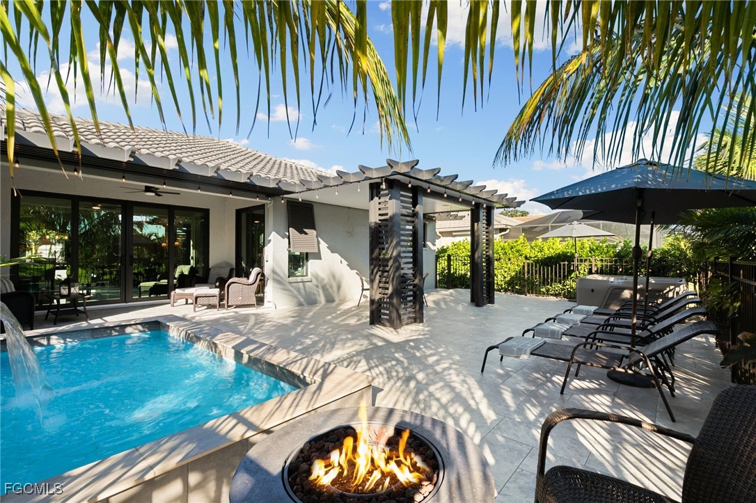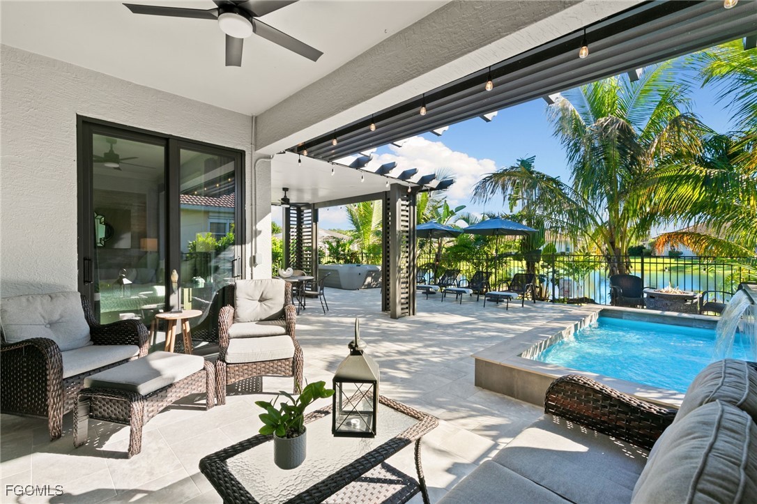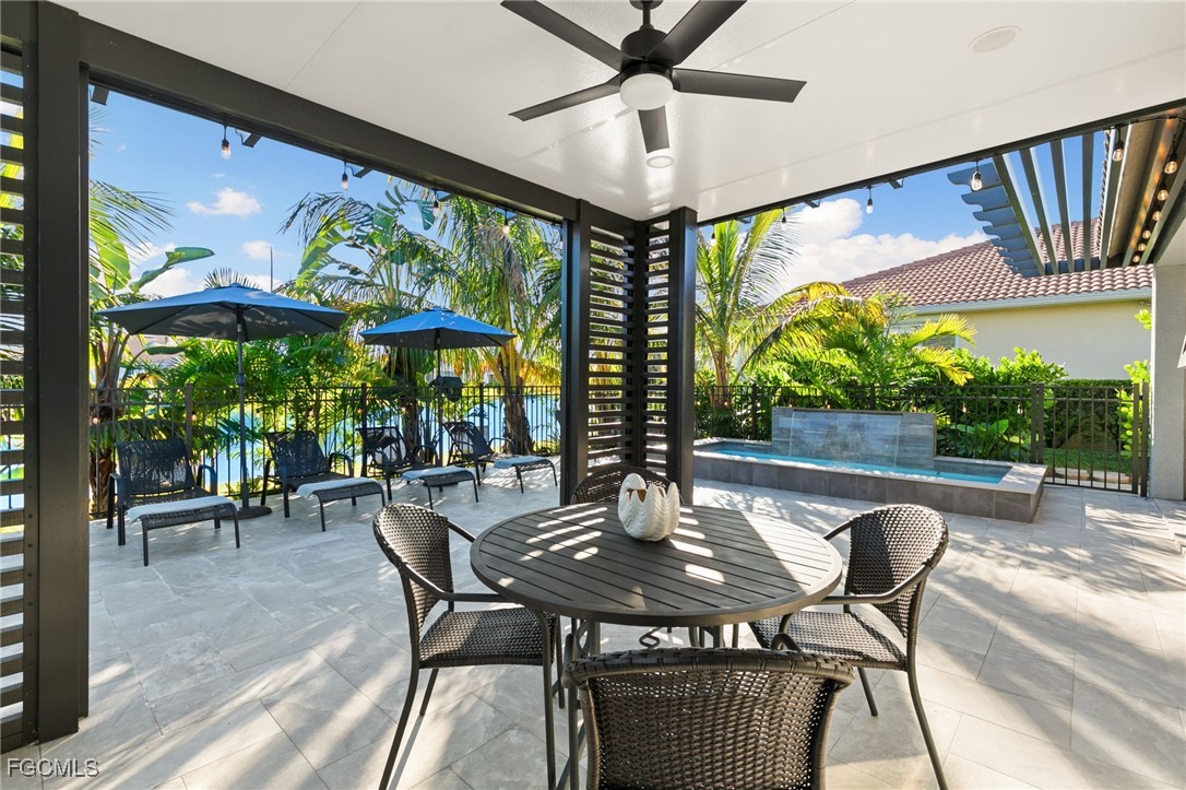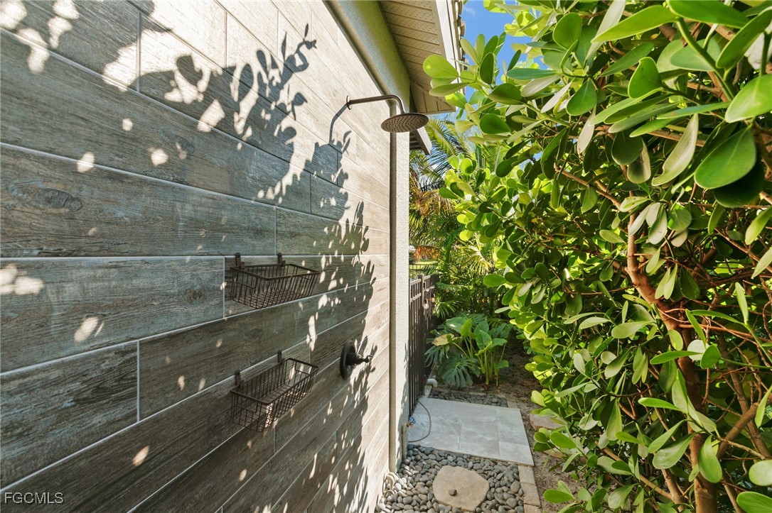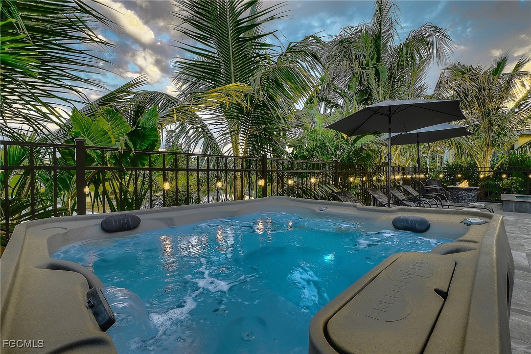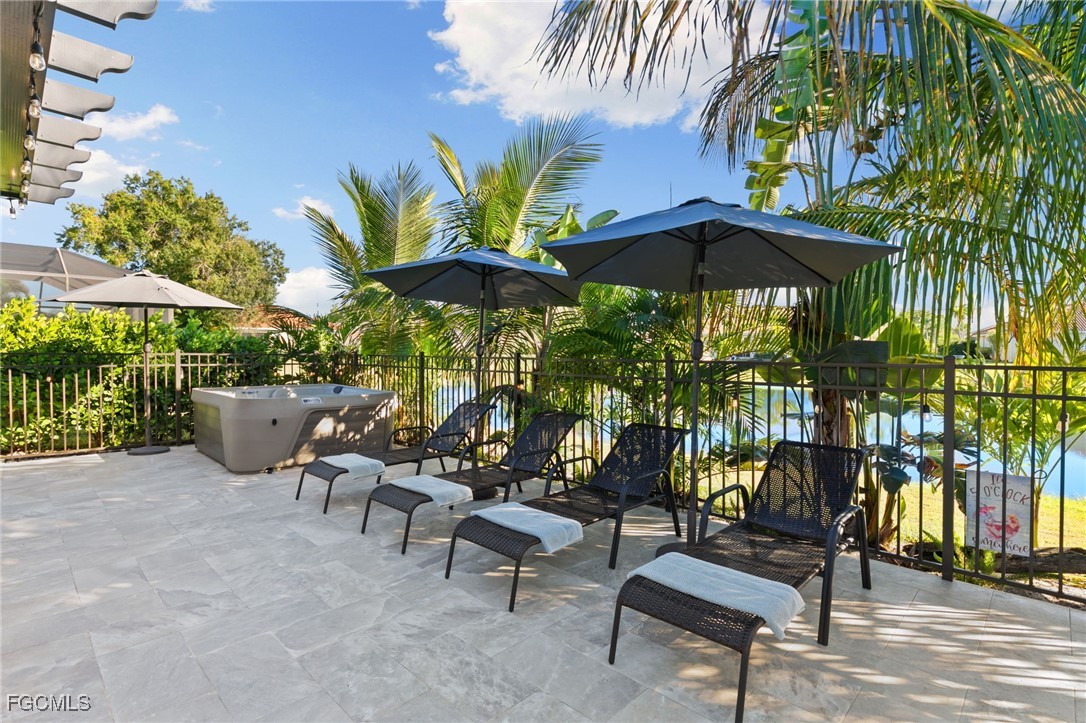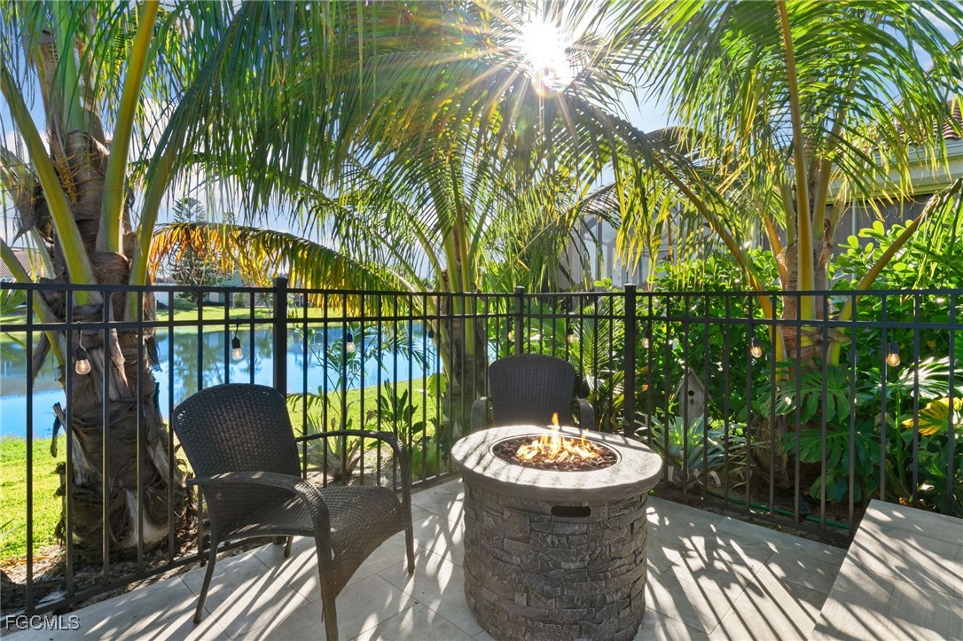 Step outside to discover over 1,000 SQUARE FEET OF PRIVATE OUTDOOR LIVING, including a 25’ x 40’ PATIO with a tranquil WADING POOL AND WATERFALL FEATURE, a FOUR-PERSON JETTED SPA, COVERED LANAI, and an OUTDOOR SHOWER. Surrounded by lush landscaping on a quiet cul-de-sac with lake views alive with native Florida wildlife, this outdoor space offers both serenity and endless opportunities to entertain.