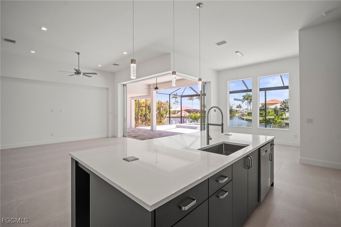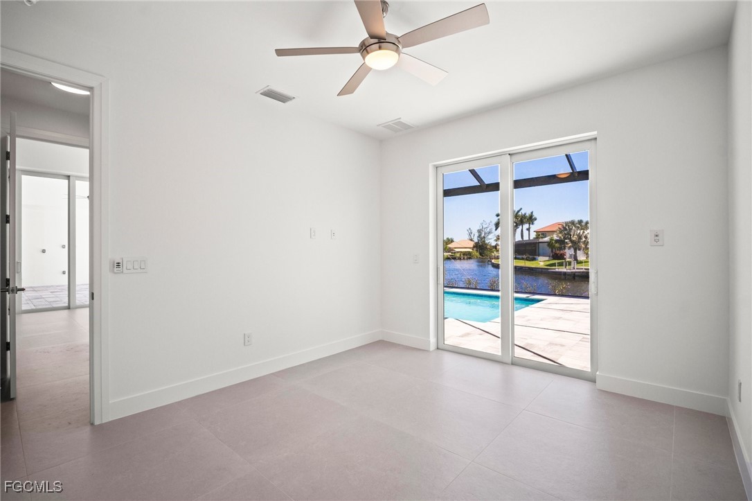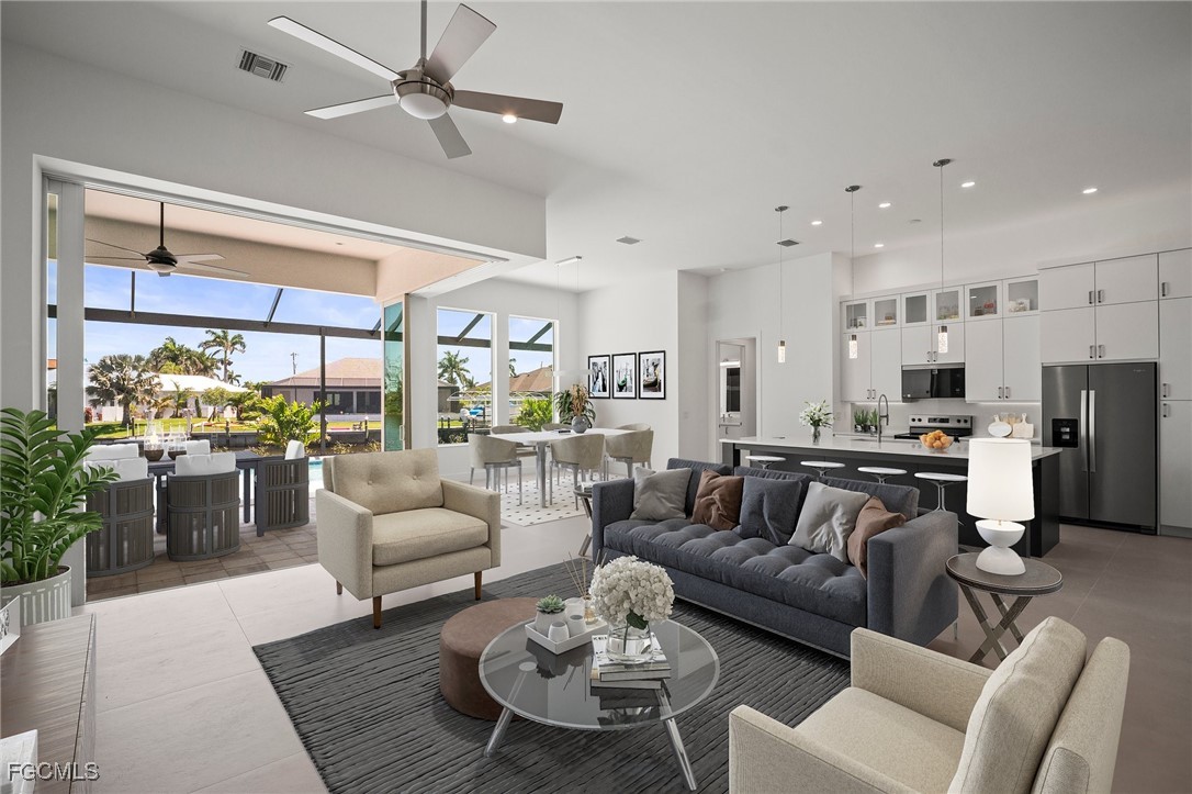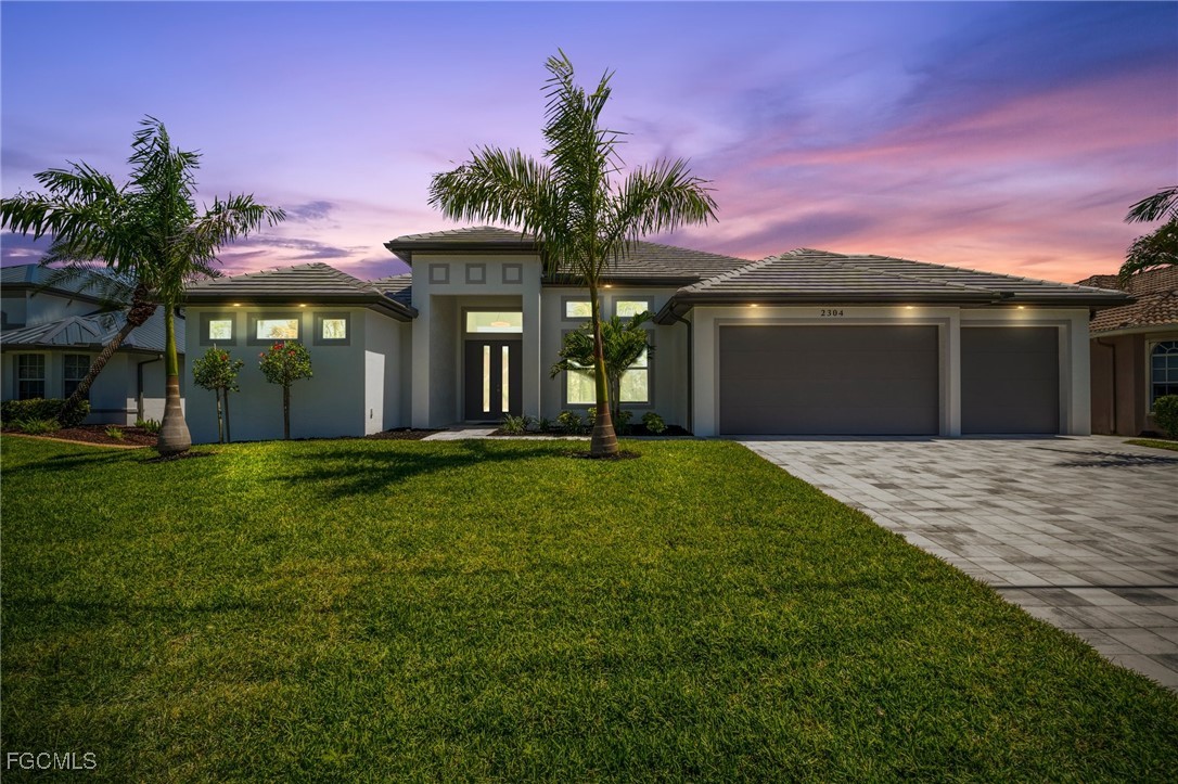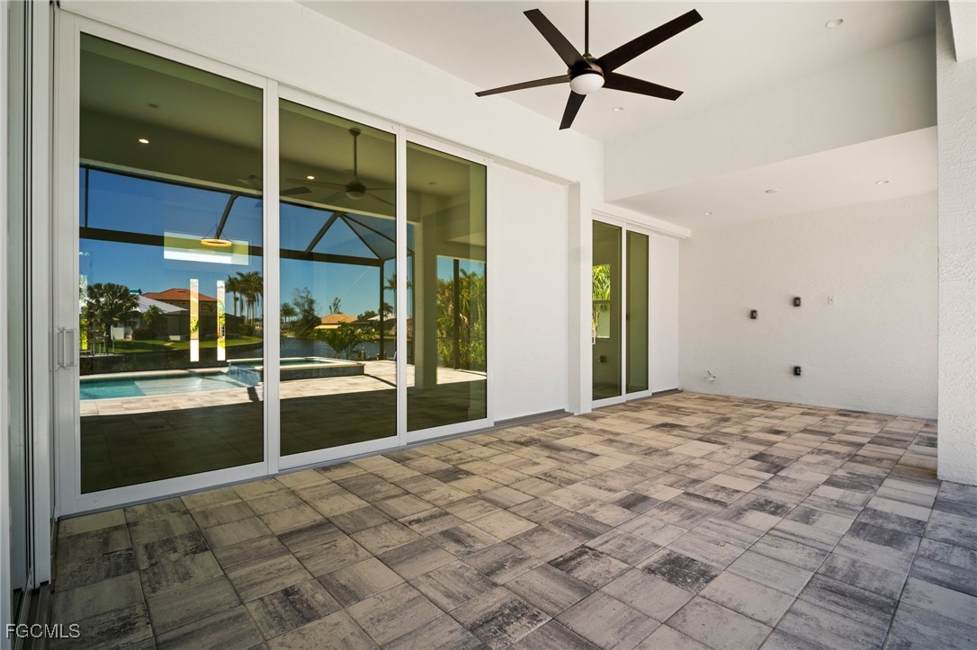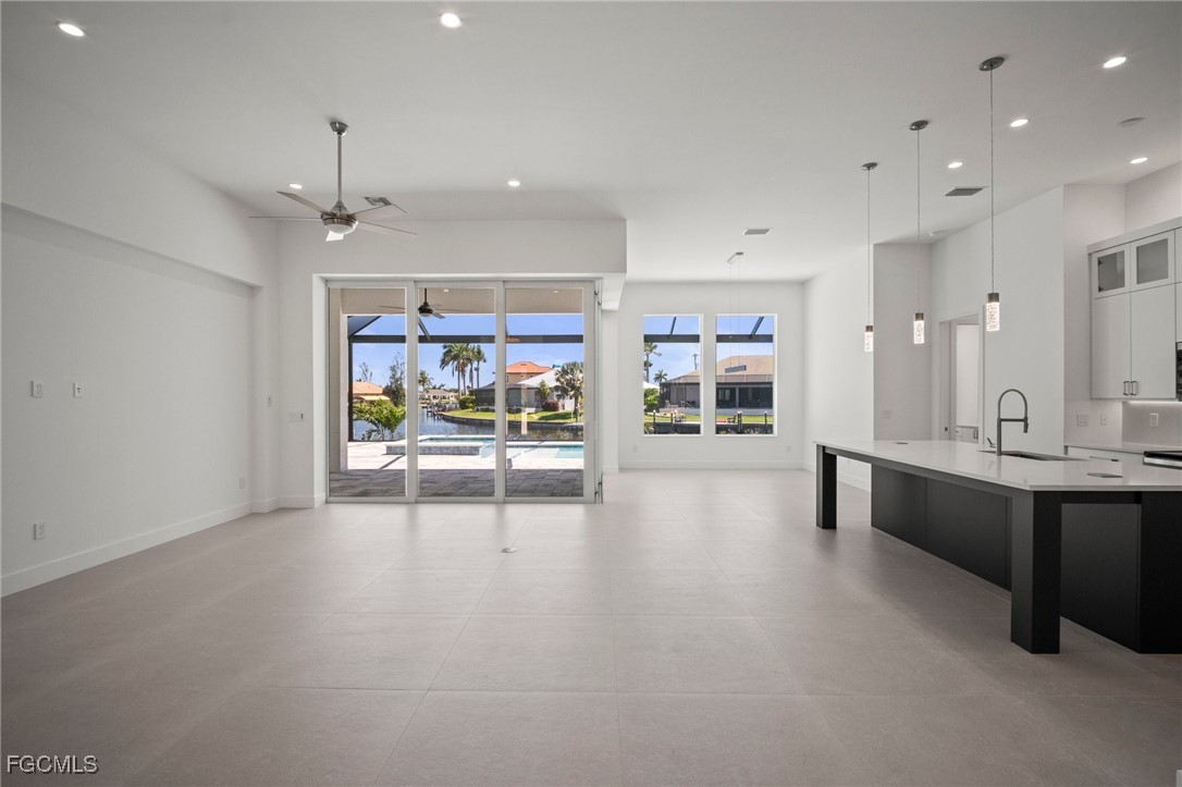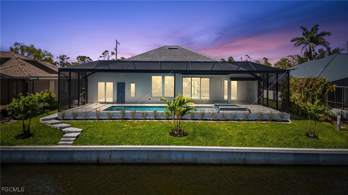 Brand-new modern gulf access home with desirable southern rear exposure and an awesome view over the intersecting canal. This home features 3 bedrooms, a large den and 3 bathrooms, a beautiful kitchen with center island and a dining area with large windows overlooking the canal intersection. The 10 ft. Zero Corner sliders open up to the lanai (storm protected by electric roll down shutters) and over sized pool deck featuring a large pool, spa and sun-shelf for year-round enjoyment. This home fits perfectly as a permanent residence as well as a second home or a successful vacation rental.