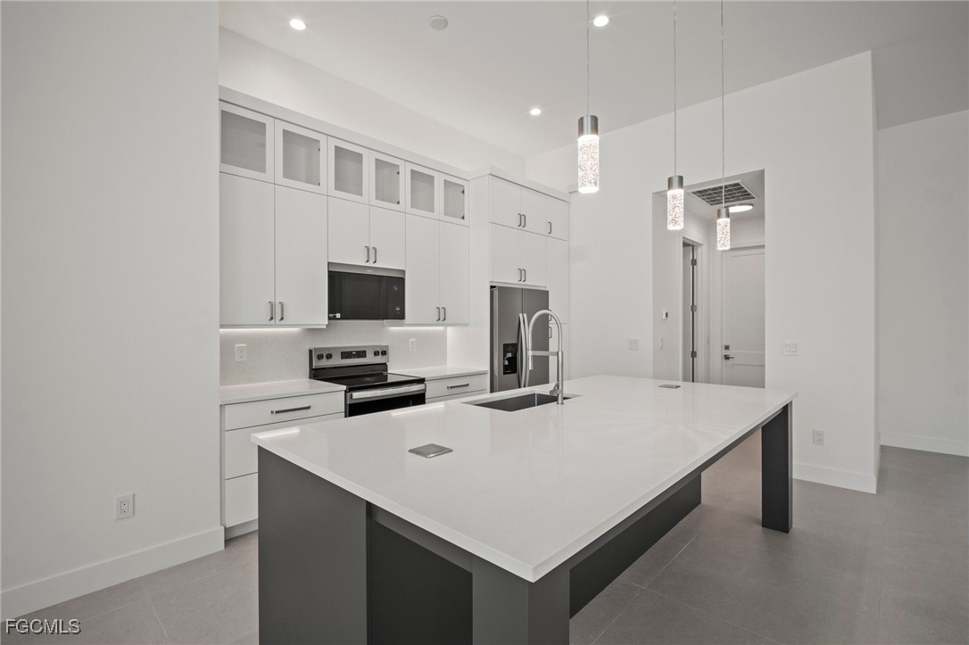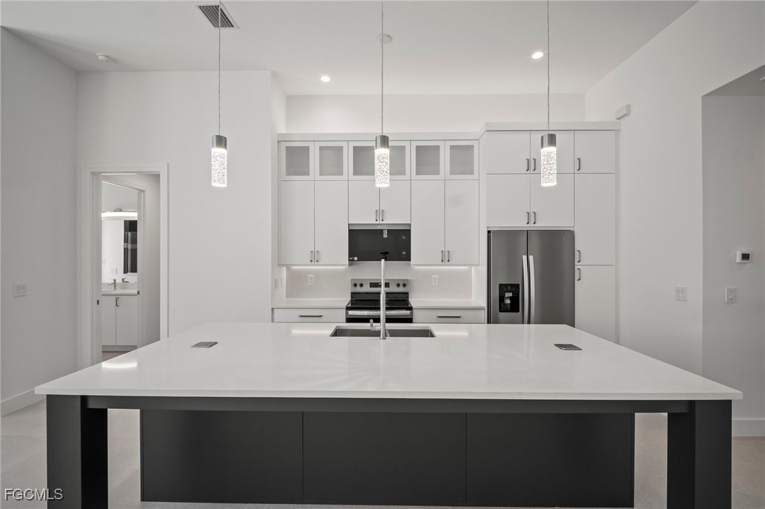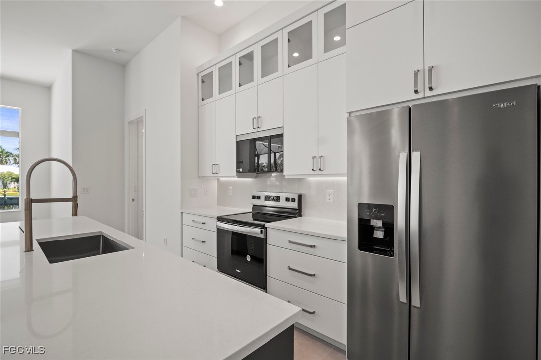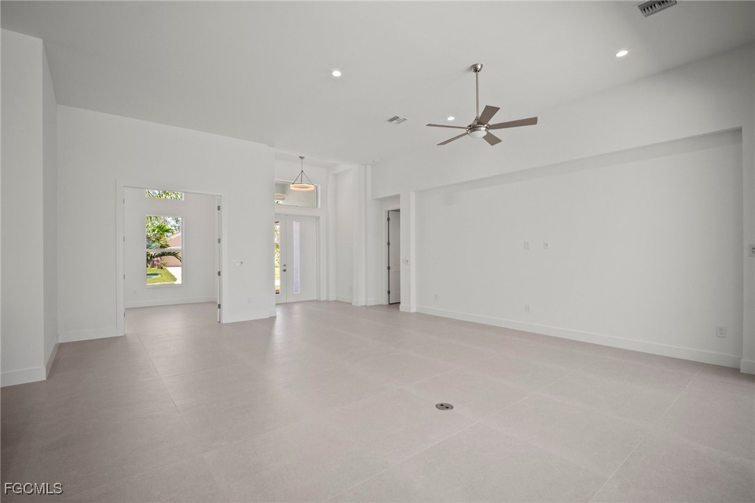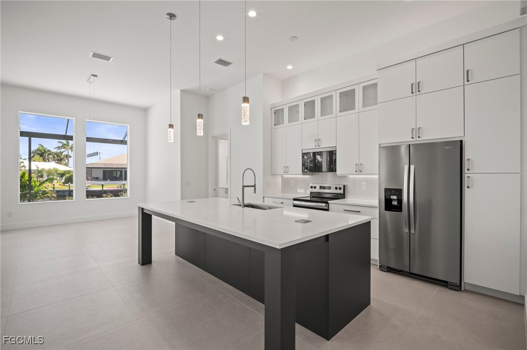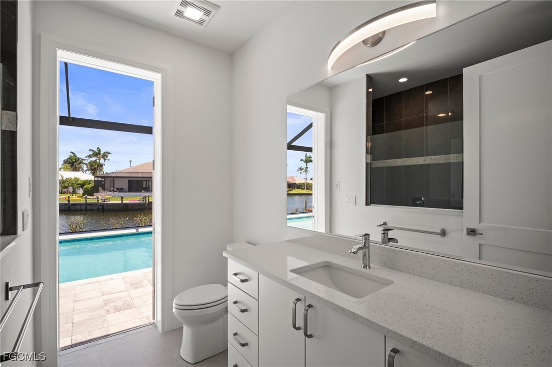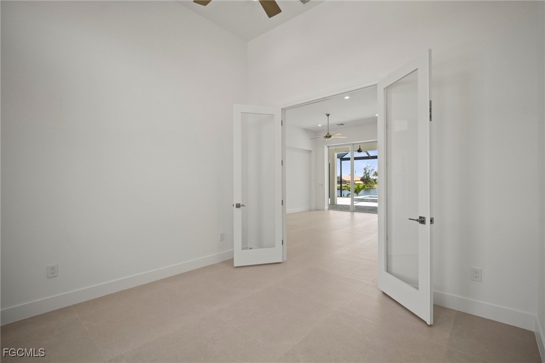 Brand-new modern gulf access home with desirable southern rear exposure and an awesome view over the intersecting canal. This home features 3 bedrooms, a large den and 3 bathrooms, a beautiful kitchen with center island and a dining area with large windows overlooking the canal intersection. The 10 ft. Zero Corner sliders open up to the lanai (storm protected by electric roll down shutters) and over sized pool deck featuring a large pool, spa and sun-shelf for year-round enjoyment. This home fits perfectly as a permanent residence as well as a second home or a successful vacation rental.