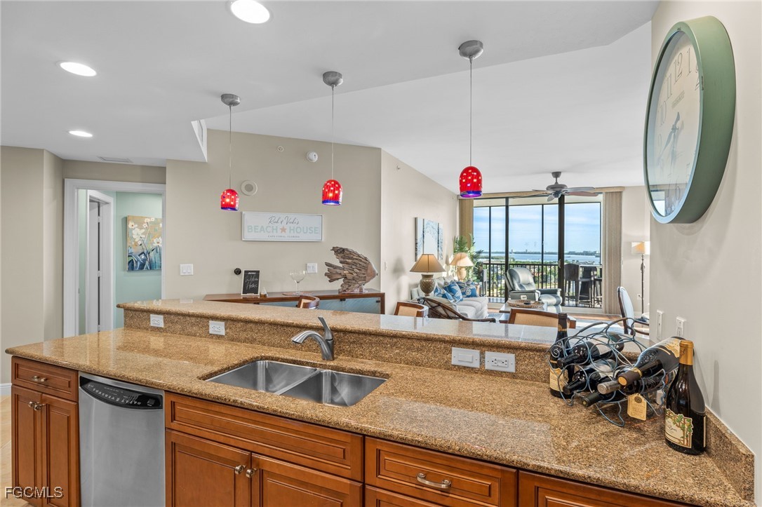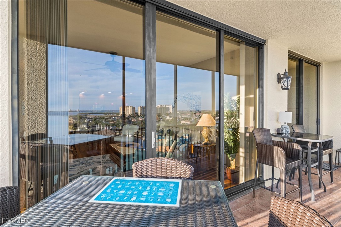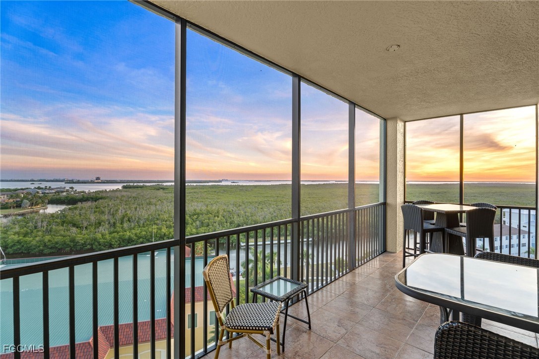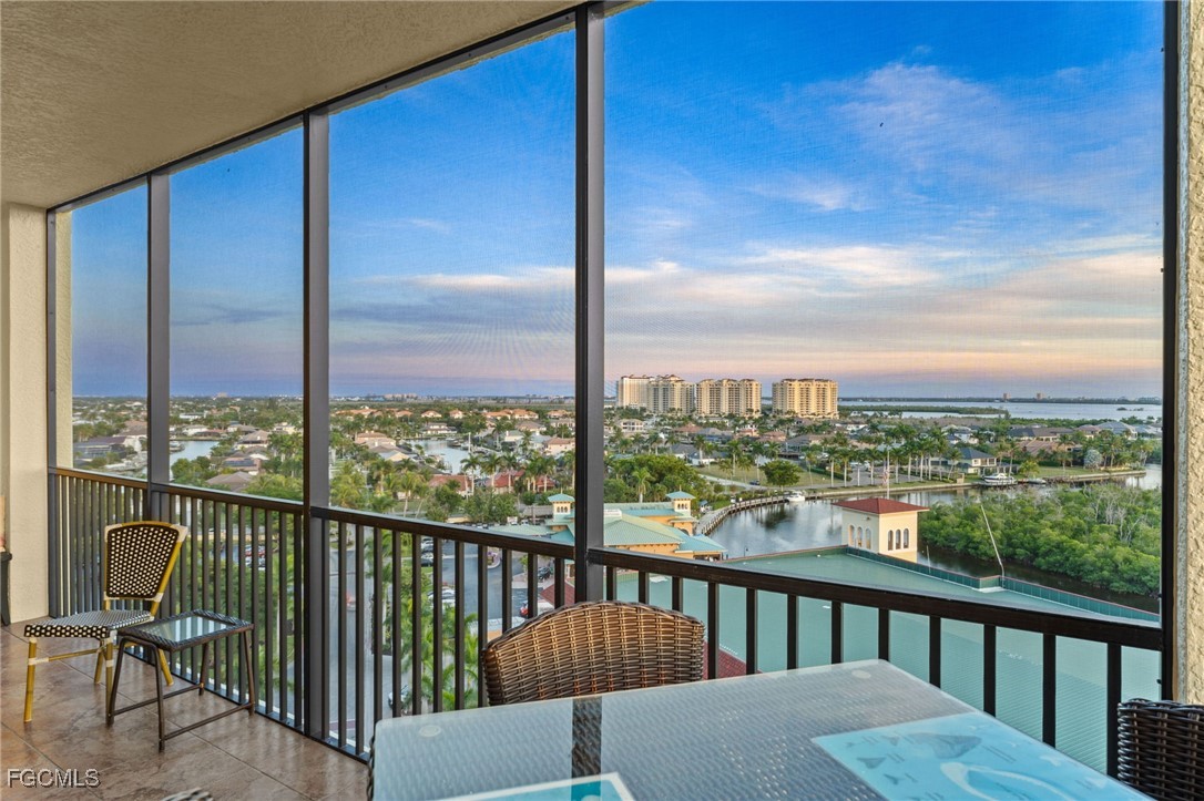 Absolutely stunning 11th Floor corner unit with jaw-dropping views of the Caloosahatchee River, Sanibel Island, Pine Island, and Ft Myers Beach. This unit is move-in ready! The kitchen is equipped with gorgeous wood cabinetry and granite countertops with an expansive bar top perfect for entertaining. The flooring is a perfect blend of tile and luxury wood laminate flooring for both elegance and durability. The split bedroom floor plan makes it ideal for visiting family and friends as they enjoy privacy with their own guest bathroom. The master suite has a large walk-in closet and an ensuite bathroom with dual sinks and a walk-in shower. This condo is ideal for a primary residence or as an investment property for rental income. New AC installed in 2021. Cape Harbour offers tennis, a fitness center, two pools, and a full service marina. Enjoy walking to all of the shops, restaurants, and live entertainment! Don’t let this one slip away! Secure your “Piece of Paradise” today!