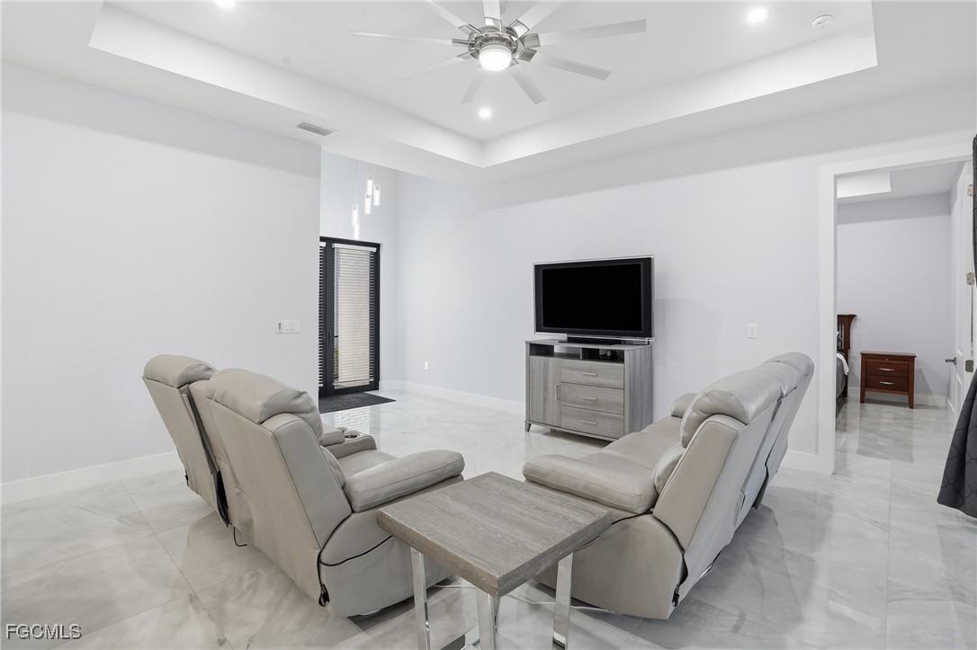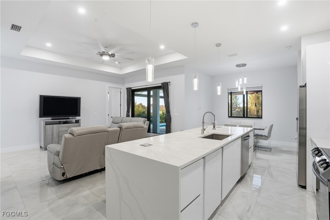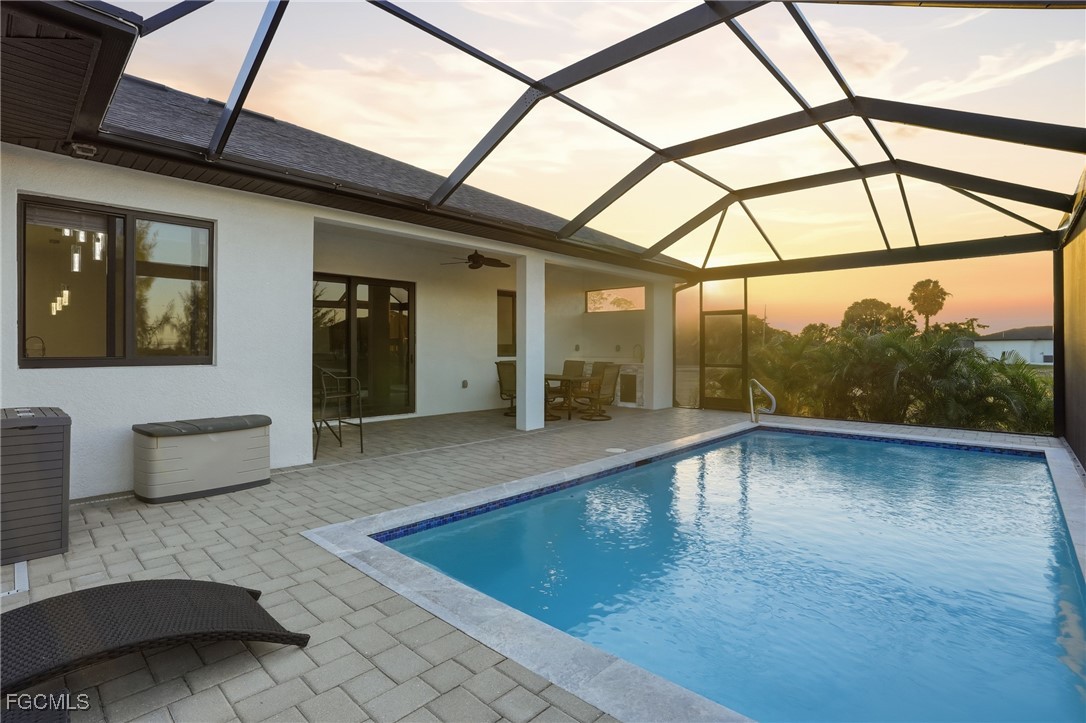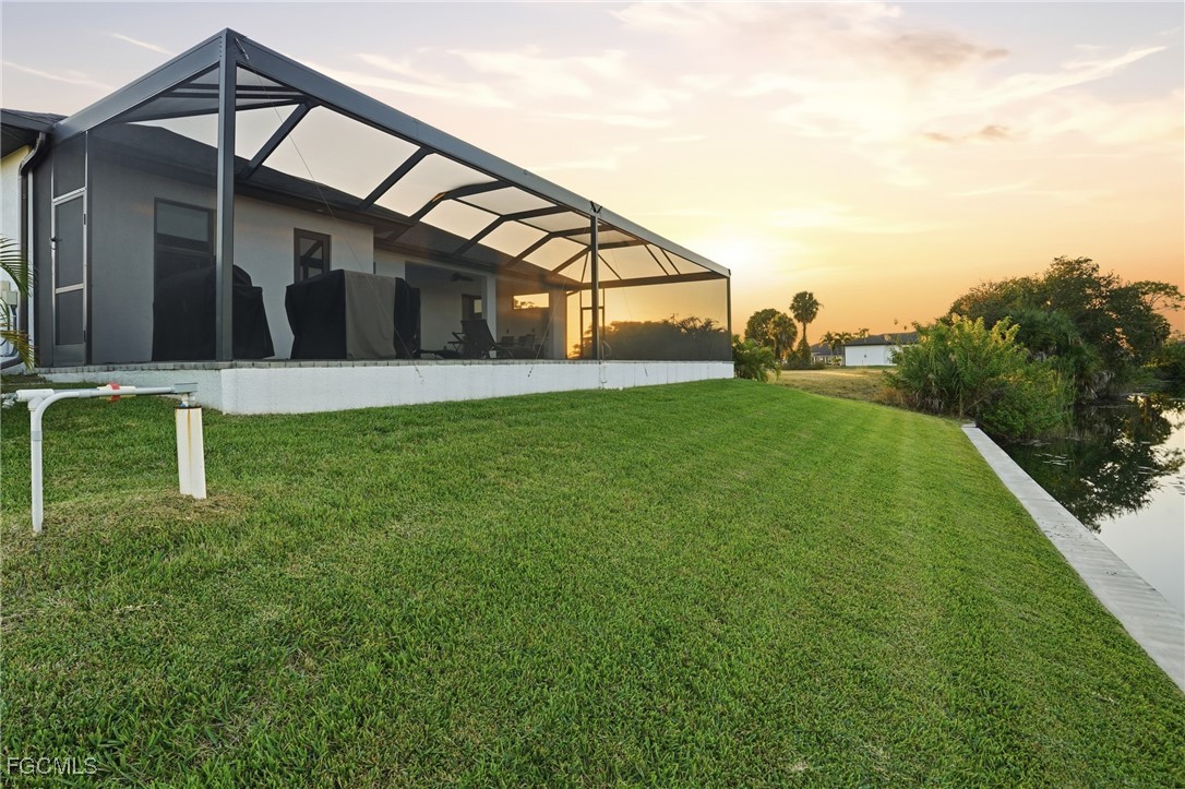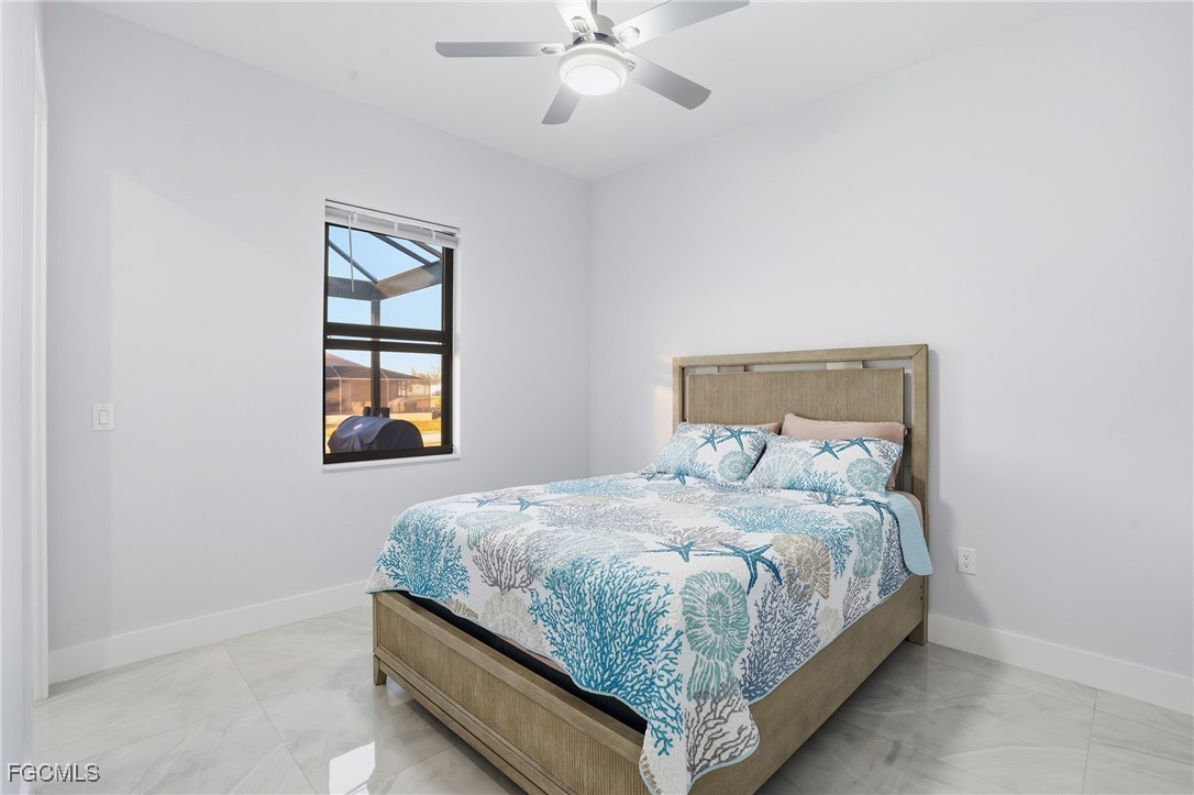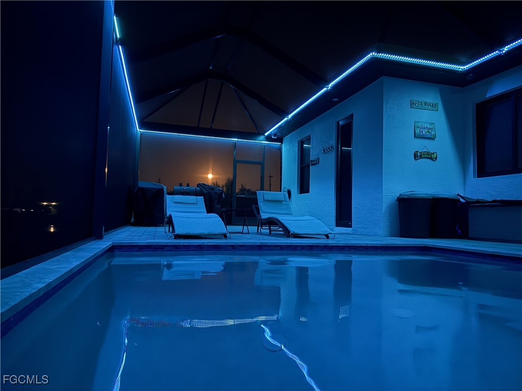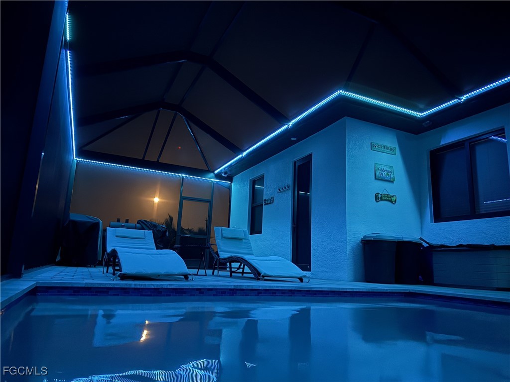 Experience modern Florida living in this stunning, light-filled waterfront pool home situated on a wide freshwater canal. With 4 bedrooms, 3 bathrooms, a seawall, and an extended screened patio overlooking the sparkling pool, this home offers exceptional value—all at an incredible price and NOT in a flood zone. Step inside to discover high-end finishes throughout, including 8 ft doors, impact windows, and luxurious 32x32 porcelain tile flooring. The chef-inspired kitchen is truly the heart of the home, featuring sleek acrylic cabinetry, a dramatic waterfall quartz island, quartz counters, custom tile backsplash, modern vent hood, and premium appliances. All three bathrooms are beautifully appointed with quartz counters, frameless glass doors, and sophisticated tilework. Even the window sills are quartz—no detail was overlooked. The outdoor living area is an entertainer’s dream. Enjoy an oversized screened pool and cage with elegant picture-frame panoramic no seeum screens, a spacious lounge area, color-changing lighting, and an outdoor bar with drink cooler and serving station. The pool features a heater/chiller perfect for those FL summers, a full-width bench seat perfect for relaxing and socializing. Home is prepped and ready with electrical for generator. The freshwater canal with seawall offers wide-water views from every angle. Located on a quiet street with mostly newer homes and minimal traffic, this home puts convenience at your fingertips. Publix, the new Aldi, Lowe’s, Target, Walmart, plethora of restaurants to choose from are all just minutes away. A fantastic neighborhood park—complete with pickleball, tennis, a fenced playground, a kids’ zipline, and walking trails—is less than a mile away. Plus, you’re only a short drive to downtown Fort Myers, where restaurants, entertainment, and riverfront charm await. This is the whole package—style, location, upgrades, and value. It doesn’t get better than this!