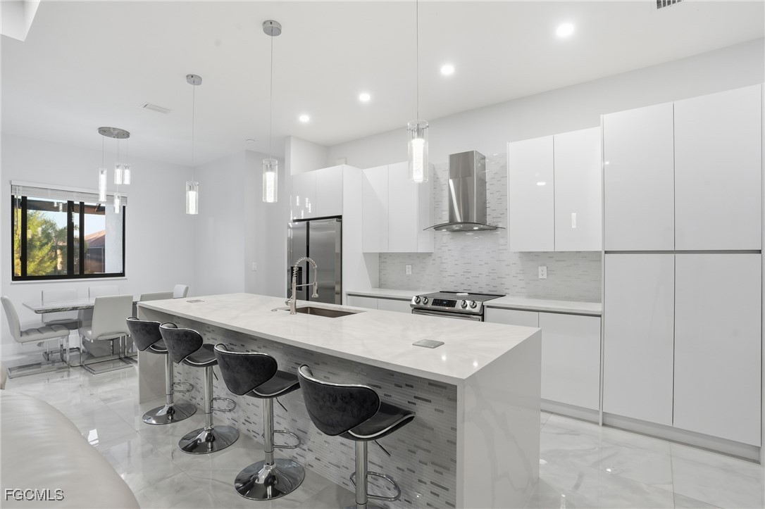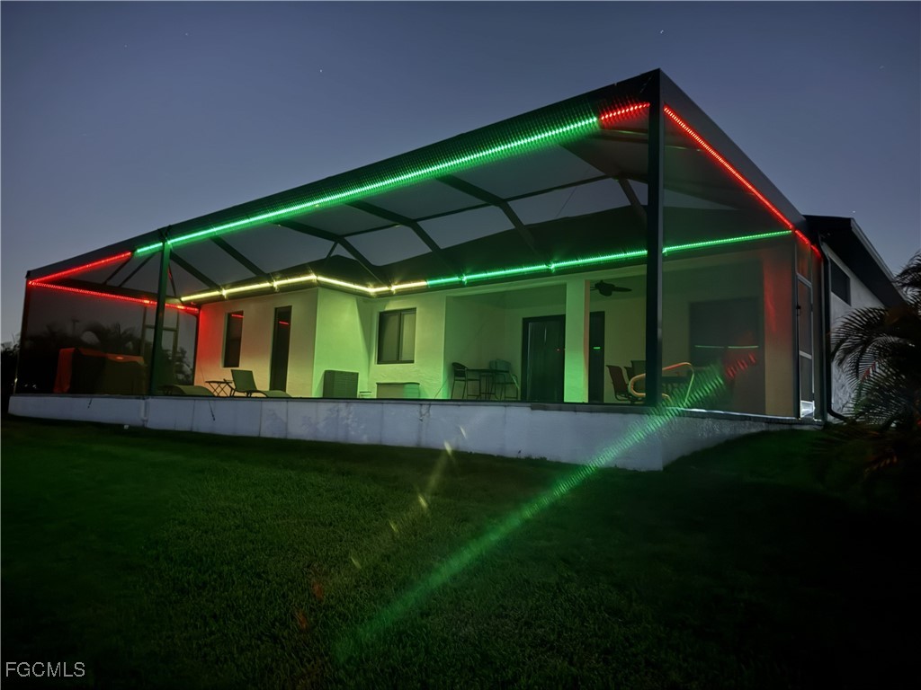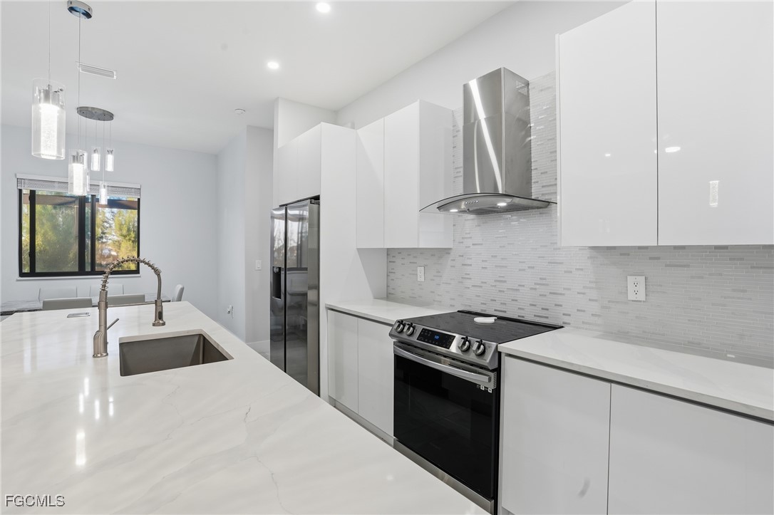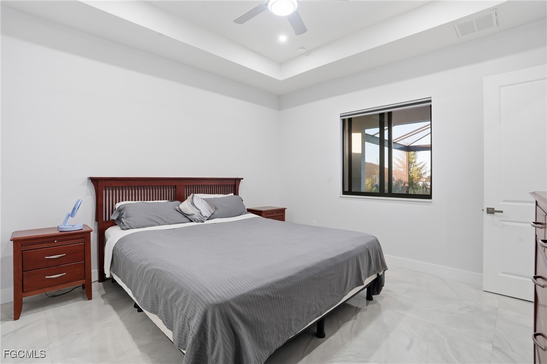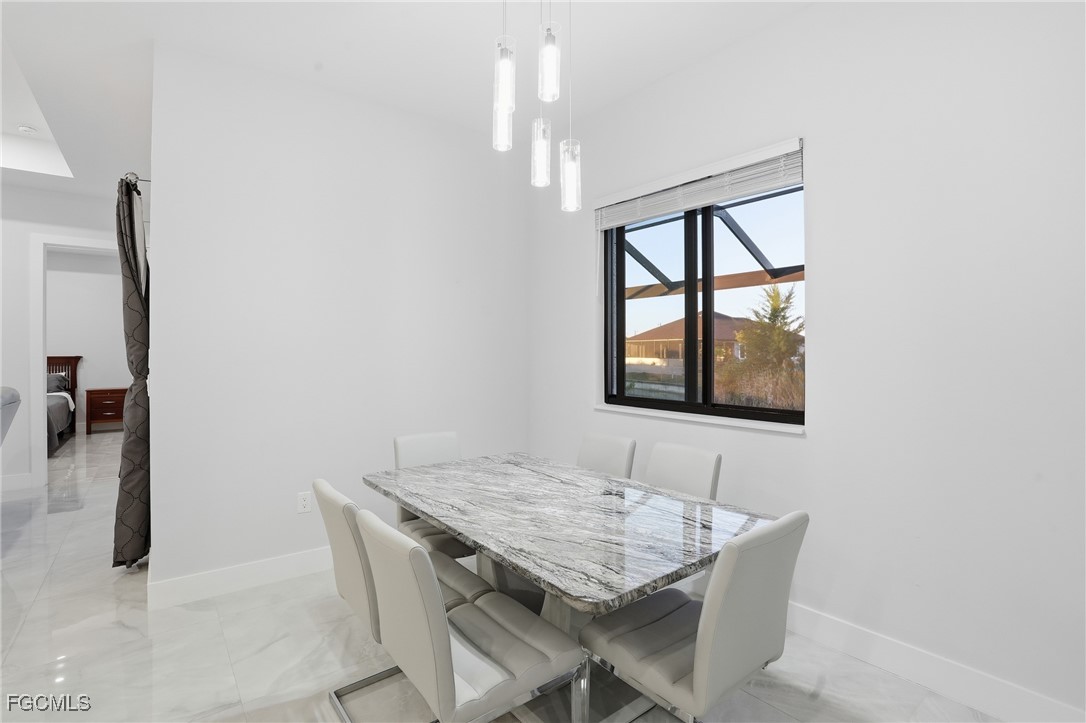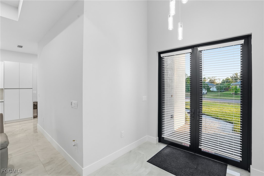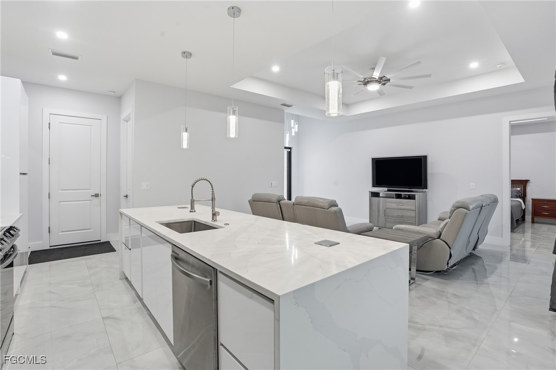 Experience modern Florida living in this stunning, light-filled waterfront pool home situated on a wide freshwater canal. With 4 bedrooms, 3 bathrooms, a seawall, and an extended screened patio overlooking the sparkling pool, this home offers exceptional value—all at an incredible price and NOT in a flood zone. Step inside to discover high-end finishes throughout, including 8 ft doors, impact windows, and luxurious 32x32 porcelain tile flooring. The chef-inspired kitchen is truly the heart of the home, featuring sleek acrylic cabinetry, a dramatic waterfall quartz island, quartz counters, custom tile backsplash, modern vent hood, and premium appliances. All three bathrooms are beautifully appointed with quartz counters, frameless glass doors, and sophisticated tilework. Even the window sills are quartz—no detail was overlooked. The outdoor living area is an entertainer’s dream. Enjoy an oversized screened pool and cage with elegant picture-frame panoramic no seeum screens, a spacious lounge area, color-changing lighting, and an outdoor bar with drink cooler and serving station. The pool features a heater/chiller perfect for those FL summers, a full-width bench seat perfect for relaxing and socializing. Home is prepped and ready with electrical for generator. The freshwater canal with seawall offers wide-water views from every angle. Located on a quiet street with mostly newer homes and minimal traffic, this home puts convenience at your fingertips. Publix, the new Aldi, Lowe’s, Target, Walmart, plethora of restaurants to choose from are all just minutes away. A fantastic neighborhood park—complete with pickleball, tennis, a fenced playground, a kids’ zipline, and walking trails—is less than a mile away. Plus, you’re only a short drive to downtown Fort Myers, where restaurants, entertainment, and riverfront charm await. This is the whole package—style, location, upgrades, and value. It doesn’t get better than this!