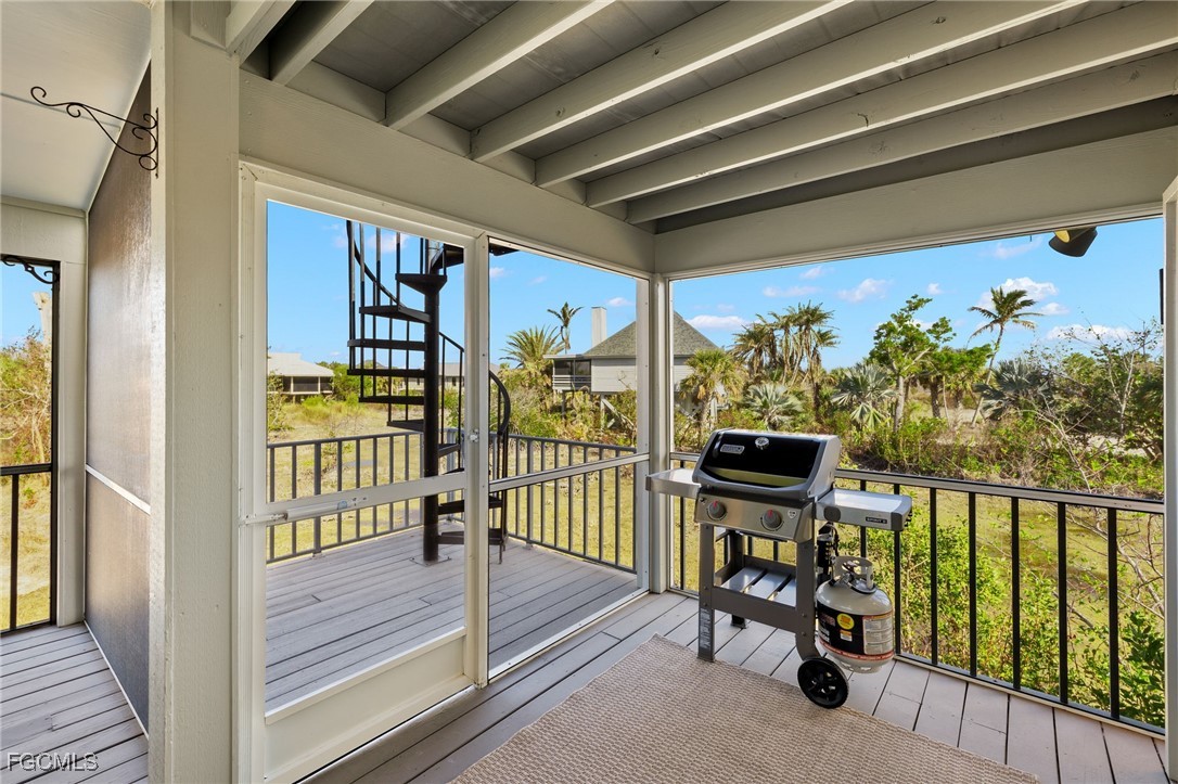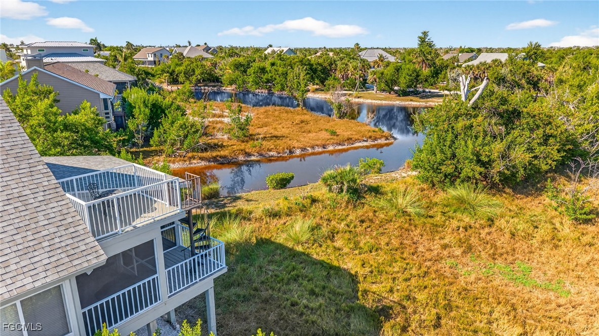 This raised 3-bedroom, 2-bath lake-view home in the popular Gulf Pines neighborhood offers the perfect blend of comfort and island charm. Fully furnished and move-in ready, the home welcomes you with high ceilings and a spacious living room that flows seamlessly to multiple porches, including screened spaces ideal for relaxing or entertaining while enjoying Sanibel's lush natural surroundings. One porch features a cozy swing, adding a touch of nostalgia. The layout is designed for privacy and convenience, with two guest bedrooms located on the first floor along with a beautifully remodeled guest bathroom featuring high-end finishes. The private second-floor primary suite is light and airy, complete with its own balcony for serene moments. Tennis enthusiasts and swimmers will appreciate the nearby neighborhood amenities, including tennis courts, a pool, and a clubhouse. A short stroll down the private deeded beach path located in the backyard leads to pristine shores, perfect for world-class shelling and breathtaking sunsets. Additional features include an elevator, a spacious garage, numerous mechanical upgrades, and a 2020 roof. Cap off your day by watching the sunset from the rooftop deck.