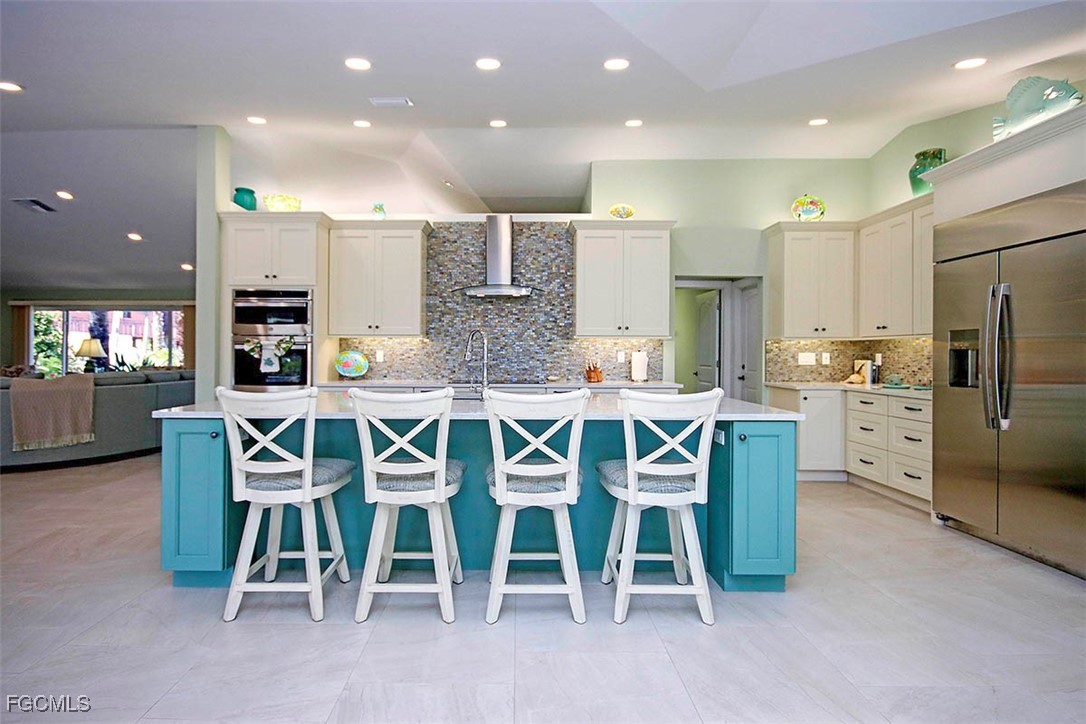 Your private tropical boating & beach retreat awaits. Experience the ultimate in coastal living with this beautifully remodeled residence, ideally situated on a wide waterway with intersecting canals and surrounded by lush, native landscaping. Designed for modern comfort and effortless entertaining, this stunning home features an open-concept living area with vaulted ceilings and abundant natural light. The gourmet kitchen is a true showpiece, showcasing quartz countertops, high-end appliances, induction stove, a spacious center island, a shimmering mosaic backsplash, and LED lighting above and below the custom cabinetry. Elegant light tile flooring flows seamlessly throughout the home, complementing the thoughtful floor plan that includes a private guest wing with two ensuite bedrooms. Totally remodeled, recent upgrades include a new standing seam metal roof, replacement of all cast iron drainage lines with PVC, a new HVAC system, impact-rated windows and doors, and a hurricane-rated garage door—offering both comfort and peace of mind.