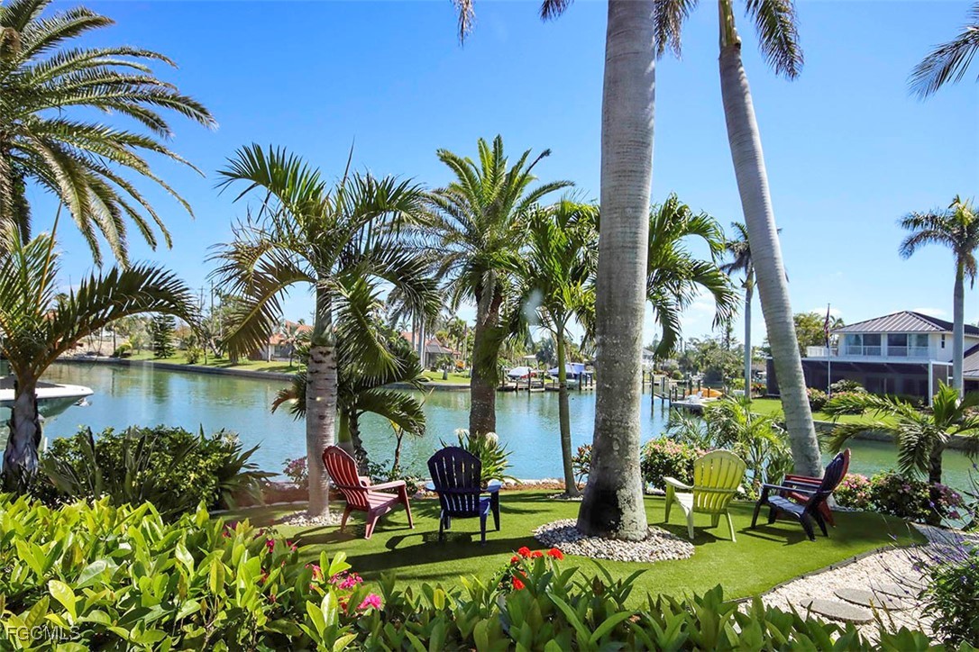 Outdoors, enjoy resort-style living with a custom-designed pool and spa and framed by tropical landscaping designed by Bob Walsh and overlooking a scenic intersecting canal basin.