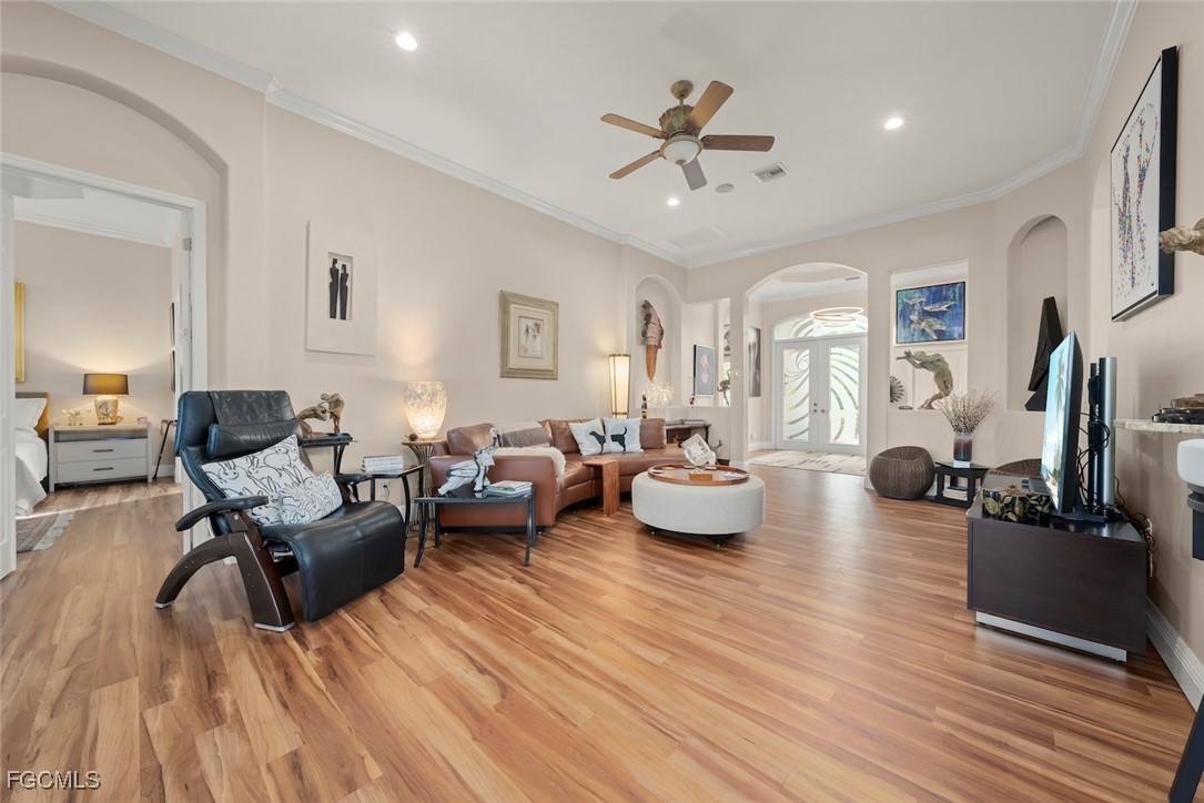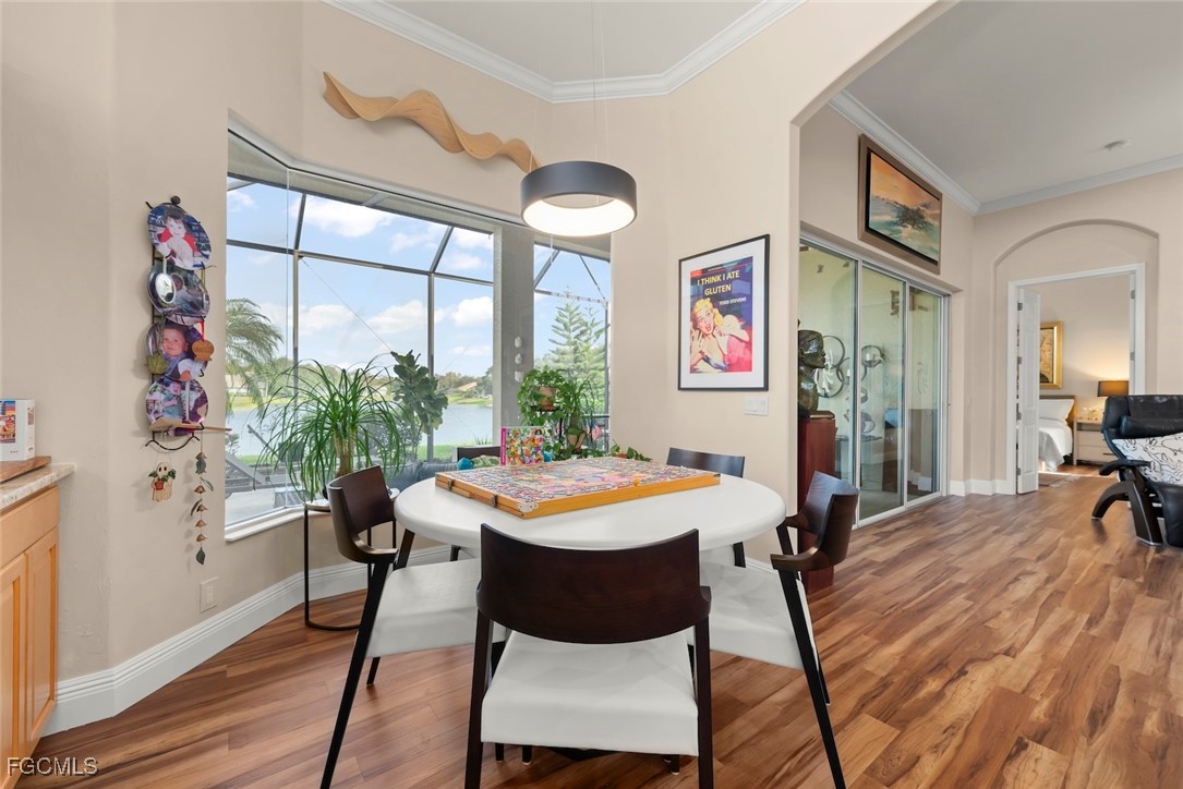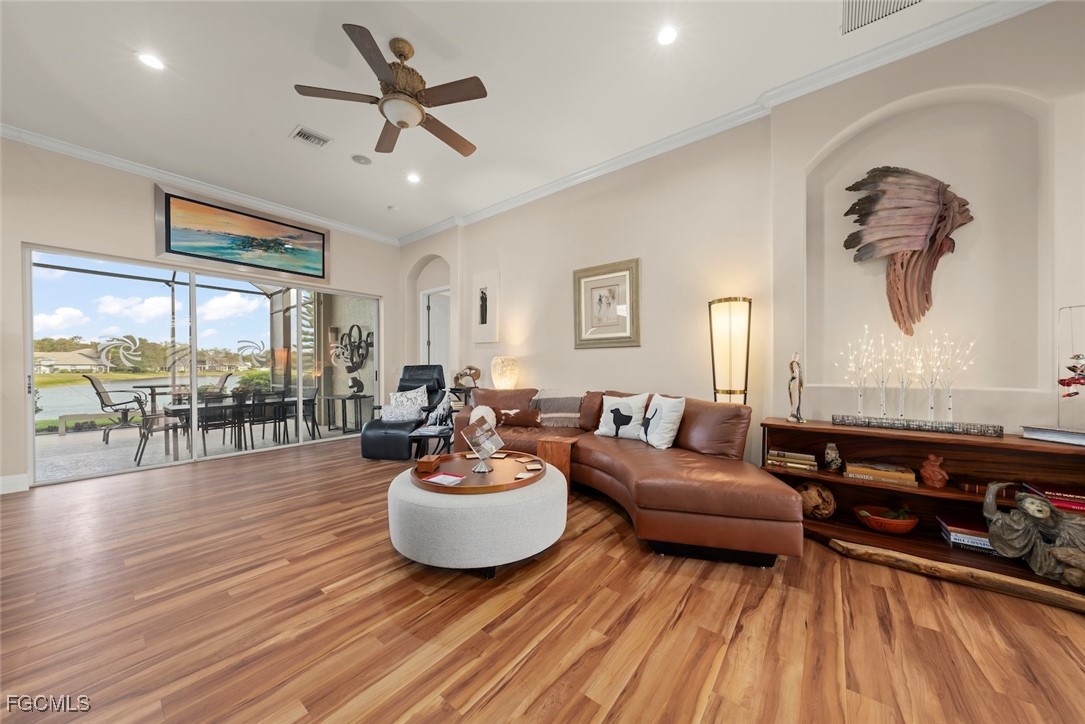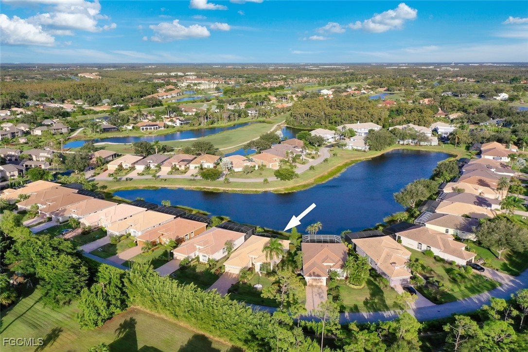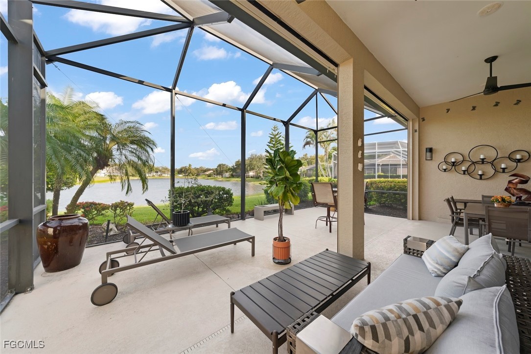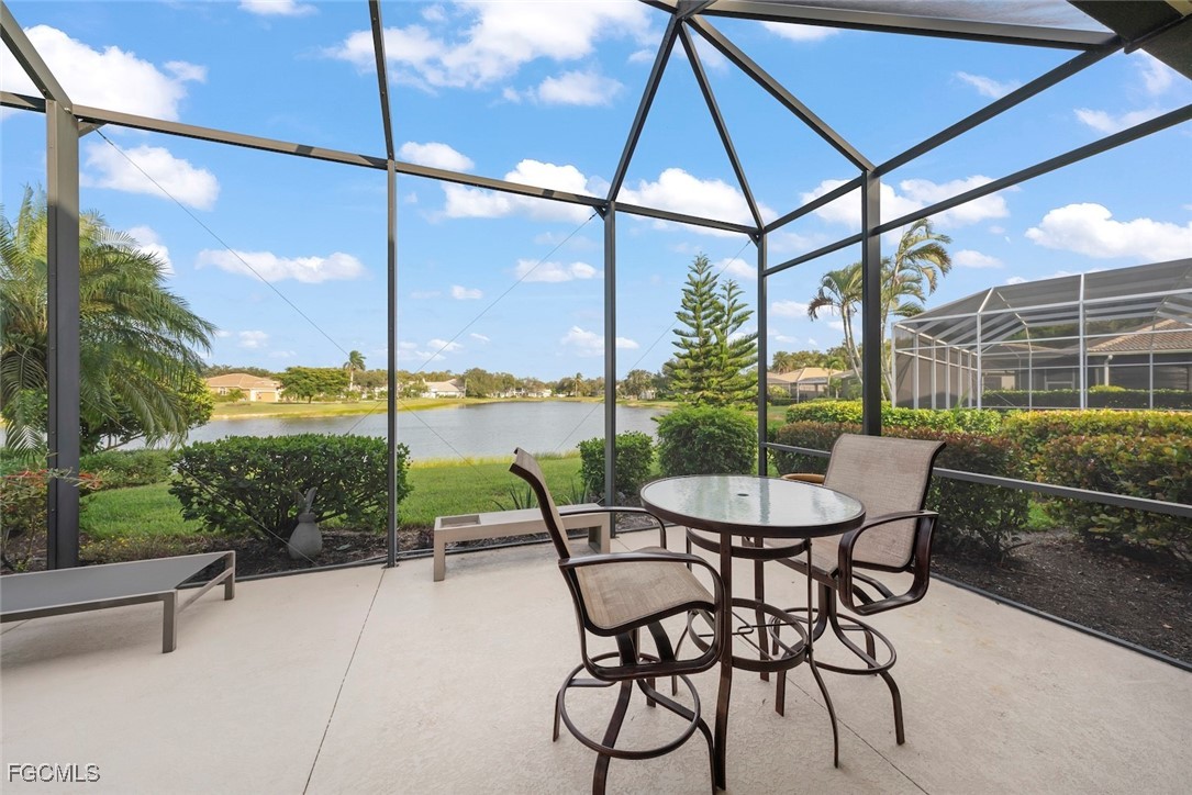 Welcome to this inviting 3-bedroom plus den, 2-bath home located in the prestigious Fiddlesticks Country Club. Designed for both comfort and style, this residence features wood-like flooring and an open, bright layout that enhances natural light and spaciousness. The kitchen is well-appointed with stainless steel appliances and a wine cooler, offering modern convenience and an elevated touch for entertaining. The versatile den provides an ideal space for a home office, media room, or additional guest area. The main living areas open to a spacious patio with tranquil lake views and desirable northeastern exposure, ideal for enjoying morning sun and comfortable afternoons outdoors. Enjoy the world-class amenities of Fiddlesticks Country Club, including championship golf, dining, fitness, and a vibrant social atmosphere. MANDATORY EQUITY MEMBERSHIP FEE OF $115,000 DUE AT CLOSING. ADDITIONAL MONTHLY FEES APPLY.