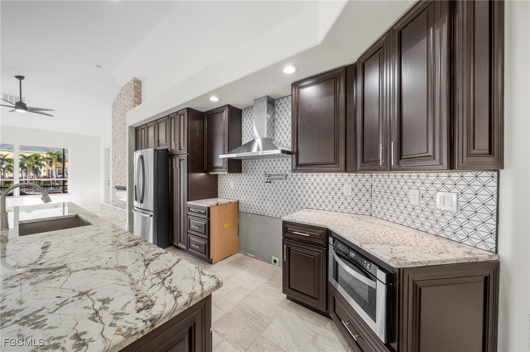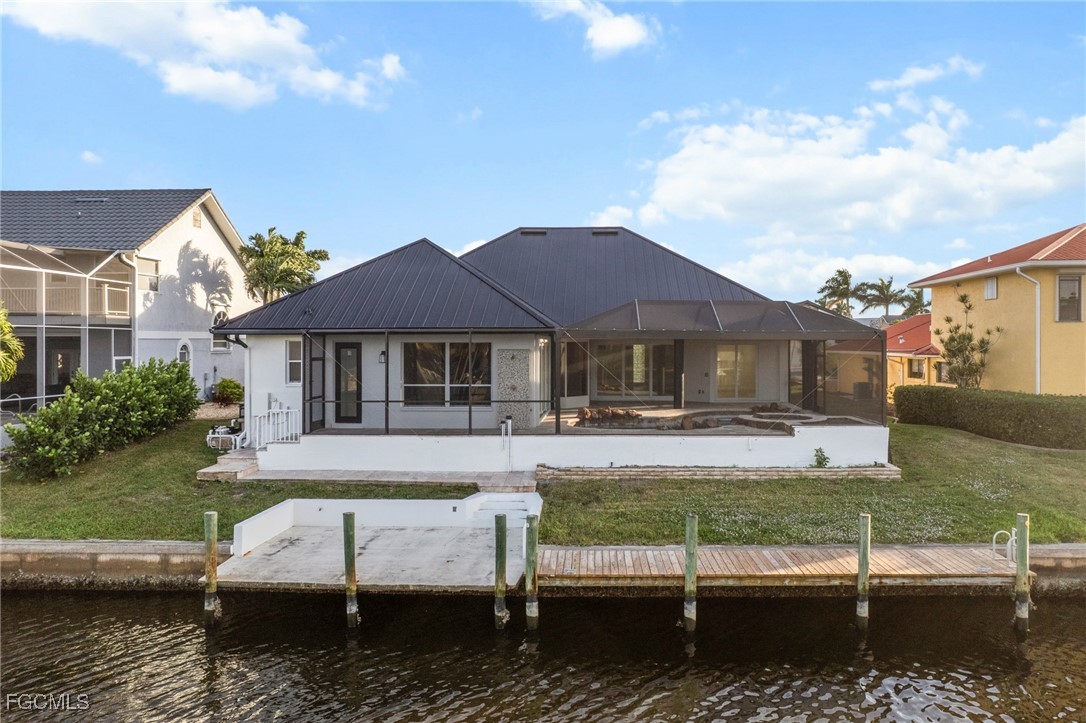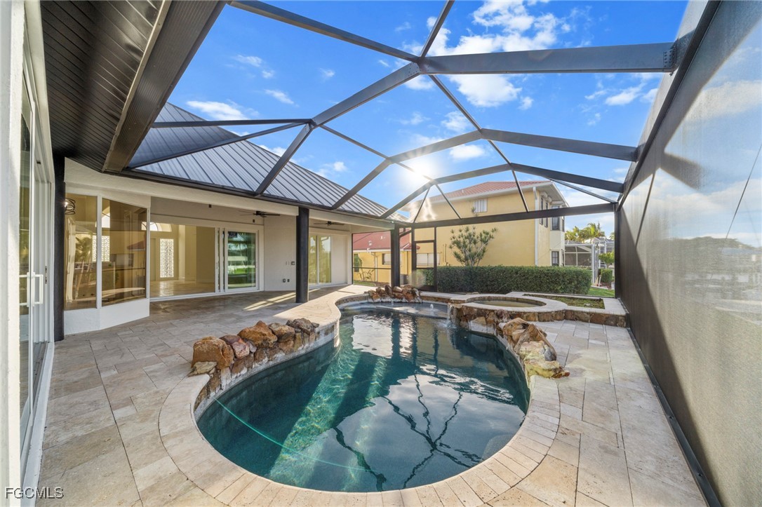 Stunning Full Home Remodel located on an EXTRA WIDE and DEEP WATER Direct Gulf Access Canal in the prestigious Tarpon Point area of SW Cape Coral’s renowned Unit 64, one of Florida’s most desirable boating neighborhoods. Virtually a New Home, completely remodeled in 2025 inside and out, this 2,704 SF residence with over 4,556 total area features 3 bedrooms, 2 bathrooms, and an oversized 2-plus-car garage with additional space for a golf cart, motorcycle, or workshop. Renovations completed in 2025 include a new metal roof, new exterior and interior paint, new pool screen enclosure and super gutters (Oct 2025), and a fully renovated kitchen, bathrooms, trim, and lighting throughout. Step inside to soaring ceilings, travertine flooring, and breathtaking views of the water. The open living space includes an elegant feature wall with an electric fireplace, creating a warm space for entertaining or relaxing. A custom wet bar with stacked stone and an underlit countertop is a showstopping entertainment space for guests and visitors. The chef’s kitchen is the heart of the home, showcasing custom cabinetry, high-end countertops, and luxury appliances, and is open to the living areas. The primary suite opens to the pool and water, offering a spa-inspired bath with a walk-in shower, dual vanities, a designer soaking tub, and underlit countertops for a resort-like experience. The guest bedrooms are privately situated at the opposite end of the house, each designed for comfort and style. Step outdoors into your private tropical oasis, complete with a resort-style pool, rock waterfall spa, and expansive under-truss lanai ideal for outdoor dining and sunset lounging. Enjoy serene water views, gentle Gulf breezes, and the parade of boats navigating the Gloria Canal. Positioned on an extra-wide and deep Gulf access canal, this property offers no bridges, no locks, and quick open water access to the Caloosahatchee River, Sanibel Island, and the Gulf of Mexico. Located on a quiet cul-de-sac, this home provides a rare blend of privacy and proximity, just minutes from Tarpon Point Marina, The Westin Resort, and Cape Harbour, offering premier waterfront dining, boutique shopping, and entertainment at Gather, Rumrunners, Marker 92, Fathoms, Oyster Bar, and The French Press. Nearby are the revitalized Yacht Club Beach and Marina, Bimini Square, The Cove, and Slipaway Marina, plus golf at Palmetto Pines and Coral Oaks. Whether as a full-time residence, seasonal retreat, or luxury vacation rental investment, this home delivers direct Gulf access, deep water canal frontage, modern finishes, a new roof, pool and spa, and an unbeatable location surrounded by Cape Coral’s best waterfront developments. This is more than a remodel; it is a complete transformation designed for those who value modern luxury, effortless boating access, and the best of Southwest Florida coastal living.