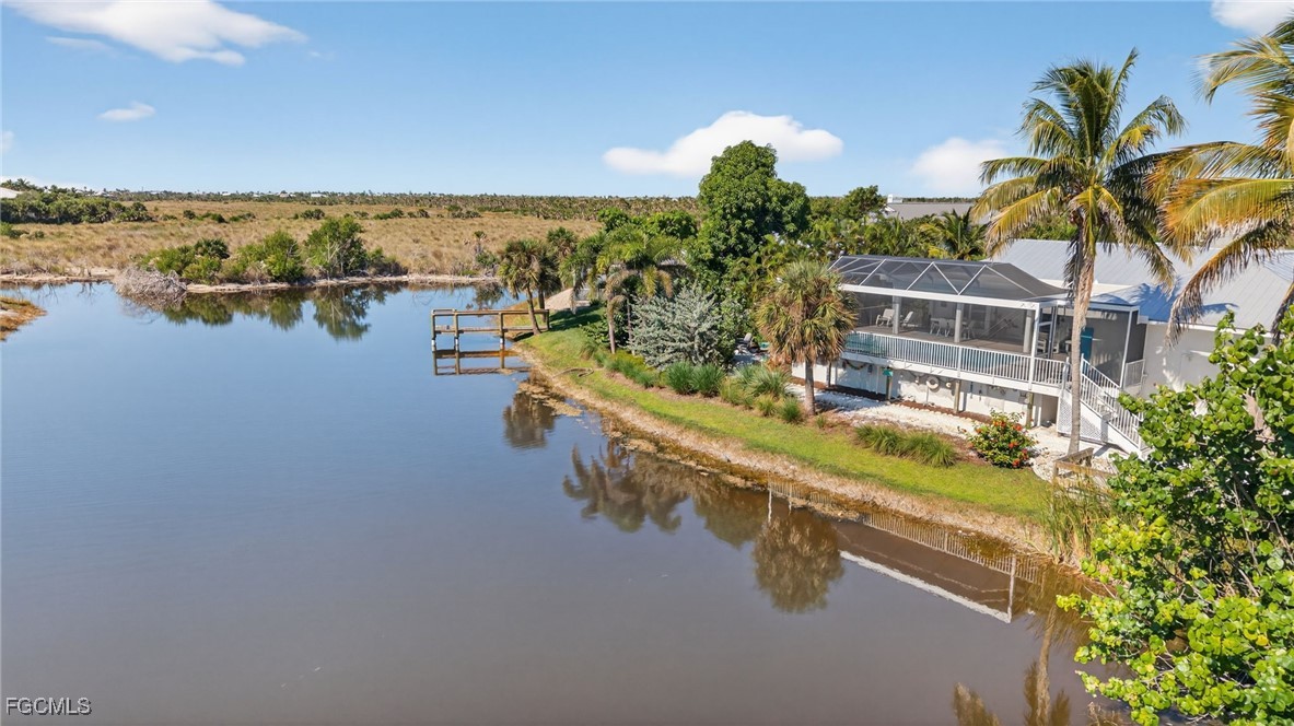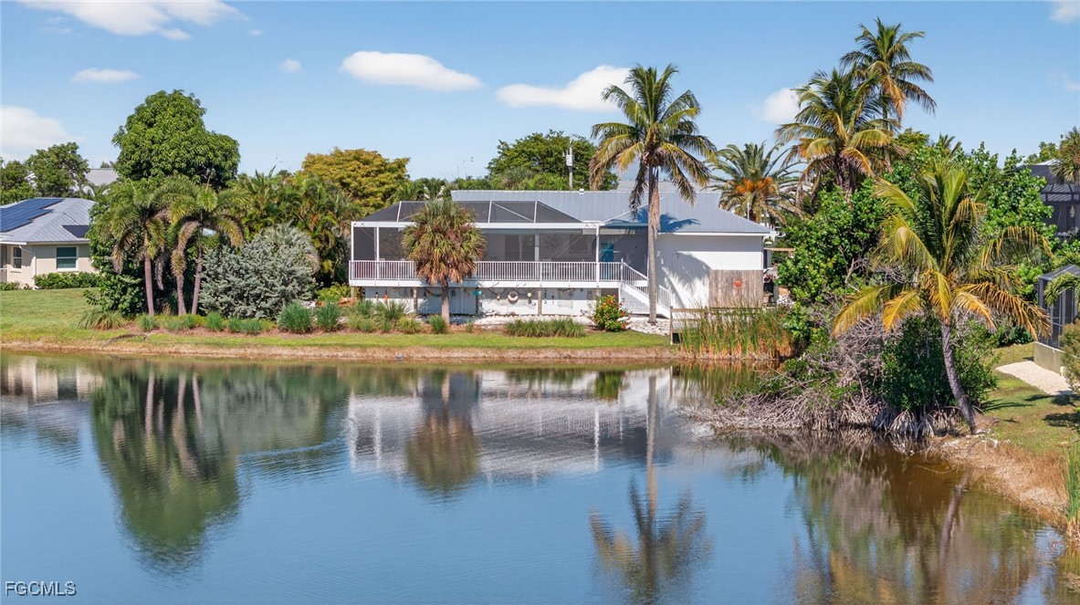 NO FLOODING FROM ANY STORM! ELEVATED, BEAUTIFULLY RENOVATED HOME THAT LIVES LIKE A GROUND LEVEL. The gorgeous elevated screened lanai extends the living area for seamless indoor, outdoor living. Panoramic screen panels to the south and west ensure that the gorgeous lake and sunset views are unobstructed. This is the amazing Florida lifestyle you've been looking to find: a serene, lakefront home on a quiet cul-de-sac only 1/2 mile from the beach. The home was completely renovated in 2021 and has been meticulously maintained. It is immaculate and ready to be your new beach home! New in 2021 was the metal roof, all impact windows and doors, electrical, plumbing, generator, HVAC, bathrooms, kitchen, flooring, solid core interior doors, raised ceilings, pool deck, heat-resistant composite deck surface, and equipment, and much more! It is essentially a new home! Thoughtfully and beautifully furnished, it is being offered "turnkey". Move right in! Native vegetation, meandering shell paths, a fire pit area, deck, and outdoor shower make the property a true tropical oasis. The high elevation and structural upgrades make insurance costs extremely low: flood $1516 (assumable), wind $4540, and homeowners $1651. A perfect Sanibel home!