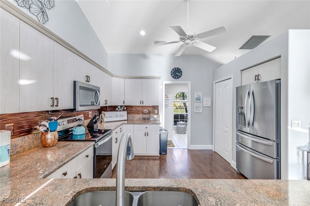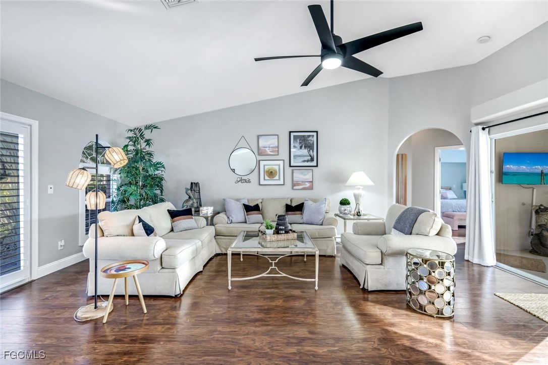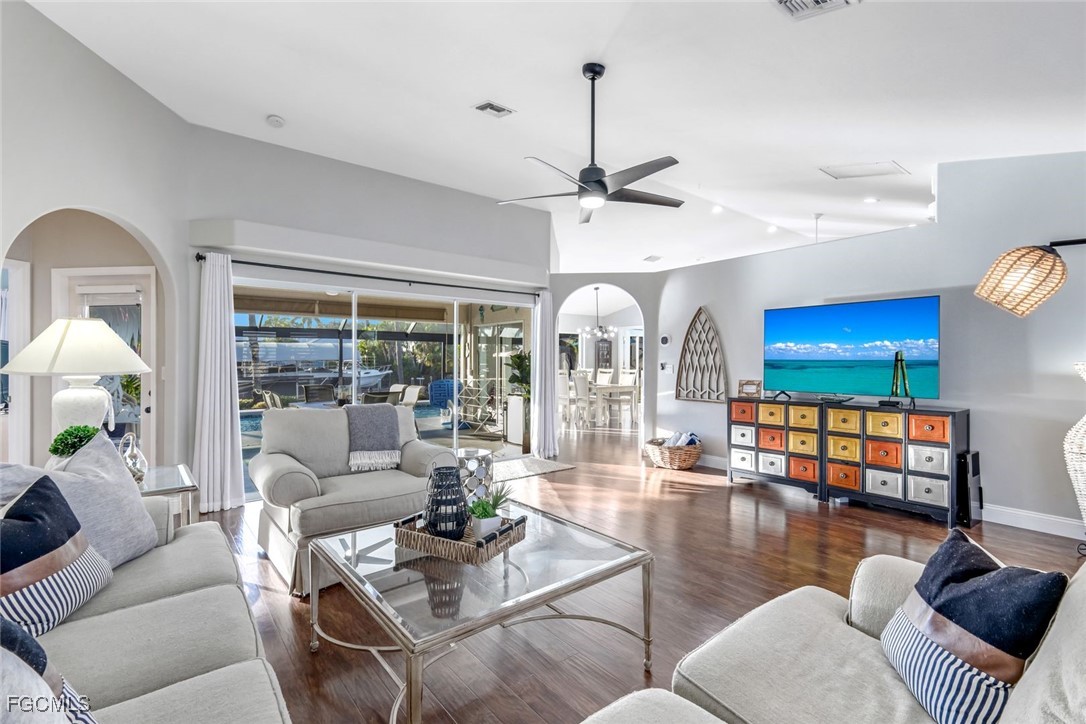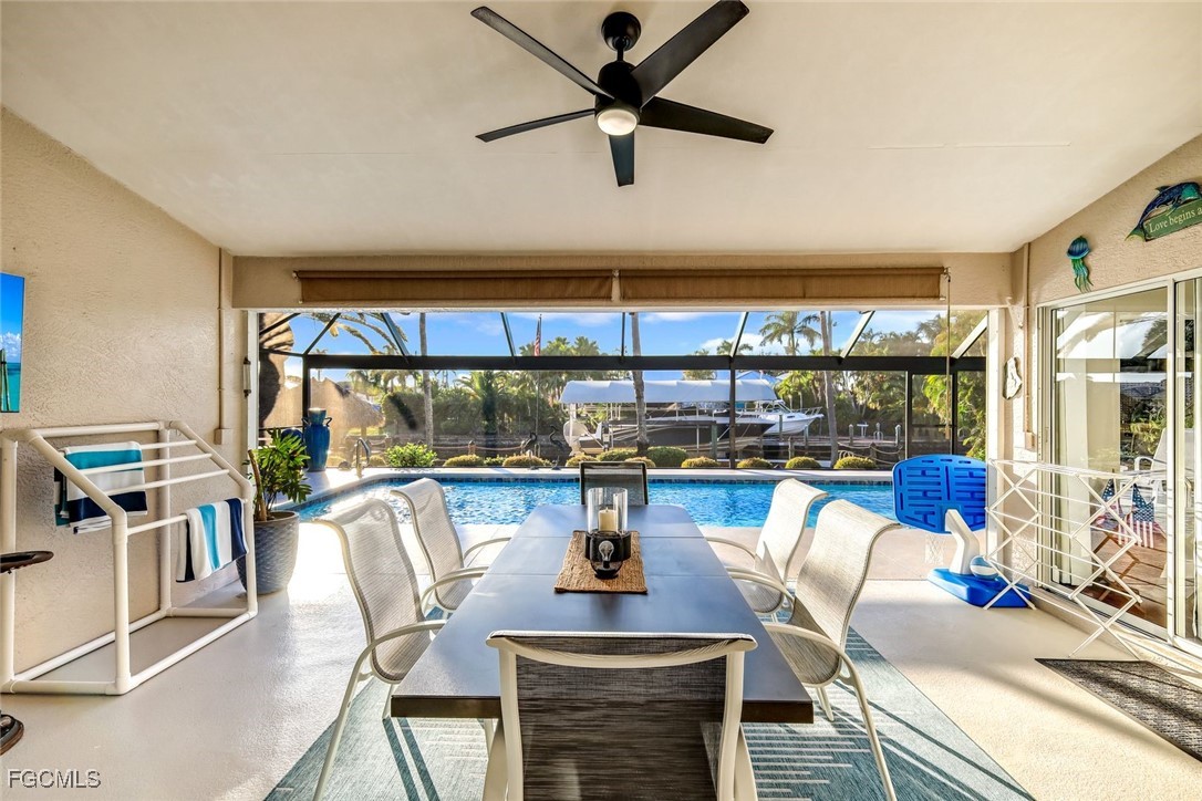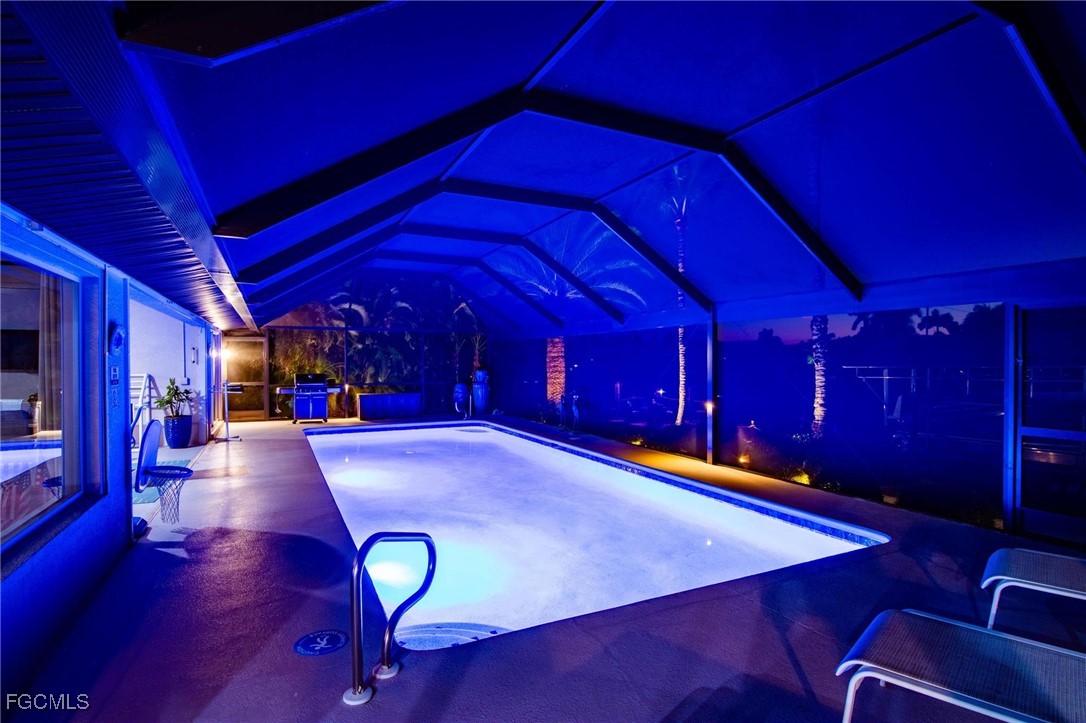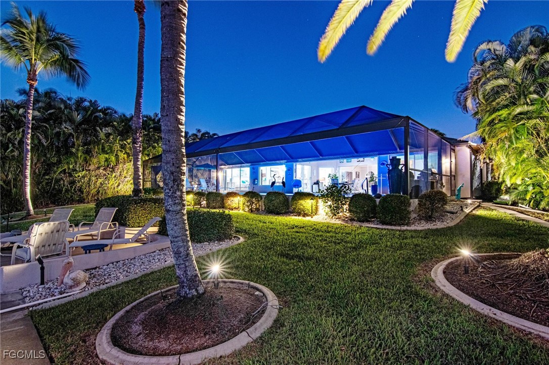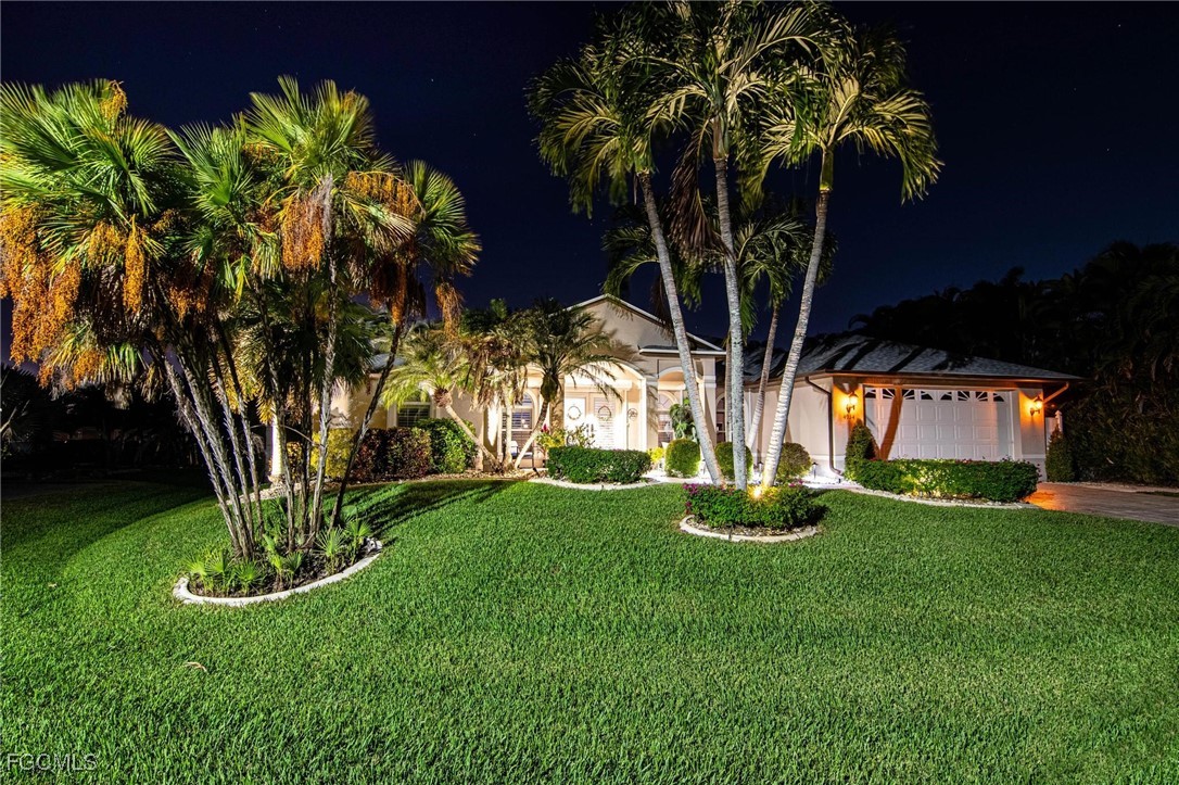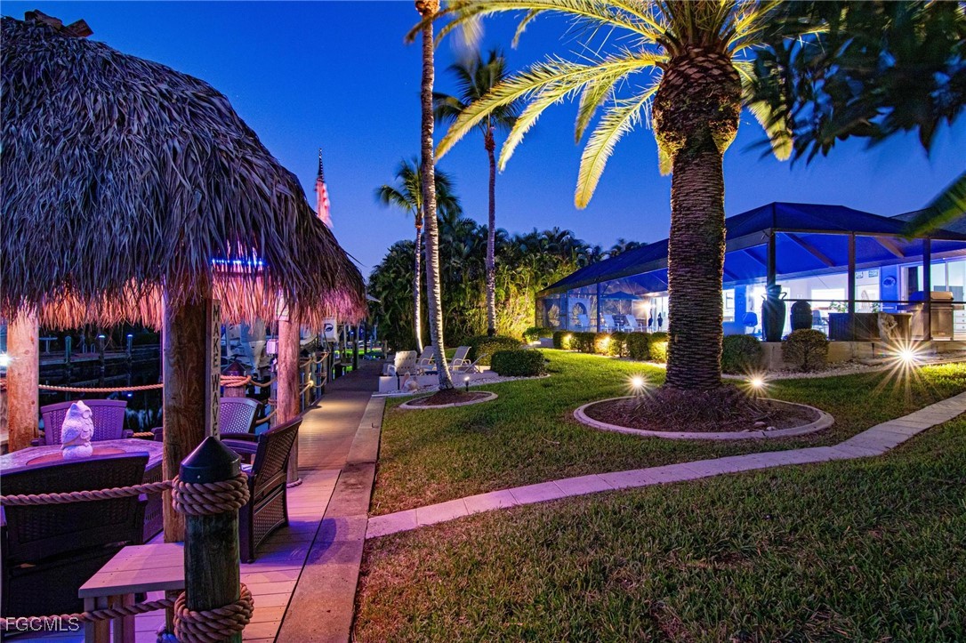 This home is in one of Cape Coral's most desirable boating neighborhoods, and is near the end of a cul de sac, only a few blocks off the river. Located within 5 minutes to open water by boat, there are no bridges to worry about, and the owners recently installed a new over water tiki hut, boat lift, and dock with a full captains walk. This beautifully maintained home has never had any water intrusion/flooding from hurricanes. The sellers have added several updates to the home in the last few years such as a new roof, resurfaced pool, new pool lights and controls, new exterior, and interior lighting, a panoramic screened lanai cage, and much more that you will not want to miss. This home would make a perfect primary, secondary, or investment property, as it is offered fully furnished. All you need to do is bring your boat and toothbrush. Schedule your tour today, and ask your Realtor for a full list of recent updates to the property!