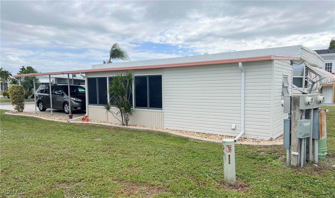 Spacious 2 bedroom, 2 bath home in the Thunderbird, a 55+ manufactured community located off San Carlos Blvd, close to FMB and Sanibel Island. Beautiful and affordable SW Florida winter retreat with low HOA fees close to everything fun in the sun! Don't miss your opportunity to purchase a well taken care of remodeled home in this close knit community. New membrane roof over in 2020, enclosed front porch in 2017, new windows and doors in 2016. Kitchen and bathrooms have all new cabinets, new appliances, new HVAC, shower enclosures and flooring throughout in 2023. All reasonable offers considered.