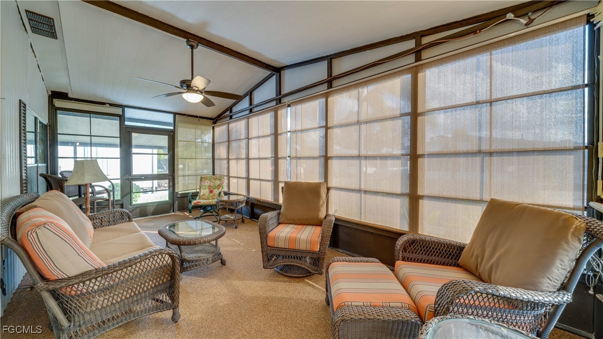 Welcome to effortless SW Florida living in this turnkey, 2-bedroom, 2-bath manufactured home located in the desirable 55+ community of Horizon Village in North Fort Myers. With 1,144 SF of interior living space, plus two exceptional outdoor areas, this home offers comfort, style and is an unbeatable value. Step into the warm and inviting enclosed front lanai (210 sq. ft.), a serene retreat featuring river rock flooring, lots of windows, window shades, and charming tropical wicker furnishings - perfect for morning coffee or evening relaxation. An additional 296 SF open-air, screened lanai expands your outdoor living options, ideal for entertaining or enjoying Florida’s sunshine. Inside, you’ll appreciate the recent interior paint, new(er) LVT flooring in all non-carpeted areas, and a renovated kitchen, complete with a reverse osmosis system, thoughtfully positioned just steps from both the dining room and great room. The home features a TPO Membrane Roof, a new AC (2024), an indoor laundry with a newer washer and dryer, and the plumbing has already been re-piped for peace of mind. The driveway was resurfaced in 2022, adding to the home’s curb appeal and longevity. This property is being sold fully furnished and is priced to sell. Horizon Village offers streetlights, sidewalks, and a wide array of amenities, creating a friendly, walkable, and active lifestyle. Conveniently located between Fort Myers and Punta Gorda, you’ll enjoy quick access to beaches, restaurants, golf courses, boating, shopping, and everything Southwest Florida has to offer. Whether you’re seeking a "seasonal escape" or a "full-time residence", this "affordable" piece of paradise is ready to be yours. Let’s make this Southwest Florida home yours "to have and to hold".