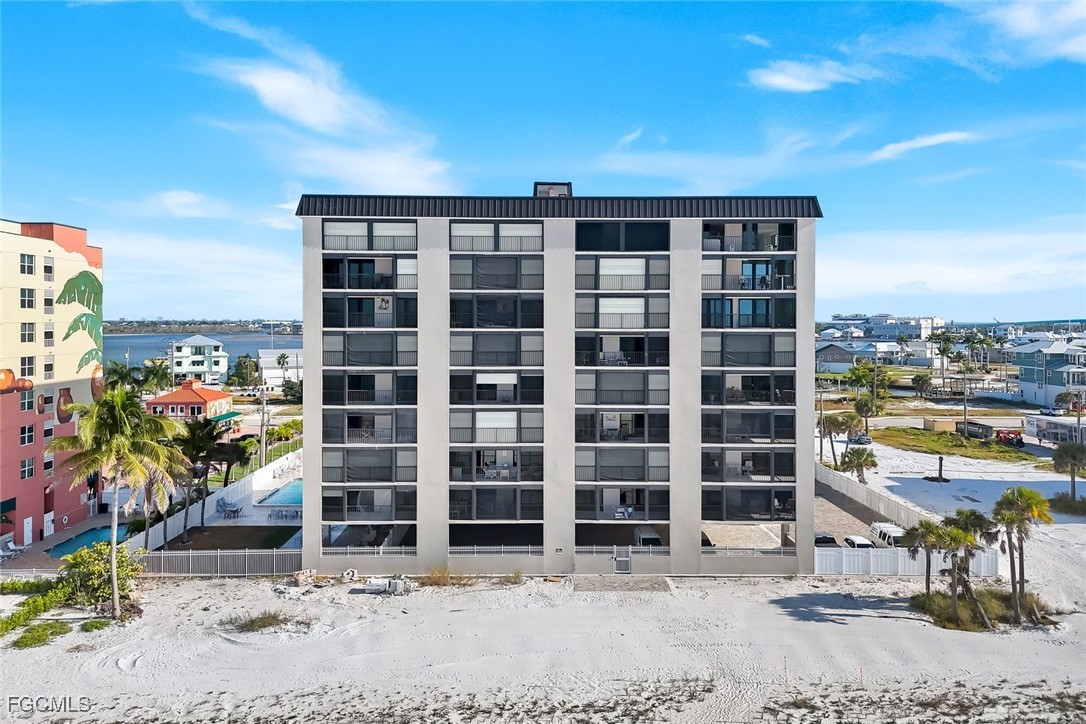 Enjoy unobstructed, direct beachfront living in this beautifully maintained residence at Dolphin Watch Condominiums on Fort Myers Beach. Unit 302 offers stunning Gulf views from the moment you enter and features two bedrooms, two bathrooms, and a generously sized den or flex space that can easily be converted into a third bedroom. The open kitchen is ideal for both everyday living and entertaining, complete with granite countertops, a large island, abundant quality wood cabinetry, and stainless steel appliances. Designed for comfort and peace of mind, the unit is equipped with hurricane impact windows along with roll-down shutters on the beachside of the condo. The screened patio provides a relaxing outdoor retreat, with a retractable screen panel allowing for unobstructed patio access and fresh ocean breezes whenever desired. A large detached one-car garage offers secure parking plus additional storage, along with additional parking available under the building. Dolphin Watch is a gated, fenced-in community offering enhanced security with keypad-controlled lobby access. Residents enjoy a community pool, hot tub, outdoor grilling area, paved entertaining space, grassy common area, and an outdoor shower, perfect after a day on the sand. This unit itself did not experience flooding during recent hurricanes and is ideally located within walking distance to the Fort Myers Beach Pier, popular restaurants, and local attractions. Low HOA fees add to the appeal, and all structural and reserve studies have been completed, with the community passing with flying colors. Additional Features and Updates include... NEW HVAC 2024, NEW HURRICANE RATED SLIDING DOORS AND WINDOWS 2024 INCLUDINGS FRONT ENTRY DOOR, NEW HOT WATER HEATER 2022, NEW LANAI SHUTTERS RAILINGS AND SCREENS, NEW TILE ON THE LANAI AND A NEW FIRE SAFETY SYSTEM 2025. NEW BUILDING FEATURES INCLUDE NEW ROOF AND MANSARDS, NEW ELEVATOR, ALL NEW PAINT, RAINLINGS AND TILE, NEW GENERATOR FOR GARAGES AND COMMON AREAS, ALL NEW UPDATES TO RECREATION AREA INCLUDING POOL, SPA, GRILL ETC. ADDITIONAL UPDATES CAN BE PROVIDED. This is a rare opportunity to own a true beachfront condo with space, security, and an exceptional location.