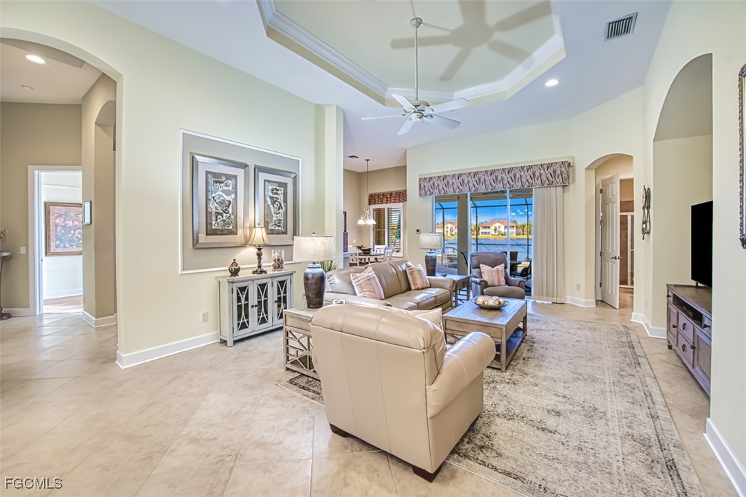Welcome to this stunning Tilbury model home, meticulously maintained by its original owner and offers 2,455 sq. ft. of living space under air. Situated on a serene lake, this home offers 3 bedrooms plus a den/office! The oversized primary bedroom suite is a luxurious retreat featuring a spacious layout, walk in closet, bathroom with relaxing Jacuzzi jetted spa and walk-in shower! Enjoy breathtaking views of the lake right from your bay window, and step out to the pool lanai for seamless indoor-outdoor living! Spacious guest suite complete with a private en suite bathroom and ample room for a king-sized bedroom set, offering comfort and privacy for guests or additional family member! This property features 3.5 bathrooms, including three full bathrooms and one half bathroom for guests. Among the full bathrooms is a convenient cabana bathroom, providing direct access to pool area. Breakfast nook, dining room, great room, and an oversized garage with epoxy finished floor and multiple well organized storage space completes this well designed floor plan makes this home stand out ! The completely renovated interior features 13-ft tray ceilings, 8-ft doors, and vinyl plank flooring complemented by 18"x18" diamond-pattern tile. The kitchen features all-new appliances, custom kitchen cabinets , and quartz countertops. Bathrooms have been updated with vanities featuring granite tops and designer fixtures. Plantation shutters throughout the home add charm and privacy. The 15'x30' heated pool with a 6' depth and a spa have been newly lined with Pebble Tech in 2020. The expansive lanai and pool deck have been updated with stylish pavers. A newly installed roof-mounted solar heating panel system along with all new pool equipment ensures year-round enjoyment of the pool and a spa while the new pool enclosure, complete with Super Screen and Florida Glass privacy screens, enhances comfort and tranquility. This home is packed with impressive upgrades. The steel Roman Barrel profile tile roof, installed in 2023, comes with a transferable 50-year warranty and also assumable flood insurance policy! Hurricane protection includes powered shutters at the front and back, along with Lexan panels for side windows. A high-efficiency Carrier 24 SEER A/C compressor installed in 2023 sits on an elevated platform for added peace of mind. This home truly lives up to its model-like appeal, don’t miss your chance to own this breathtaking lakefront property! Schedule your private showing !