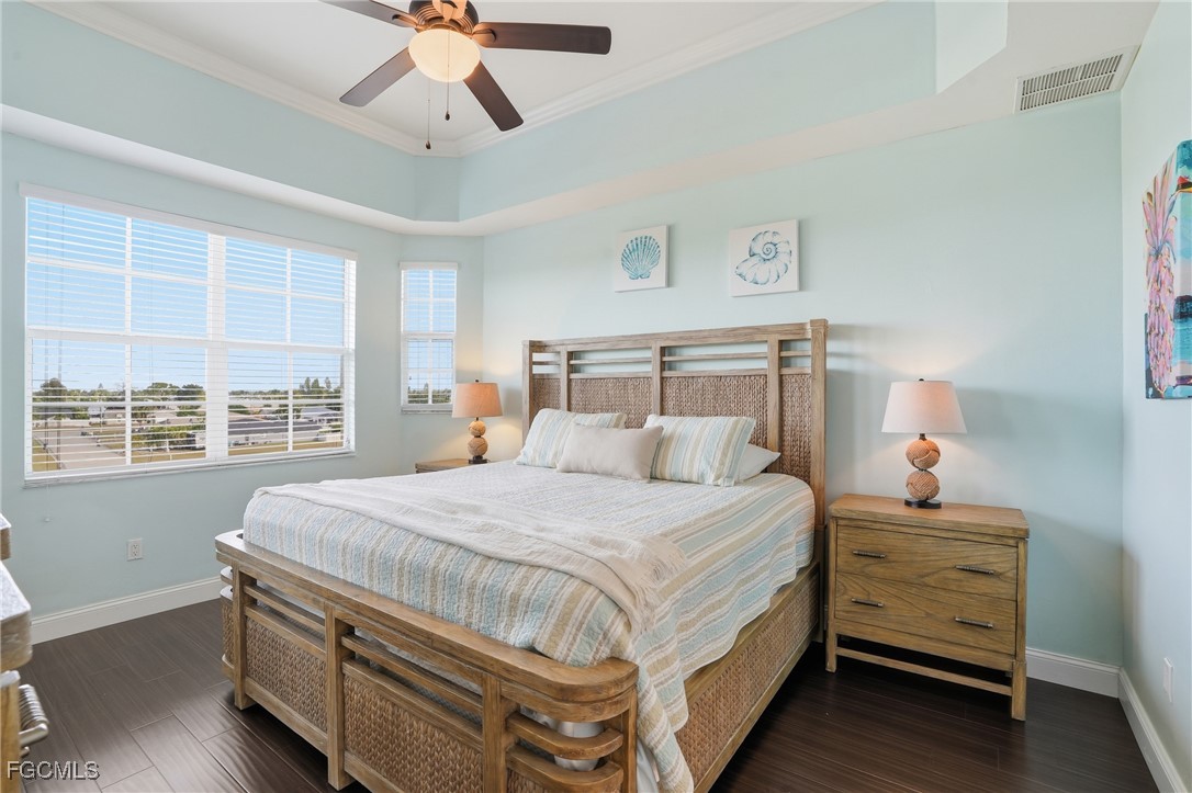 Waterfront condo with canal views and direct Gulf access with no bridges—a true boater’s dream. This 3-bedroom, 2-bath residence features an open layout with a bright kitchen, pantry, and cozy breakfast nook. Enjoy 9-foot ceilings throughout with added height in the tray ceilings, creating an airy, elevated feel.