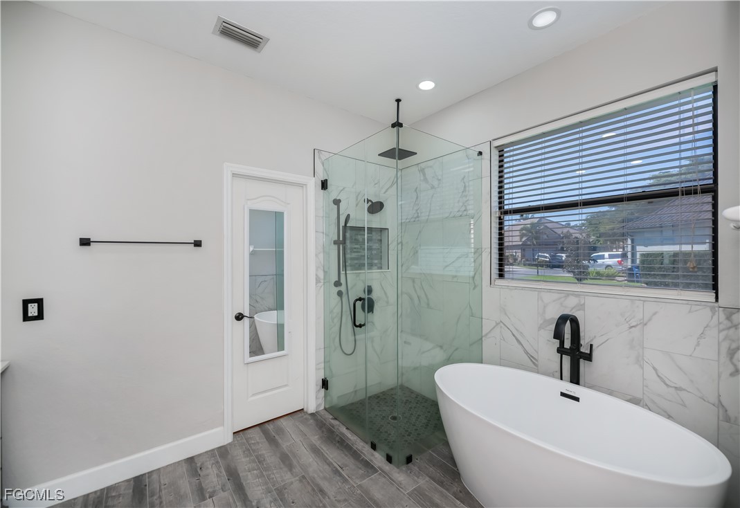 The recently remodeled kitchen features quartz countertops, custom cabinetry, stainless steel appliances, an extended island, and breakfast bar perfect for hosing casual dining or morning coffee. The spacious primary suite is a true retreat, complete with a luxuriously updated bath showcasing quartz counters, custom cabinetry, a separate soaking tub, and a glass-enclosed shower.