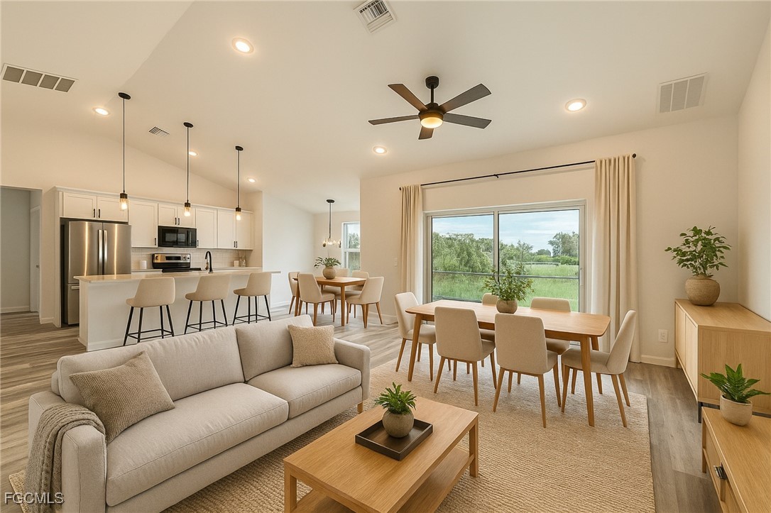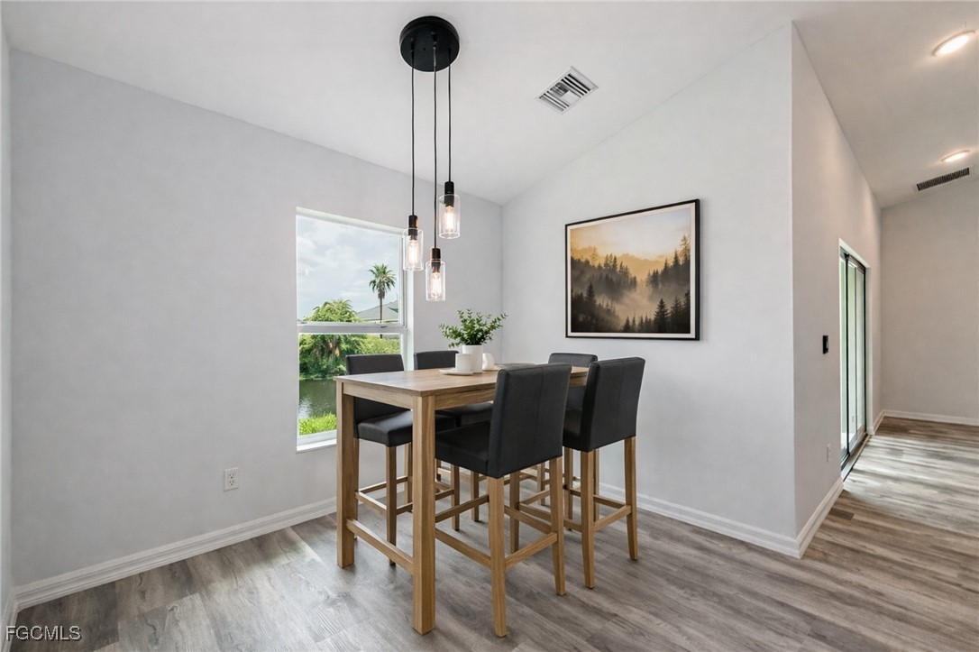 Step inside to discover luxury vinyl plank flooring throughout, offering the perfect blend of style, durability, and easy maintenance. Vaulted ceilings, expansive windows, and a large sliding glass door fill the home with natural light, creating a bright, open, and inviting atmosphere.