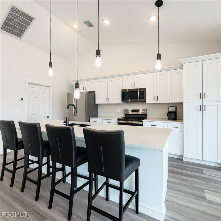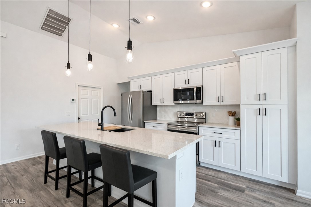 The spacious open-concept kitchen is ideal for both everyday living and entertaining. It features stainless steel appliances, abundant cabinetry, a pantry, and sleek countertops. Gather with family and friends at the breakfast bar while you prepare home-cooked meals and create lasting memories.