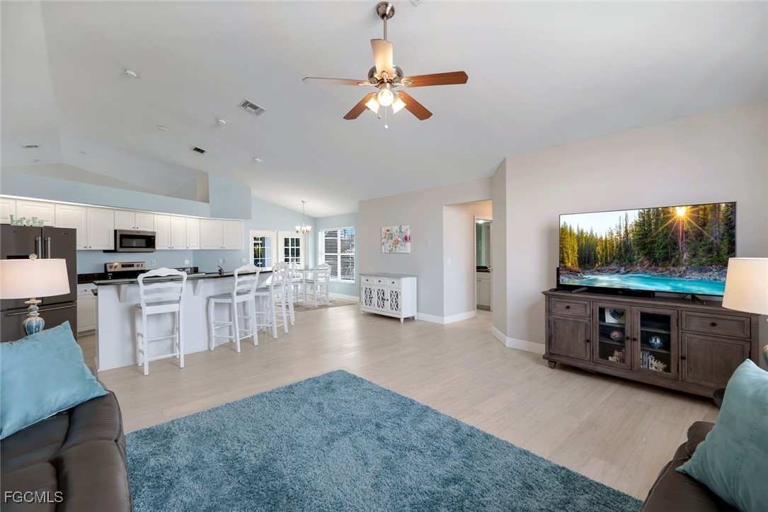 Perfectly positioned on a desirable Gulf access canal in NW Cape Coral, this home offers the boating lifestyle you’ve dreamed of—only one bridge to navigate and just a quick ride to Matlacha Pass and open water. Spend your days cruising the Gulf or simply savoring the waterfront views from nearly every living space. The open kitchen overlooks the family room, creating a warm, connected gathering space with views to the pool and sparkling canal beyond.