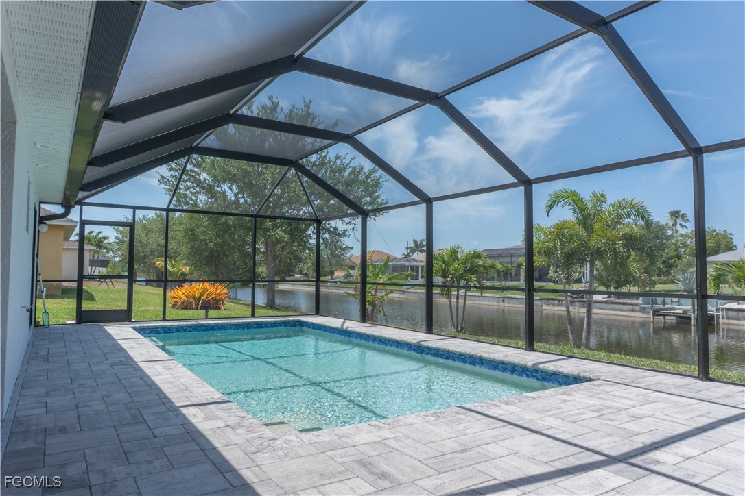 Custom Canal Home with Electric Heated Pool, Stunning Western Exposure and being offered Turnkey! This modern, beautifully designed home offers 3 bedrooms, 2 bathrooms, and a spacious 3-car garage. The interior features elegant tile flooring throughout, complementing the soaring high ceilings for an open and airy feel. The kitchen is a contemporary showstopper, perfect for entertaining, with a large island that becomes the centerpiece of gatherings. It comes fully equipped with high-grade appliances. Step outside to a completely pavered pool area, featuring a gorgeous electric heated swimming pool where you can enjoy breathtaking Florida sunsets thanks to the west-facing exposure. Located in SW Cape Coral, this home is just minutes from popular restaurants, shopping, Cape Harbor, Tarpon Point Marina, and more! Plus, it boasts a new seawall with a new metal roof adding to the property's appeal and waterfront lifestyle.