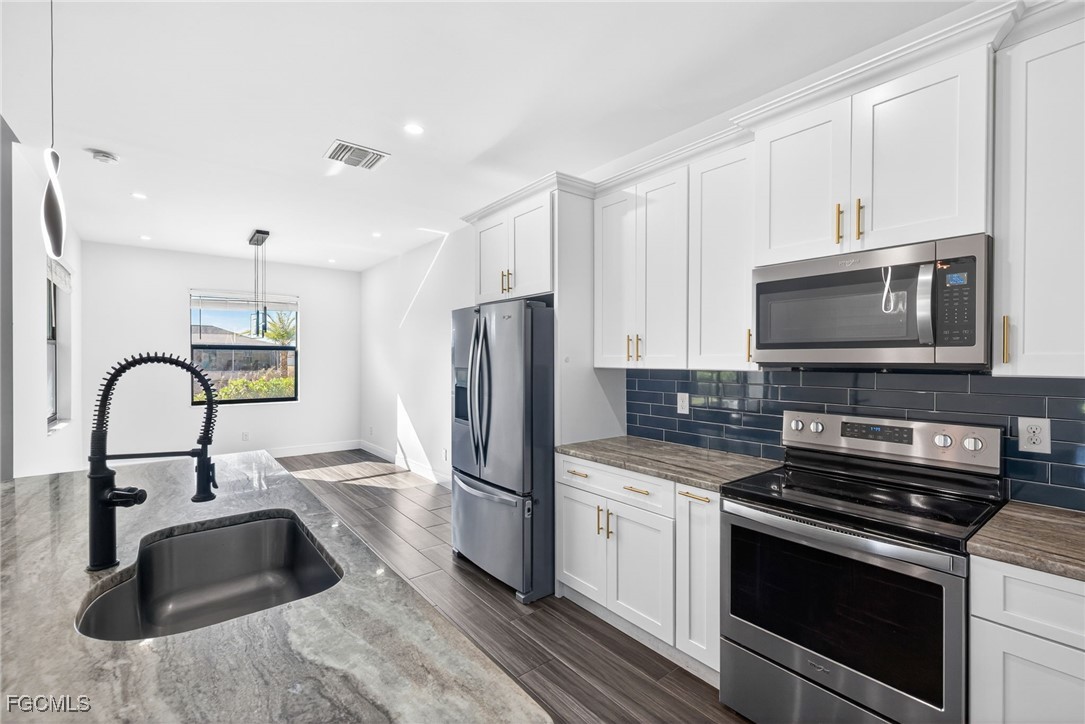 The kitchen and bathrooms are finished with BEAUTIFUL GRANITE COUNTERTOPS, and the kitchen is highlighted by a LARGE GRAY EAT IN ISLAND WITH CABINET STORAGE. The SPACIOUS PRIMARY SUITE offers a TRAY CEILING, HIS AND HERS WALK IN CLOSETS, and a luxurious bathroom featuring a FREESTANDING SOAKING TUB.