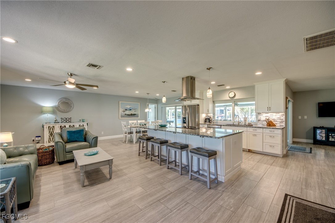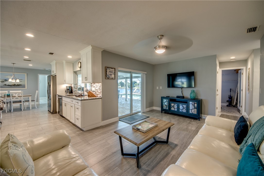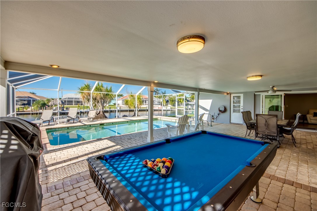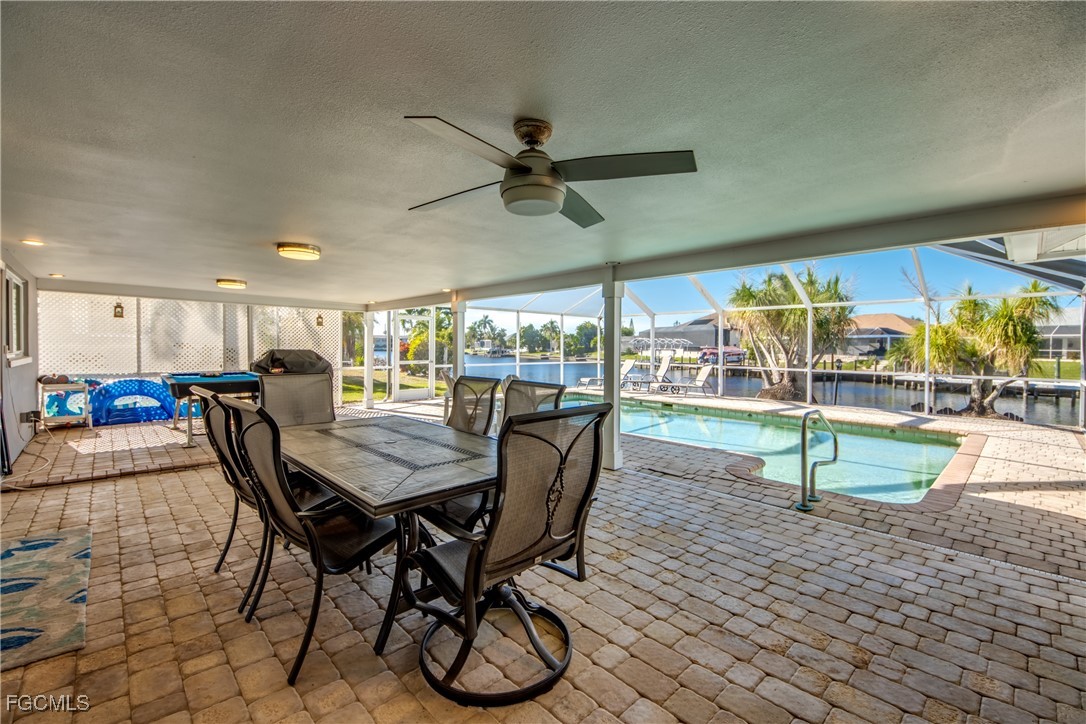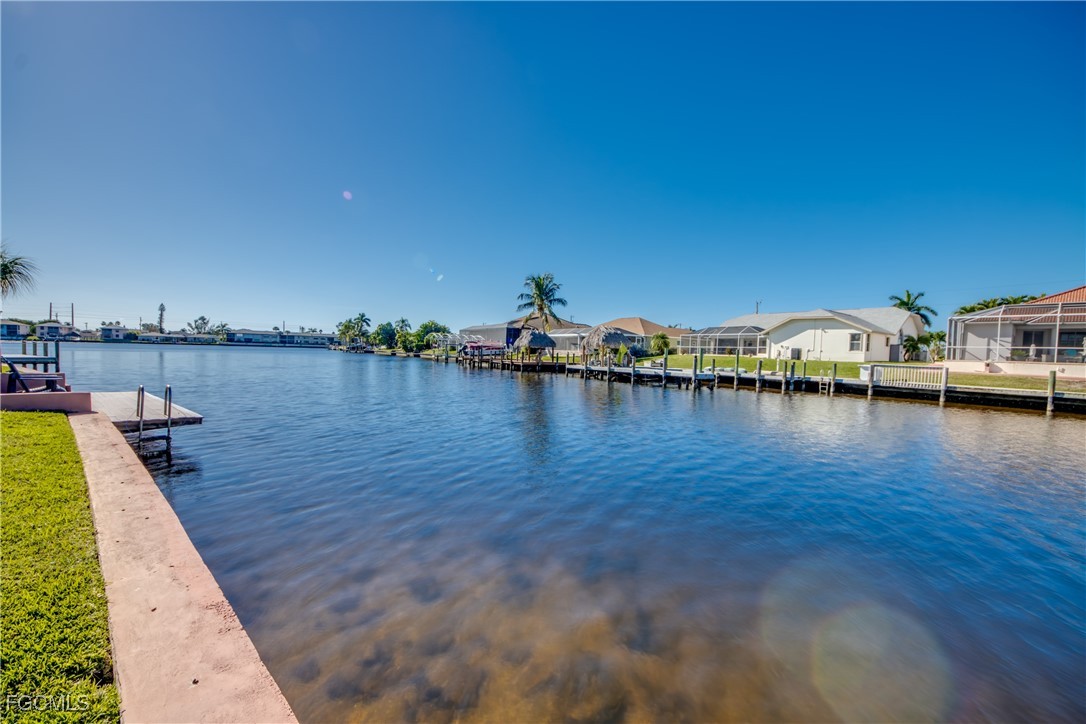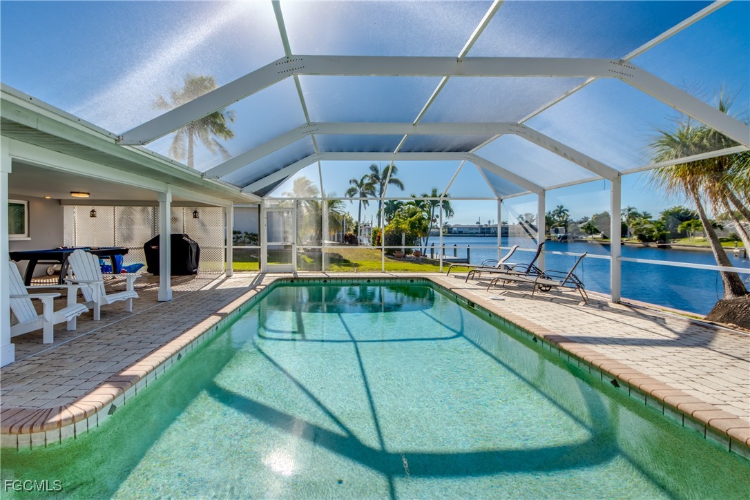 THIS IS WHAT PEOPLE MEAN WHEN THEY SAY “WE LIVE ON THE WATER.” Boats heading out for the day, wildlife gliding through the lake, a soft breeze moving across open water — and you, deciding whether today calls for a paddleboard, a fishing line, or simply a quiet afternoon by the pool. Perfectly positioned at the top of LAKE LOUISE, this beautifully updated GULF ACCESS POOL HOME offers wide, open water views and exceptional recreational flexibility. This is a true Gulf-access lake where kayaking, paddleboarding, jet skiing, fishing, and boating are part of everyday life. With an impressive 99 FEET ON THE OPENING BASIN, a LARGE TREX DOCK, and HIGHLY DESIRED SOUTHWESTERN EXPOSURE, the setting delivers abundant sunshine on the pool and unforgettable sunsets that never feel routine. Inside, your new home is LIGHT, BRIGHT, AND OPEN — drenched in Florida sunshine and thoughtfully updated for comfort and entertaining. The greatroom connects effortlessly to the outdoor living area through IMPACT GLASS POCKETING SLIDERS, creating a seamless relationship between indoor living and the waterfront beyond. With 1,877 square feet under air, this 3-bedroom, 2-bath layout offers generously sized bedrooms, ideal for family, friends, or seasonal visitors. The kitchen was tastefully updated and features WHITE CABINETRY with soft-close doors and drawers, crown molding, under-cabinet lighting, GRANITE COUNTERTOPS, and stainless steel appliances. Both bathrooms have updates with clean, timeless finishes. An INSIDE LAUNDRY ROOM includes washer, dryer, and additional storage. Other recent improvements include a DIMENSIONAL SHINGLE ROOF (2021), NEW FLOORING, BASEBOARDS AND DOORS (2022), NEW HVAC SYSTEM (2024), NEW AC DUCTWORK (2019), IMPACT GLASS POCKETING SLIDING DOORS (2021), and IMPACT GLASS WINDOWS IN ALL BEDROOMS (2021). Outdoors, the HEATED, SALTWATER CONCRETE POOL is enclosed with a MANSARD POOL CAGE, offering year-round enjoyment and full sun exposure. EVERYTHING on your list can be found right here! PLUS, this home HAS BEEN PART OF A SUCCESSFUL VACATION RENTAL PROGRAM, demonstrating strong appeal and flexibility for future use. All leases have ceased, allowing the new owner to fully enjoy the upcoming winter season with no rental obligations in place. The home MAY BE PURCHASED FURNISHED, making it ideal for immediate enjoyment, seasonal use, or a future return to rental income if desired. Furniture is negotiable. The seller maintains a transferable flood insurance policy with an annual premium of approximately $2,945, providing continuity and potential cost savings for the new owner. Located in a QUIET SW CAPE CORAL NEIGHBORHOOD just minutes from shopping, dining, beaches, and nightlife, this property offers the rare balance of privacy and convenience. Whether enjoyed full-time, seasonally, or as a home that quietly works for you when you’re away, this is waterfront living done right. THE DAY STARTS WITH QUIET, CALM WATER AND ENDS WITH BRILLIANT COLOR. Call Today!
