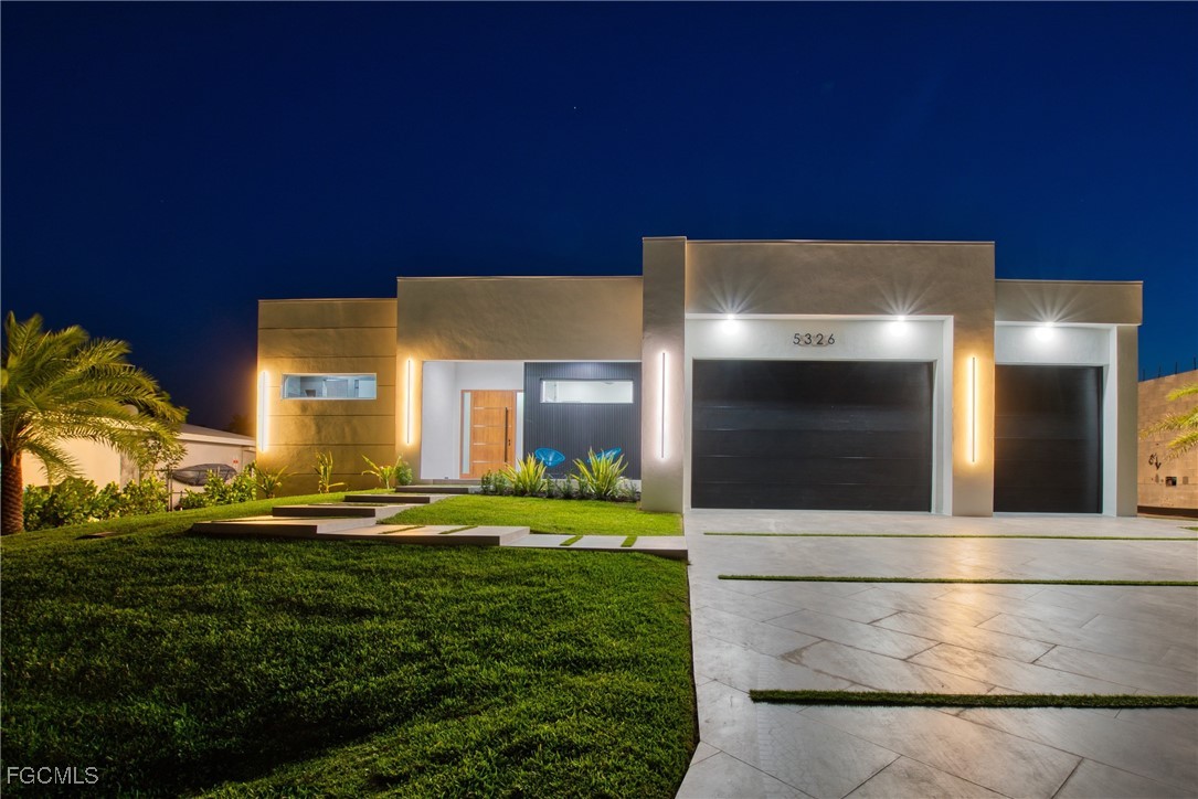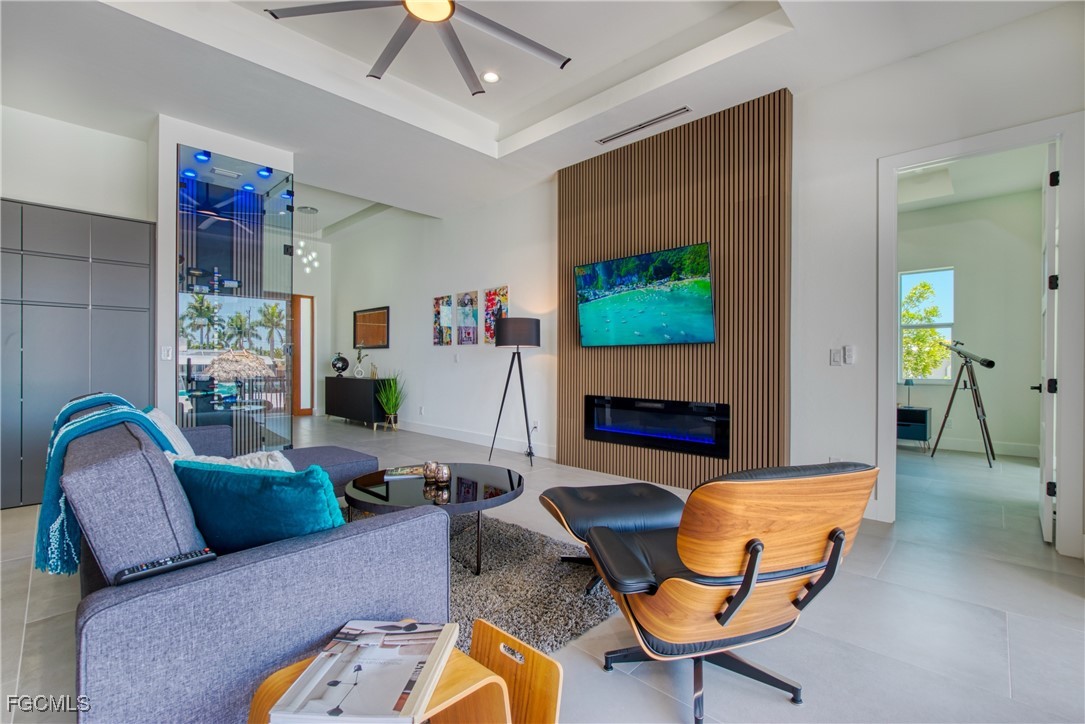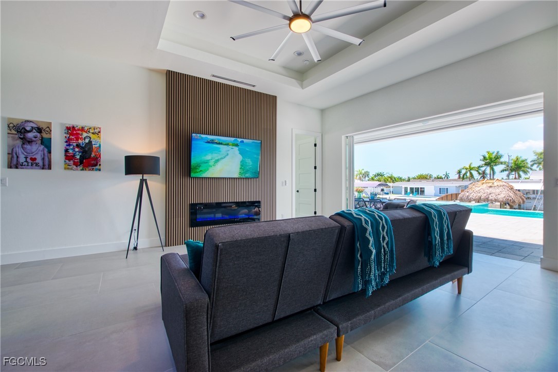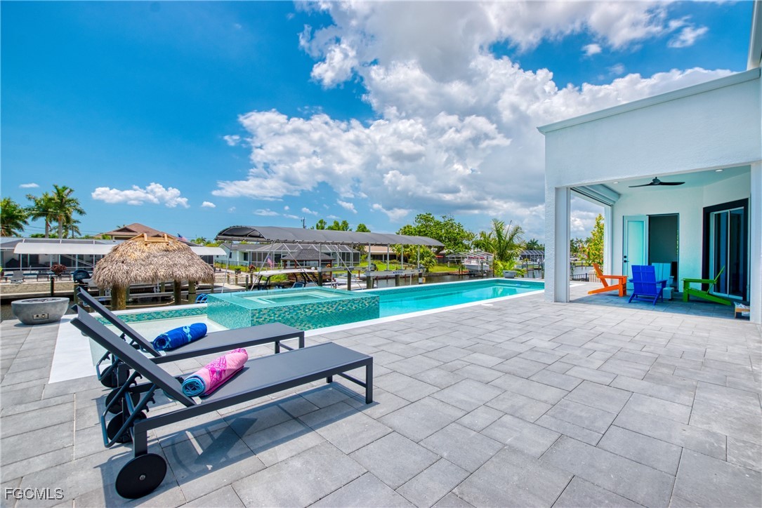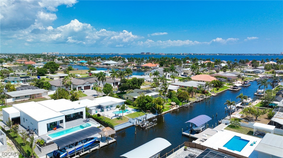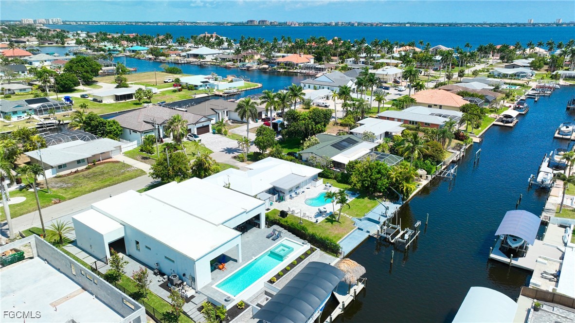 STUNNING CONTEMPORARY RESIDENCE ON BAYSHORE AVENUE! Boaters’ dream in the very desirable Yacht Club neighborhood of Cape Coral. No bridges (sailboat access!) and only a 5 minute boat ride to the Caloosahatchee River/20 minutes to the Gulf. It’s also only minutes away by car or bike from popular shops and restaurants. Gorgeous modern design, including a light and open floor plan, high end cabinetry, appliances, light fixtures, fans, and finishes throughout, tile flooring throughout, a wine cellar, and a gas cooktop and oven. The bright living room leads you to a large gas heated saltwater pool and spa with a Pentair automation system, 3 electric Storm Smart hurricane shades on the pool lanai, a beautiful outdoor kitchen, 3 gas fire pits, and an additional fire pit at the dock with seating around it. There’s also a new 20,000 pound boat lift, tiki hut, and 250 gallon propane tank! The builder thought of everything, and it shows - WELCOME HOME!