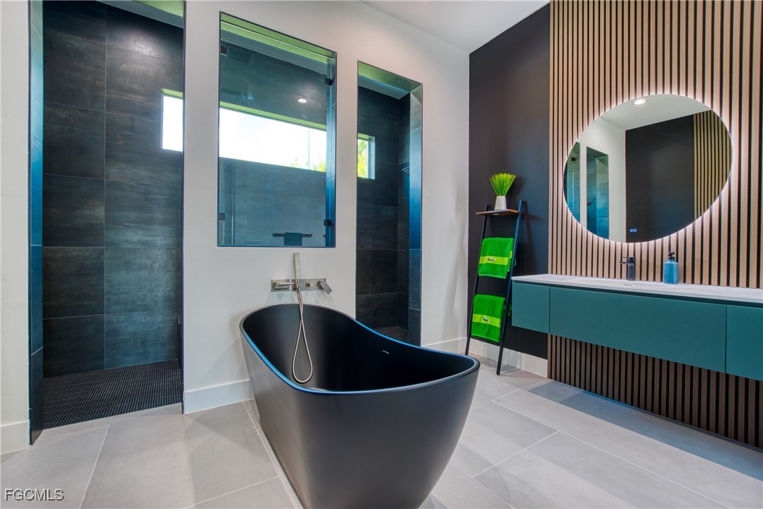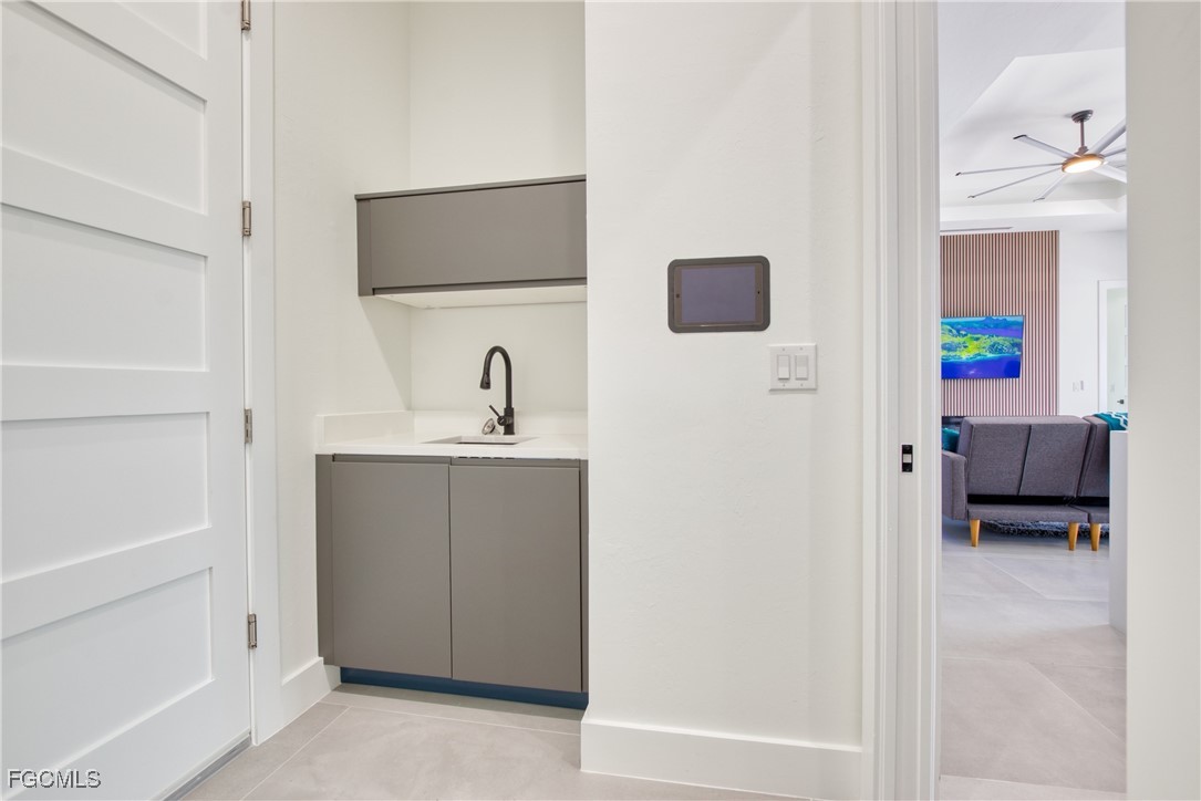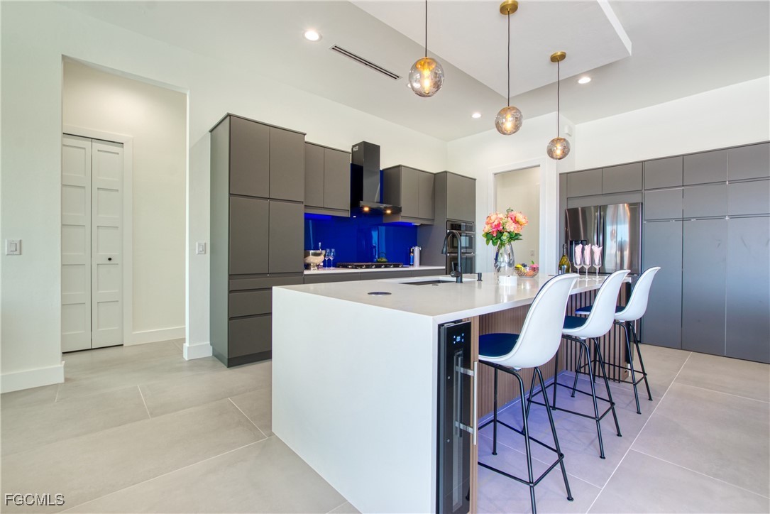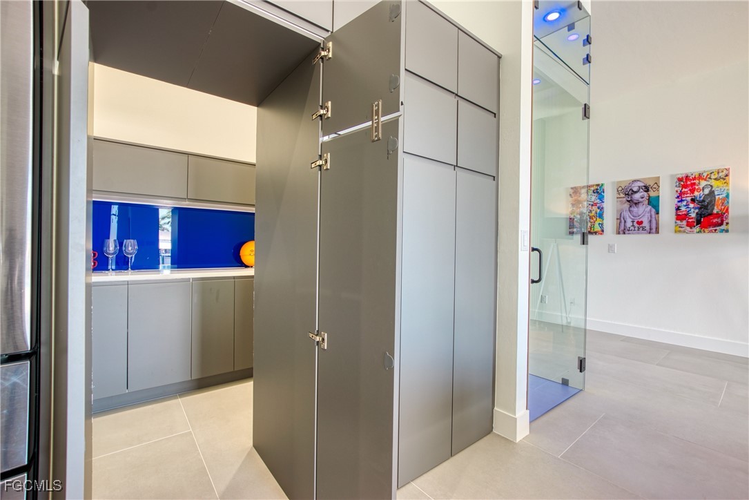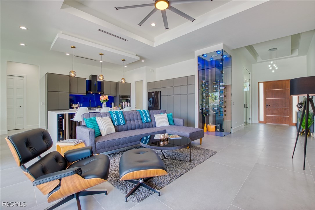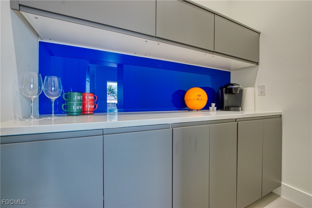 STUNNING CONTEMPORARY RESIDENCE ON BAYSHORE AVENUE! Boaters’ dream in the very desirable Yacht Club neighborhood of Cape Coral. No bridges (sailboat access!) and only a 5 minute boat ride to the Caloosahatchee River/20 minutes to the Gulf. It’s also only minutes away by car or bike from popular shops and restaurants. Gorgeous modern design, including a light and open floor plan, high end cabinetry, appliances, light fixtures, fans, and finishes throughout, tile flooring throughout, a wine cellar, and a gas cooktop and oven. The bright living room leads you to a large gas heated saltwater pool and spa with a Pentair automation system, 3 electric Storm Smart hurricane shades on the pool lanai, a beautiful outdoor kitchen, 3 gas fire pits, and an additional fire pit at the dock with seating around it. There’s also a new 20,000 pound boat lift, tiki hut, and 250 gallon propane tank! The builder thought of everything, and it shows - WELCOME HOME!