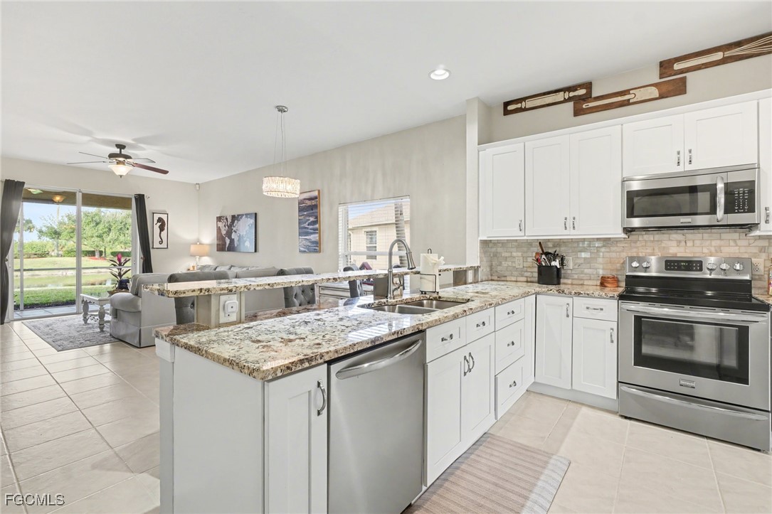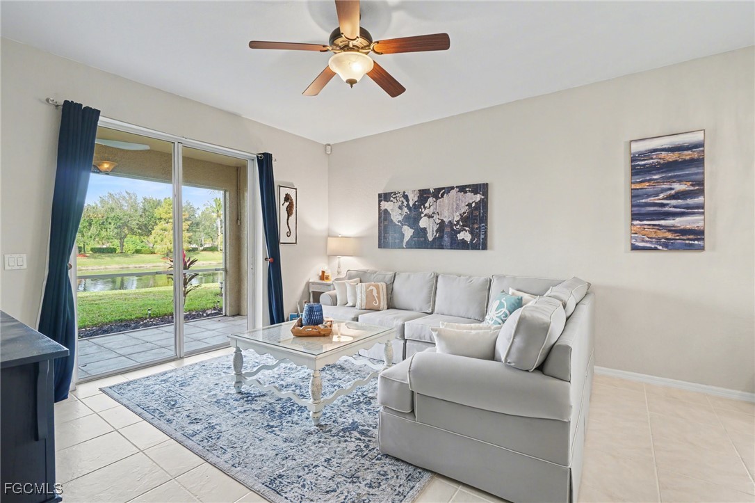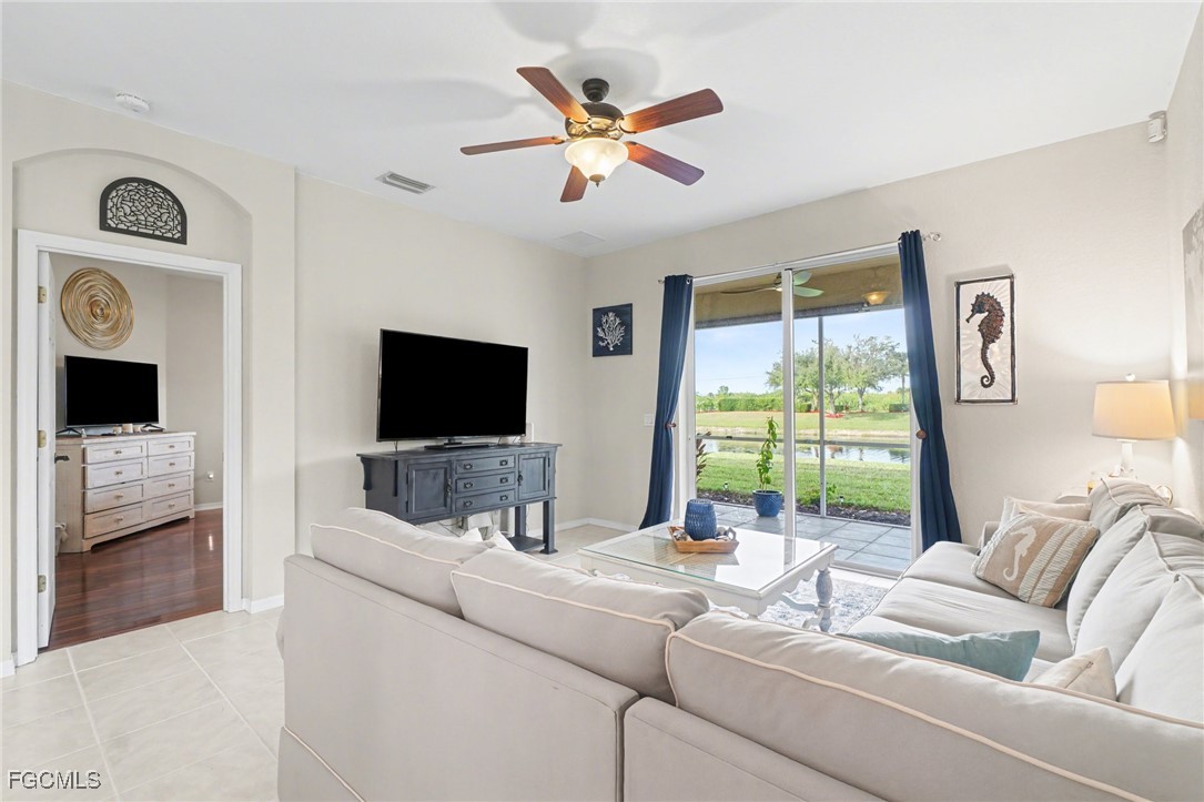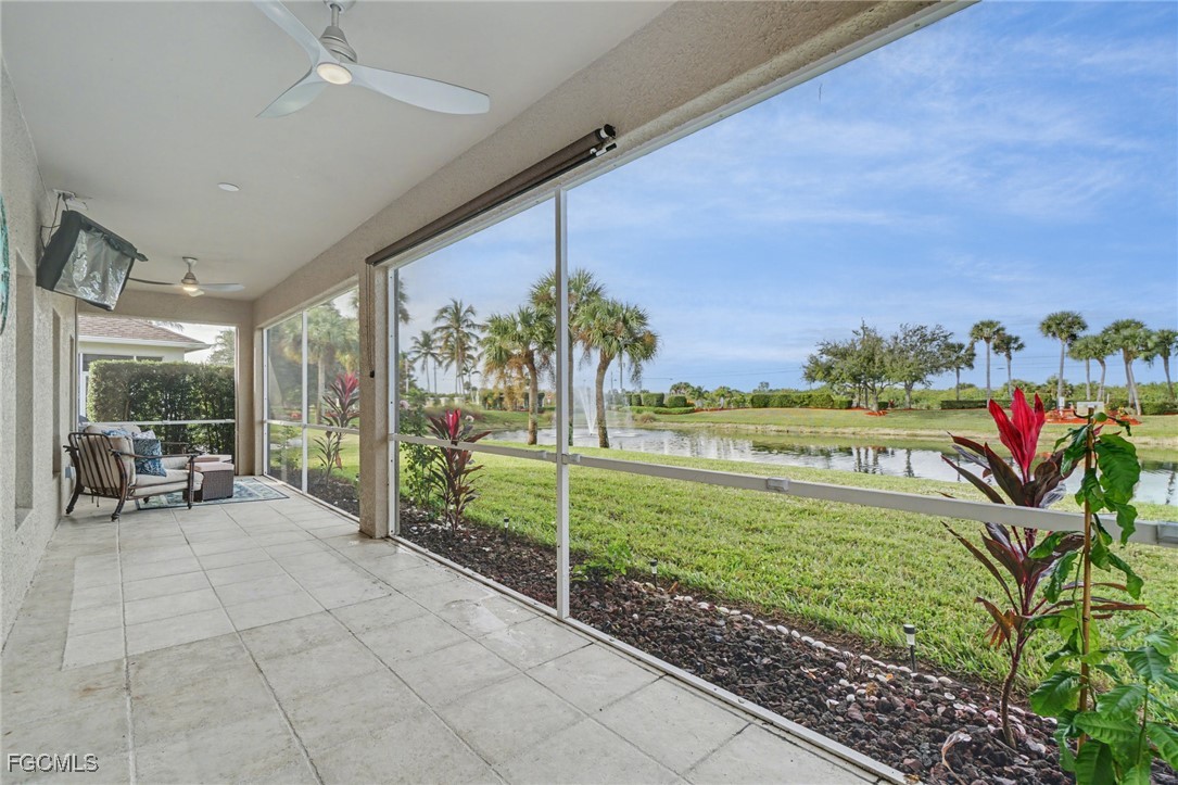 Located in the gated Calusa Palms community along the desirable McGregor corridor, this well-maintained 3-bedroom, 2-bath home offers peaceful lake views and easy Florida living. Tropical landscaping welcomes you into a bright, open living space with natural light and water views. The family room flows seamlessly to the screened-in lanai and adjacent outdoor patio, providing multiple spaces to relax or entertain while enjoying the lake and surrounding greenery. The backyard offers ample room to add a pool if desired. The home features a 2021 roof and 2021 A/C, along with a newer water heater, a full-house water filtration system, and automatic irrigation system. Furniture is negotiable. Residents of Calusa Palms enjoy access to a community amenity center with a pool, tennis courts, clubhouse, playground, and more. Conveniently located near shopping, dining, and Southwest Florida beaches, this home presents a great opportunity in a well-established gated community.