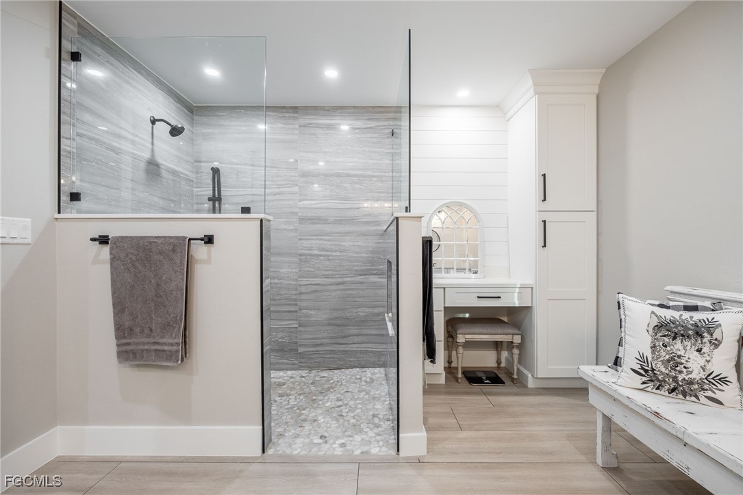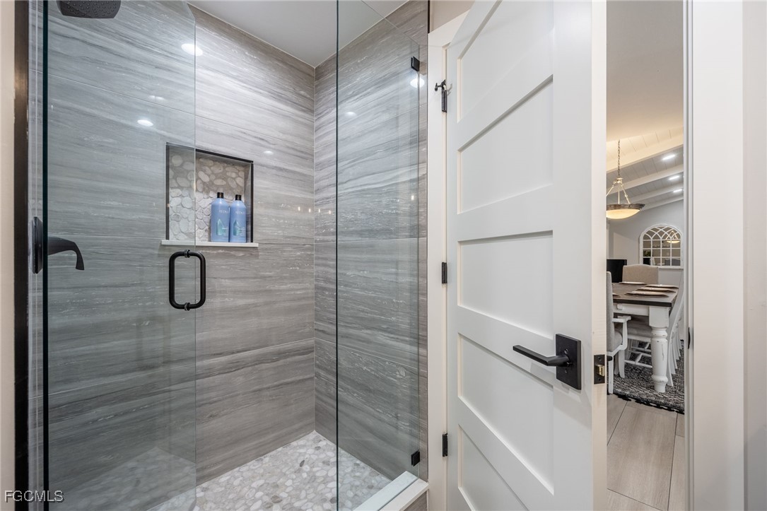 Beyond the electric gated entrance, you'll be greeted by an expansive property with mature landscaping, a covered boat ramp, large storage shed, a composite deck with a fish cleaning station, and a fire pit for evening gatherings under the stars. As you enter the home, you'll notice this fully remodeled home is complete with refined finishes and thoughtful design throughout. From custom cabinetry, upgraded trim, tile flooring, and a seamless floor plan that creates an ideal atmosphere for both entertaining and relaxation. The chef’s kitchen is truly the heart of the home, with custom kitchen cabinetry (with soft-close drawers), high-end quartz countertops, and stainless steel appliances. The split-bedroom layout provides privacy, with the master suite featuring sliding glass doors giving direct access to the lanai, a walk-in closet, and huge bathroom with a built-in vanity. With one guest room offering its own ensuite bathroom and walk-in closet, it's ideal as a guest suite, 2nd primary suite, or for multi-generational living. Multiple sliding glass doors lead to the large, wrap-around lanai for the ultimate indoor-outdoor living experience. The custom in-ground, salt-water pool & spa is unlike any other, creating an intimate space to relax and unwind.