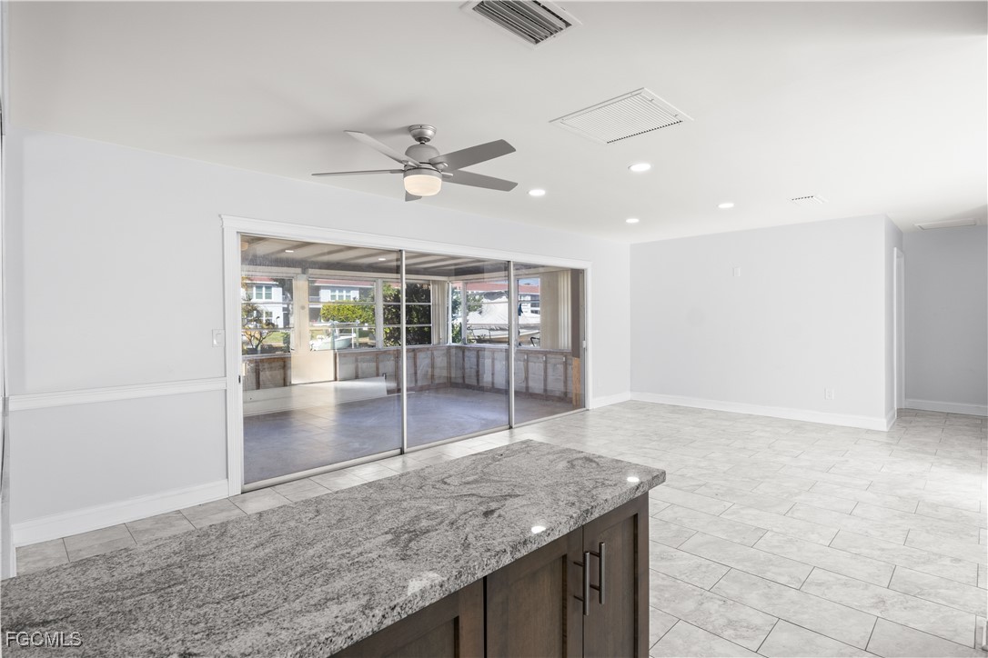 A large Florida room offers additional flexible living space, perfect for relaxing, entertaining, or enjoying canal views year-round.