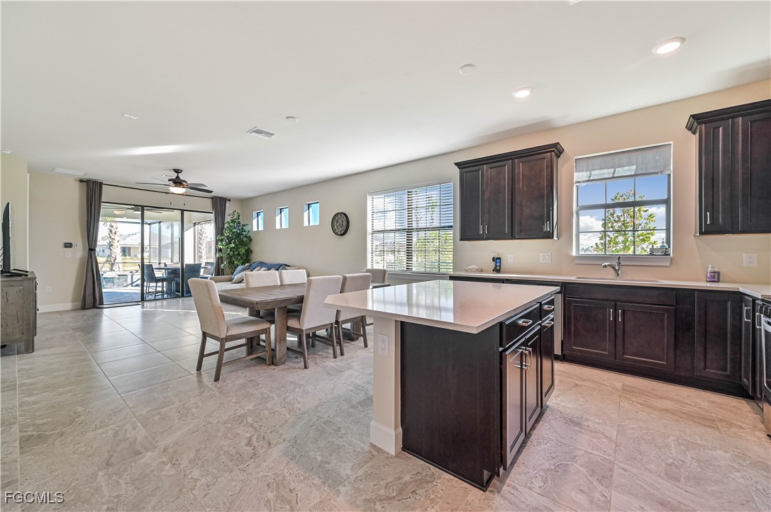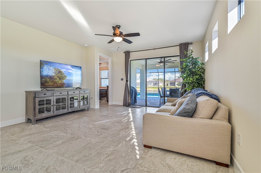 Welcome to 17347 Terracina Drive, 2-bedroom, 2-bath coach home with a flex room—perfect as a den or additional bedroom—located in the highly sought-after Esplanade Lake Club in Fort Myers. Positioned on a rare, extended lakefront lot, this home offers peaceful, scenic water views and effortless Florida living. The light-filled, open-concept layout features spacious living and dining areas, tile flooring throughout, and a well-appointed kitchen with stainless steel appliances—ideal for both everyday comfort and entertaining. Enjoy serene mornings and relaxing evenings from the oversized screened lanai, complete with a private heated pool and spa, overlooking long lake views that truly set this home apart. The two-car attached garage provides ample storage and convenience. Residents of Esplanade Lake Club enjoy an exceptional resort-style lifestyle with amenities including a private beach, resort and lap pools, Bahama Bar & Grill, boat club, kayaking and paddleboarding, pickleball, tennis, and bocce courts, state-of-the-art fitness center, movement studio, spa treatment room, fire pits, dog park, scenic walking trails, and a full calendar of social activities and events. This is a rare opportunity to enjoy private lakefront living paired with world-class amenities—Florida living at its finest.