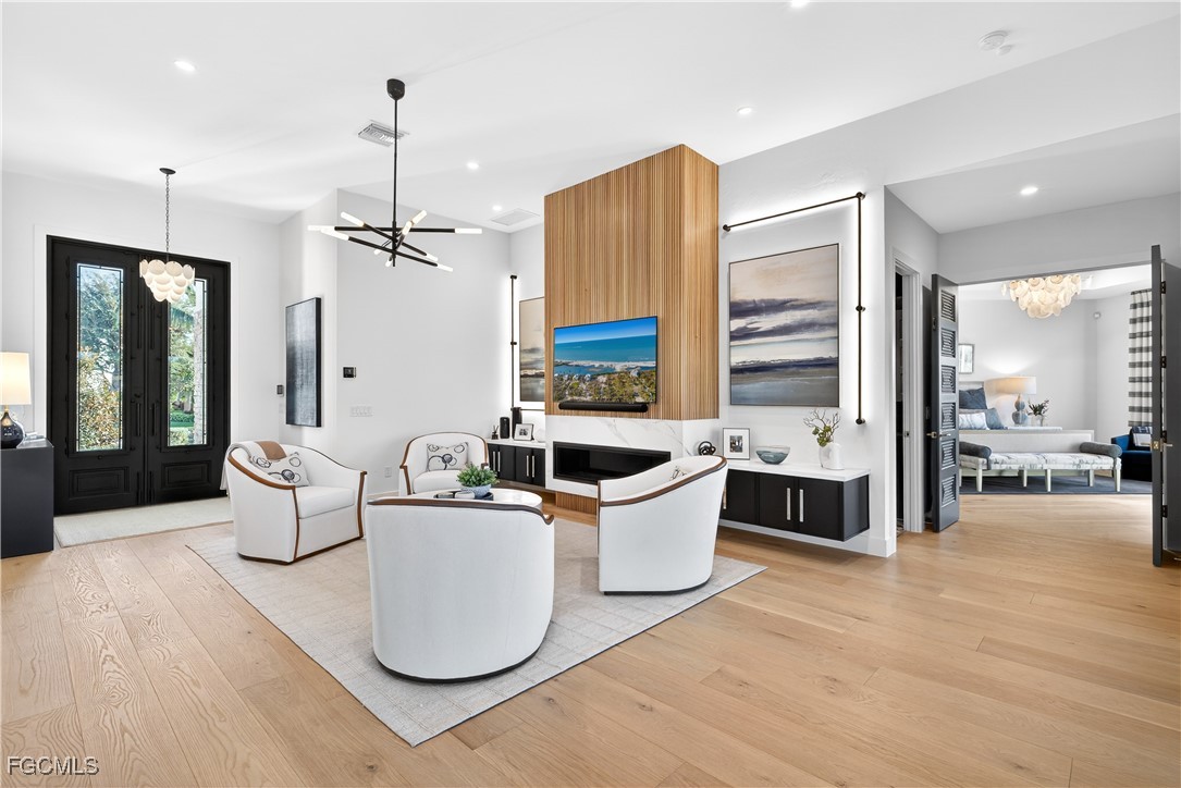Positioned on a SW Exposure point lot in Palmetto Point, this exceptional waterfront estate delivers one of Fort Myers’ most sought-after boating lifestyles, with 220 feet of direct water frontage, brand-new dock and lift, and quick direct access to open waters. Tucked away on a quiet cul-de-sac within a premier boating community, the setting is as private as it is picturesque. The residence spans over 3,400 square feet and has been completely transformed through a $2+ million renovation by a renowned luxury builder, paired with a full designer furnishing package by an industry-leading interior decorator. Offered fully furnished, every space has been thoughtfully curated with custom, made-to-measure furniture and high-end finishes throughout. Inside, an expansive open-concept layout is enhanced by soaring ceilings, rich hardwood flooring, and an abundance of natural light. The home flows effortlessly for both everyday living and entertaining, blending refined design with relaxed coastal elegance. All four bedrooms are generously sized and feature private en-suite baths, creating a true retreat for owners and guests alike. Outdoors, panoramic water views surround the property, setting the stage for the ultimate Florida lifestyle. The outdoor living area includes a fully equipped outdoor kitchen, custom grill, and multiple seating and entertaining spaces, ideal for hosting while watching boats pass through the intersecting canals. This is a rare opportunity to own a fully reimagined, designer-finished waterfront residence that seamlessly blends luxury, privacy, and world-class boating. A true turn-key offering in one of Fort Myers’ most desirable waterfront enclaves.