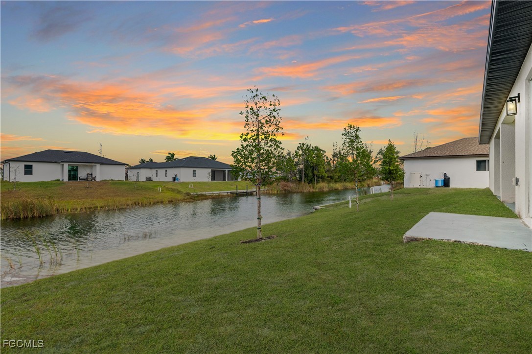 Nueva y hermosa casa de 4 habitaciones y 3 baños FRENTE AL AGUA, construida en bloques de hormigón, en la codiciada zona noroeste de Cape Coral. El vendedor está dispuesto a contribuir a los gastos de cierre del comprador. Vea el recorrido virtual. ¡NO SE ENCUENTRA EN ZONA INUNDABLE! Este popular modelo Verona incluye ventanas y puertas resistentes a huracanes (no se necesitan contraventanas), una amplia y luminosa sala de estar de concepto abierto con pisos de baldosas, techos altos y puertas corredizas de 3 paneles que permiten la entrada de abundante luz natural y ofrecen vistas al agua. La luminosa cocina de chef cuenta con una enorme isla, gabinetes modernos con cierre suave, encimeras de cuarzo y un acogedor rincón para desayunar. La espaciosa habitación principal tiene un luminoso baño privado con encimeras de cuarzo, lavabos dobles, una ducha de azulejos y puerta de vidrio, y vestidor walk-in. Una segunda habitación principal opcional cuenta con un baño moderno y luminoso y acceso directo a la espaciosa terraza. Dos dormitorios adicionales y un tercer baño ofrecen mucho espacio para niños, invitados, una sala de estar, un espacio flexible o una oficina en casa. Ubicada junto a un canal navegable, disfrute de un día de pesca o simplemente explore los canales en paddleboard o kayak. En un vecindario IDEAL PARA FAMILIAS, con fácil acceso a áreas para ir de compras, comer, divertirse y a poca distancia en auto de las famosas playas de arena blanca de Florida. ¡Programe su visita hoy mismo! ~~~~~~~ Brand new, beautiful WATERFRONT 4 bedroom/3 bath concrete block home in desirable NW Cape Coral. NO FLOOD ZONE! This popular Verona model features HURRICANE-RATED windows and doors (no shutters needed), a large and bright open-concept living space with tile floors throughout, soaring cathedral ceiling and 3-panel sliding doors for natural light and VIEWS TO THE WATER. The bright chef's kitchen features a huge island, modern cabinetry, Quartz countertops, stainless steel appliances, and relaxing breakfast nook. The large owner's bedroom has a bright ensuite bath with Quartz counter tops, dual sinks, a tiled step-in shower with glass door enclosure, and walk-in closet. An optional SECOND OWNER'S SUITE has a bright, modern bathroom and direct access to the spacious lanai. Two more bedrooms and a third bathroom provide lots of room for kids, guests, a den, a flex space or a home office. Situated on a navigable canal, enjoy a day of fishing or simply exploring the waterways via paddleboard or kayak. In a family-friendly neighborhood with convenient access to areas for shopping, dining, entertainment, and Florida's famous white-sand beaches. Schedule your showing today!